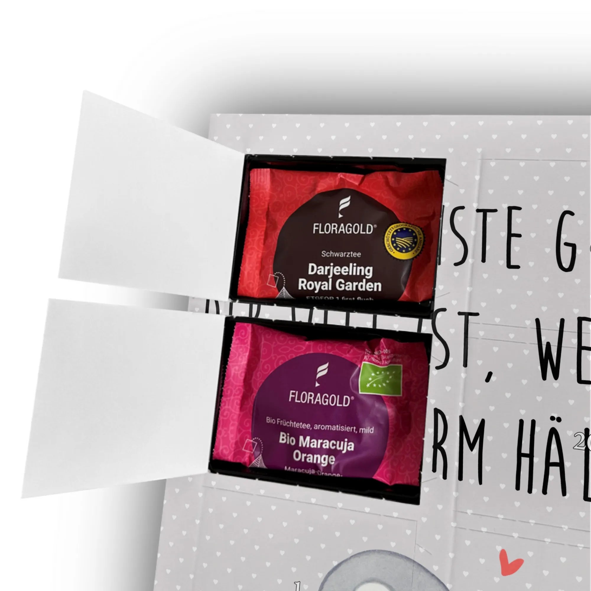 Der personalisierte Tee Foto Adventskalender "Pinguine Kuscheln" von Mr. & Mrs. Panda ist das perfekte Geschenk für alle Liebenden! Mit einem herzerwärmenden Motiv von zwei niedlichen Pinguinen, die sich innig umarmen, bringt dieser Adventskalender nicht nur Vorfreude auf die Weihnachtszeit, sondern symbolisiert auch eine tiefe Zuneigung und Verbundenheit.