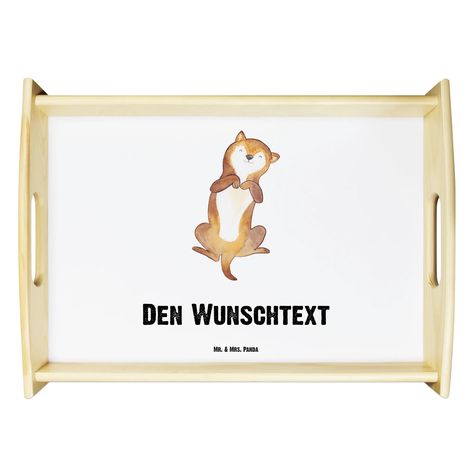 Discover the charm of our personalized serving tray by Mr. & Mrs. Panda! Crafted from beautiful, glazed real wood, this tray measures 480 mm x 365 mm x 65 mm, making it ideal for serving meals or snacks. It's adorned with lovely illustrations and quotes that you can personalize with your favorite names or messages. The clever design includes side grips for easy handling and anti-slip pads to prevent sliding. The resilient and scratch-proof surface maintains its vibrant look, and you can clean it easily with a damp cloth and mild soap—just avoid soaking! Take note that custom creations might take a bit more time to be ready. Treat yourself or your loved ones to a delightful dining experience with this exquisite tray!