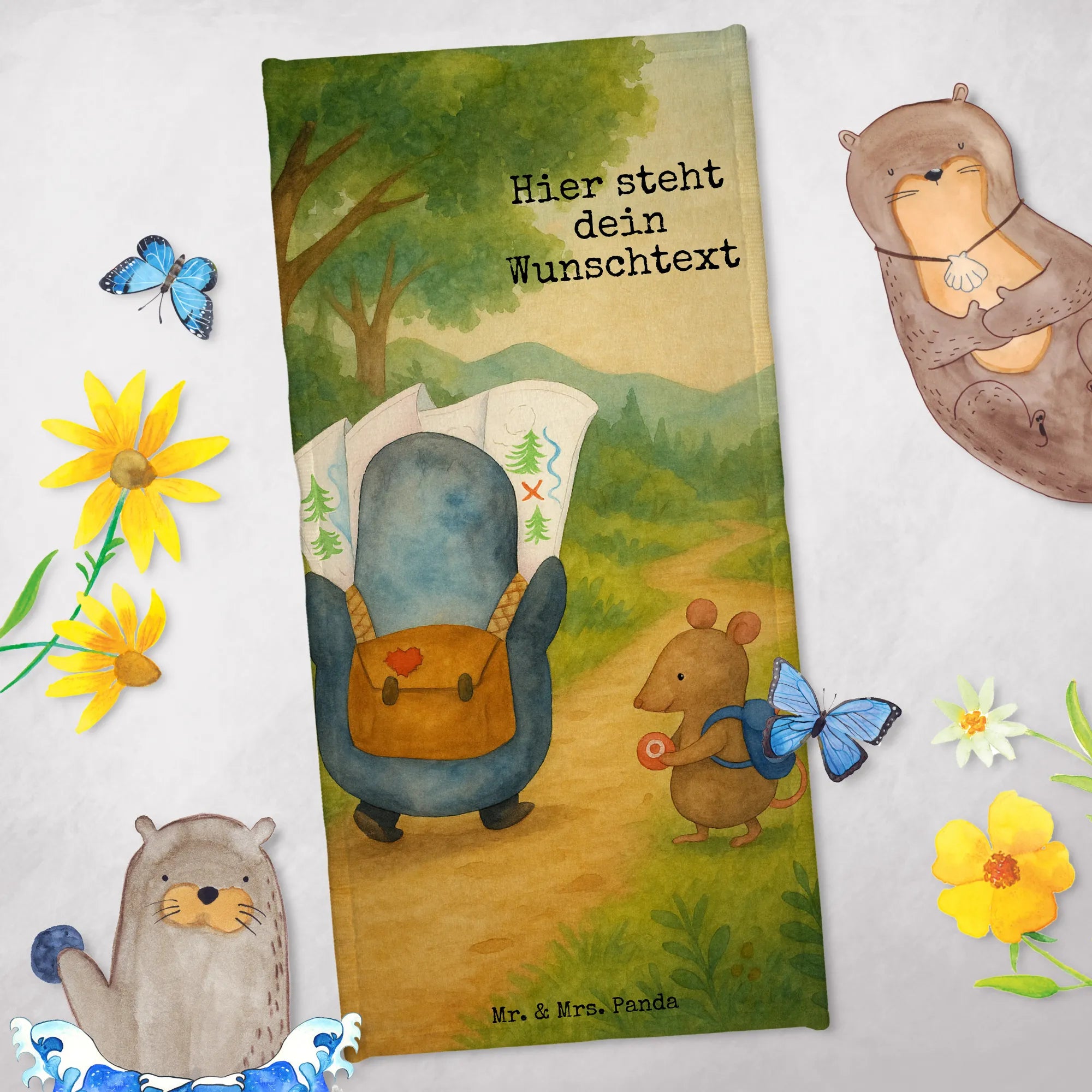 Personalized Bath Towel Penguin & Mouse Hiker Design