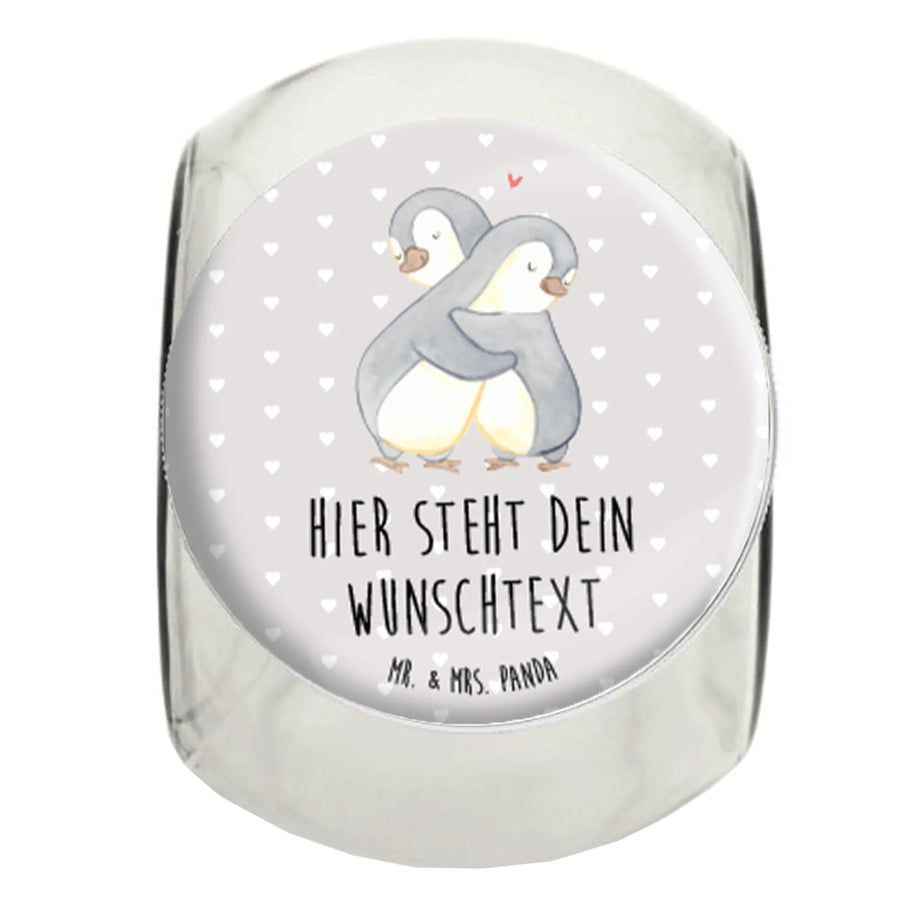 Personalized Candy Jar penguins Cuddle - XL 2000ml - Pastel Gray