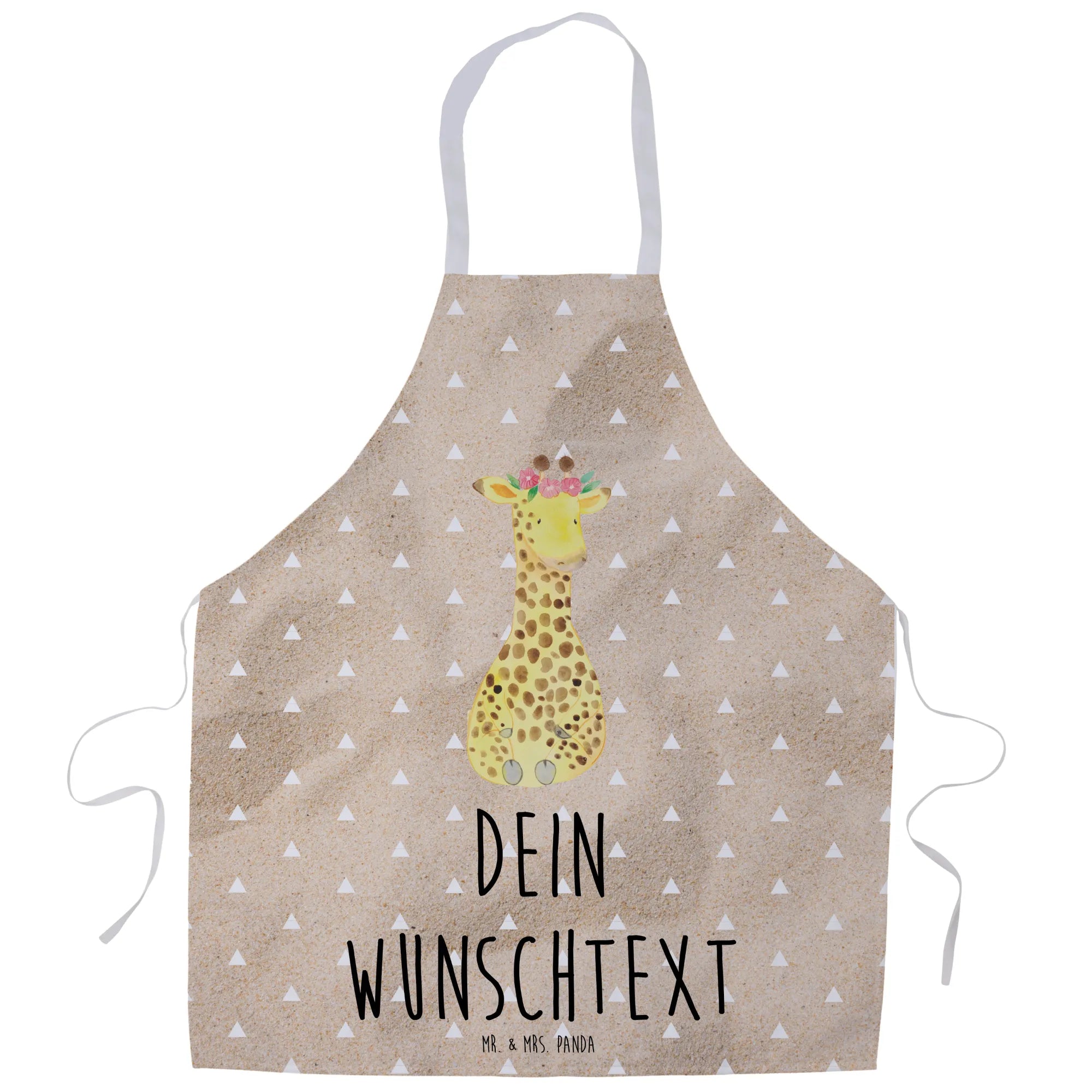 Personalized Cooking Apron giraffe flower wreath - Sandig