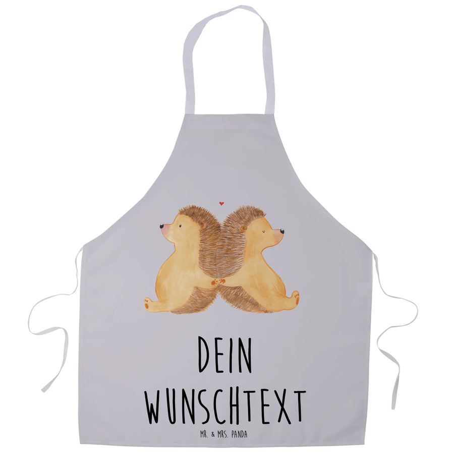 Personalized Cooking Apron Hedgehogs holding hands - Grey Pastel