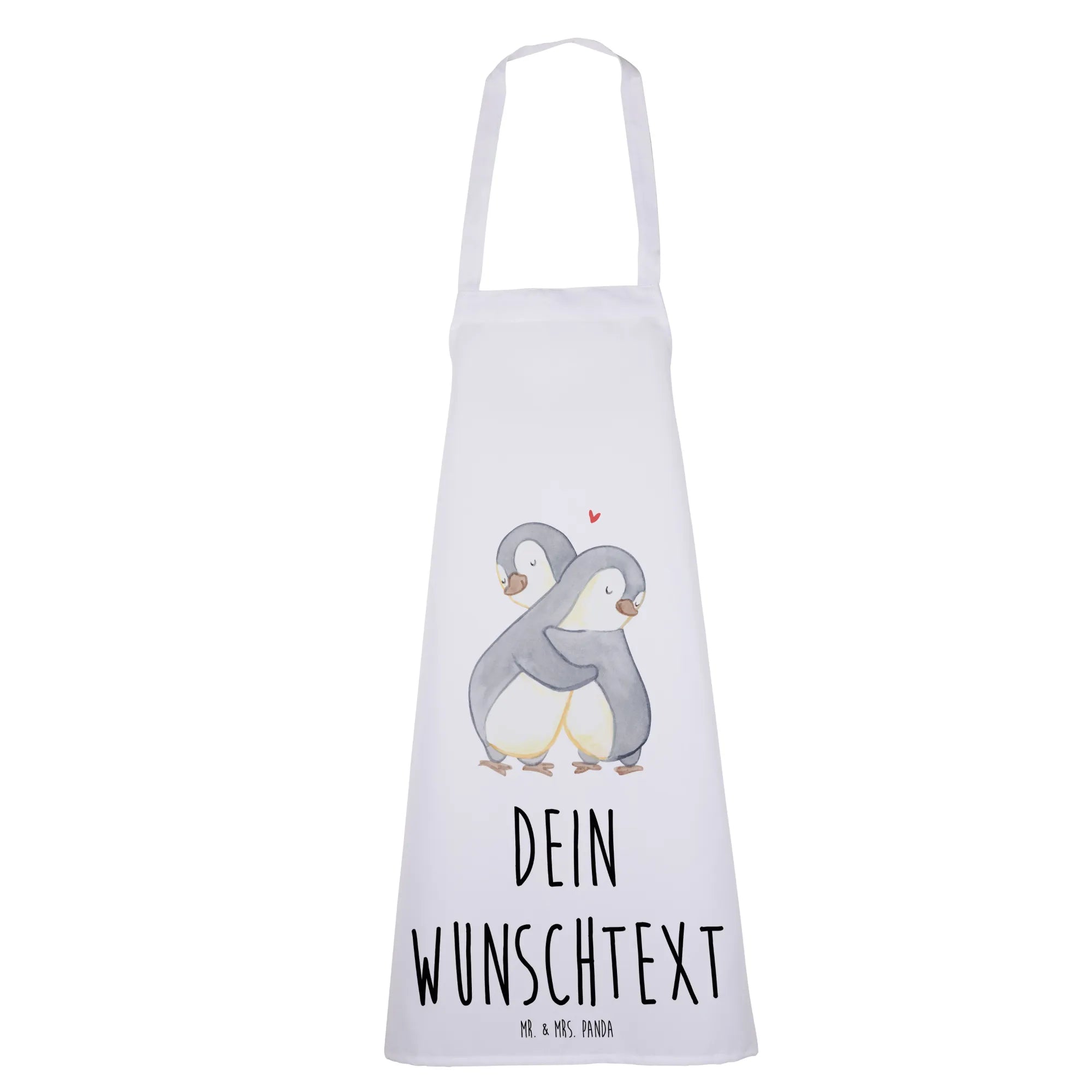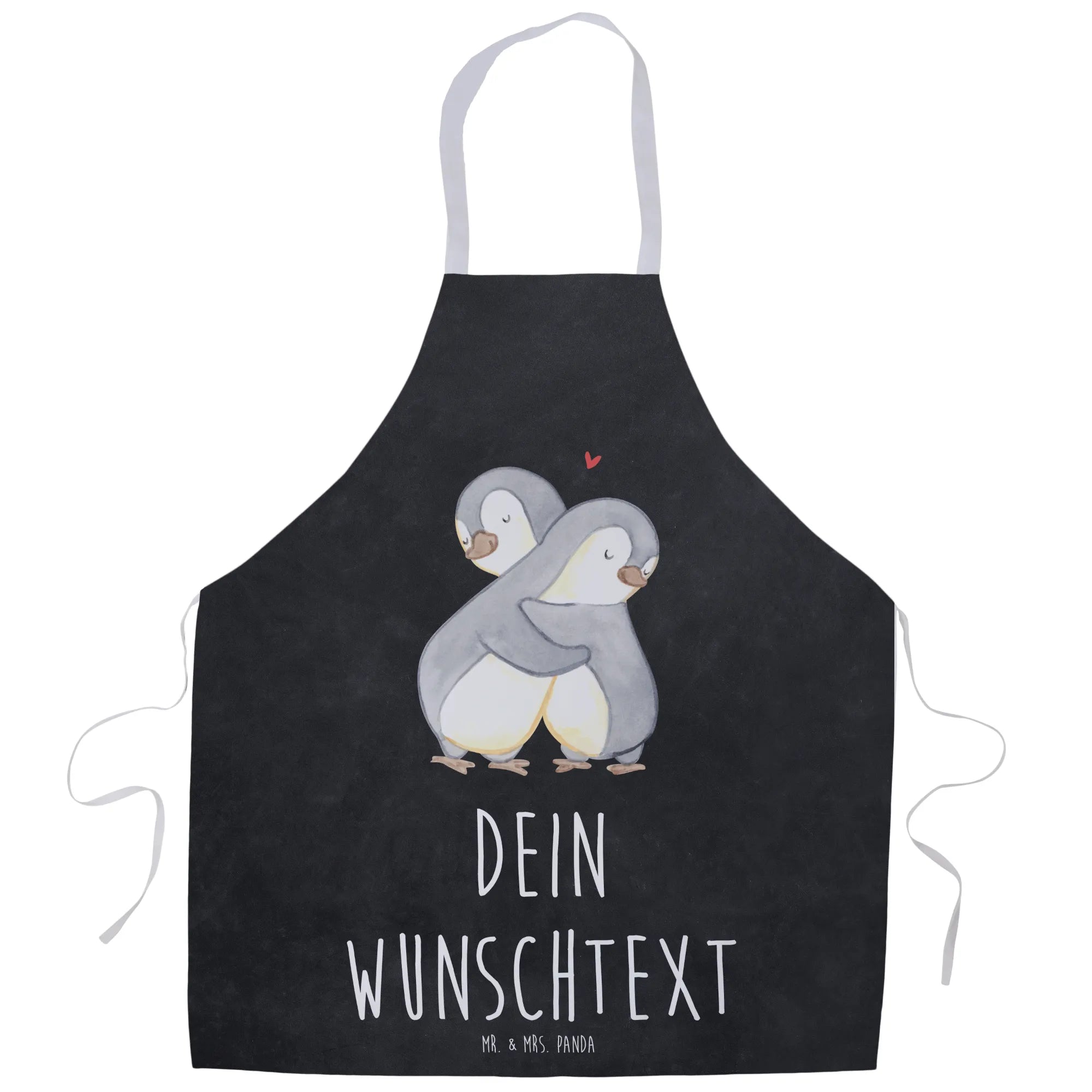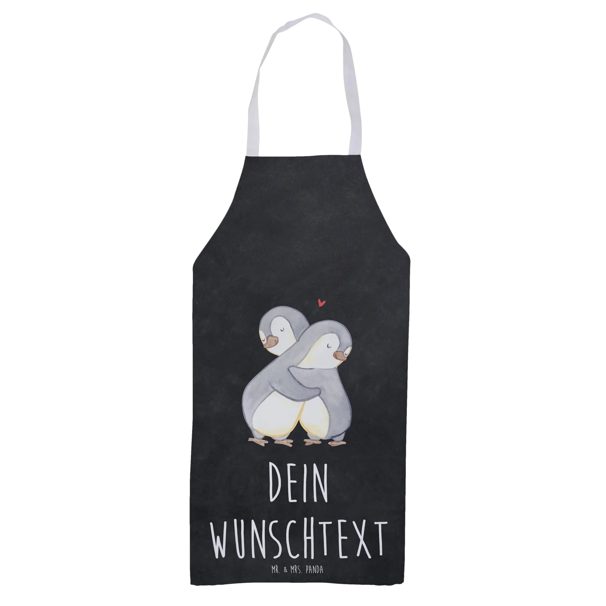 Personalized Cooking Apron penguins Cuddle - Chalkboard