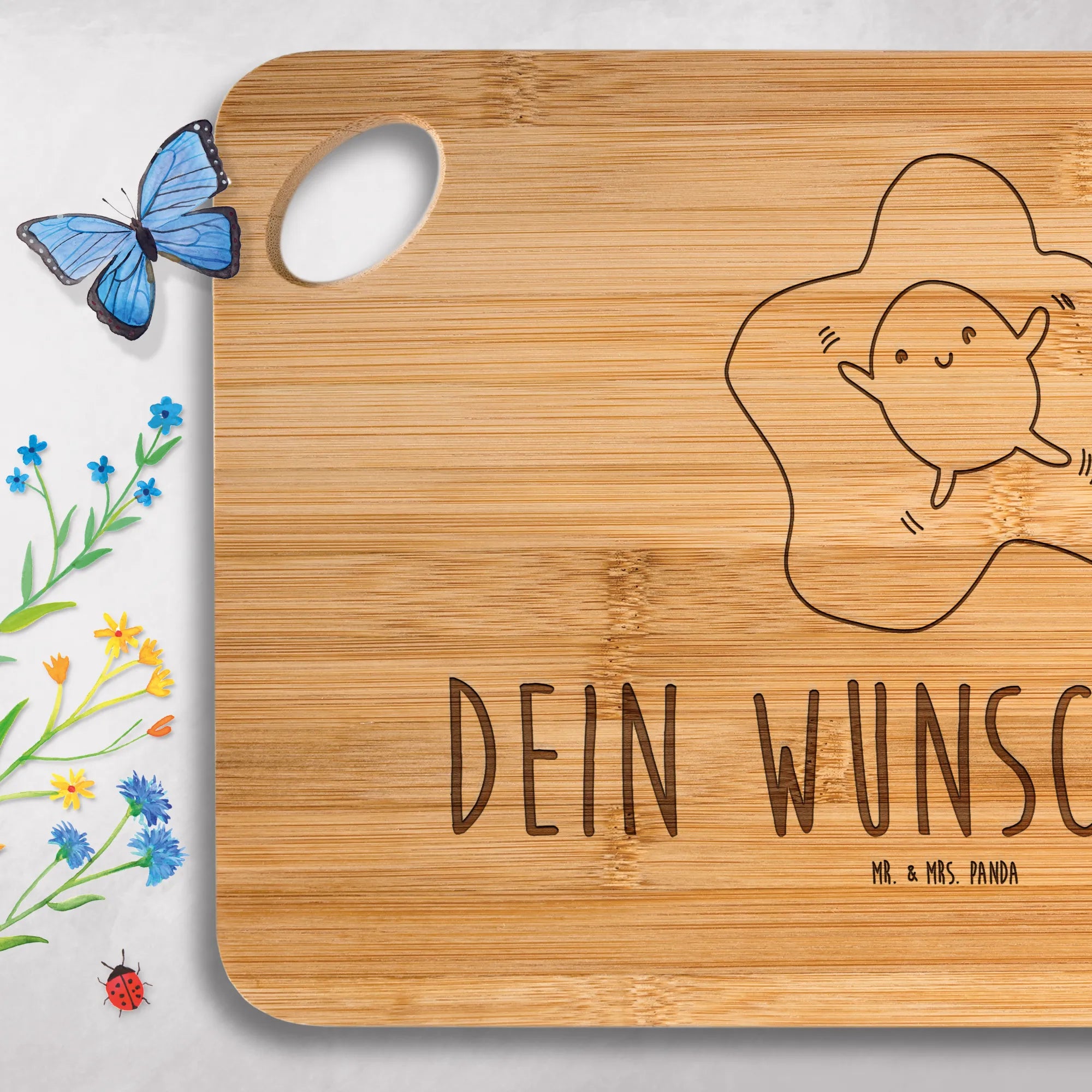 🐼 A charming bamboo cutting board that can be personalized for your kitchen.
