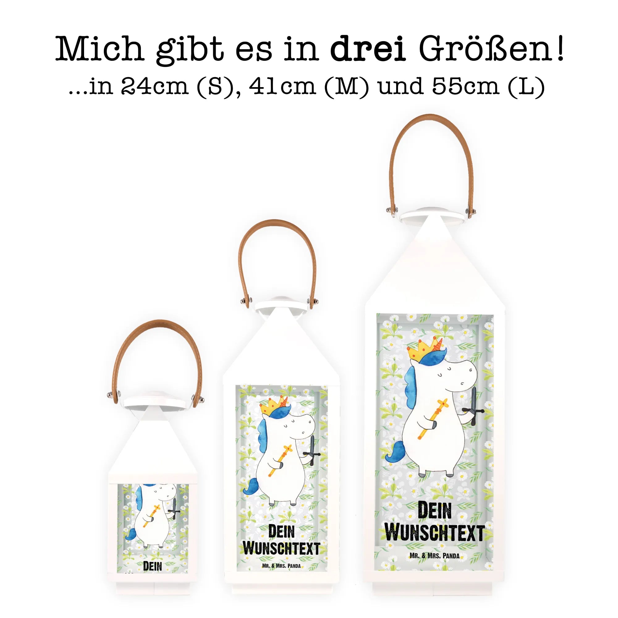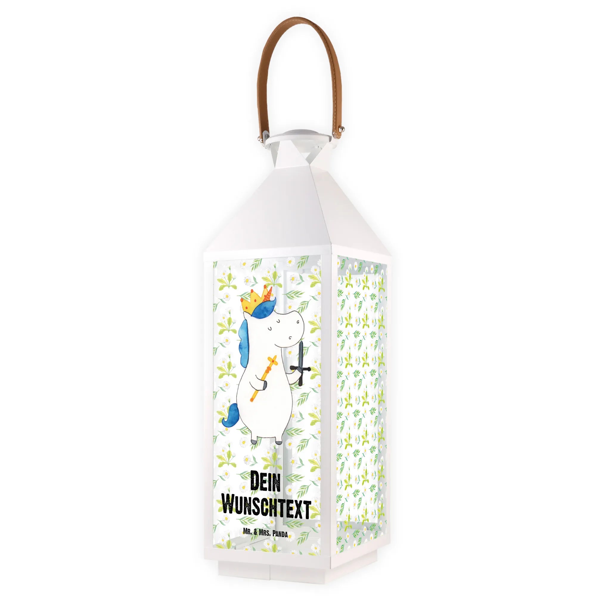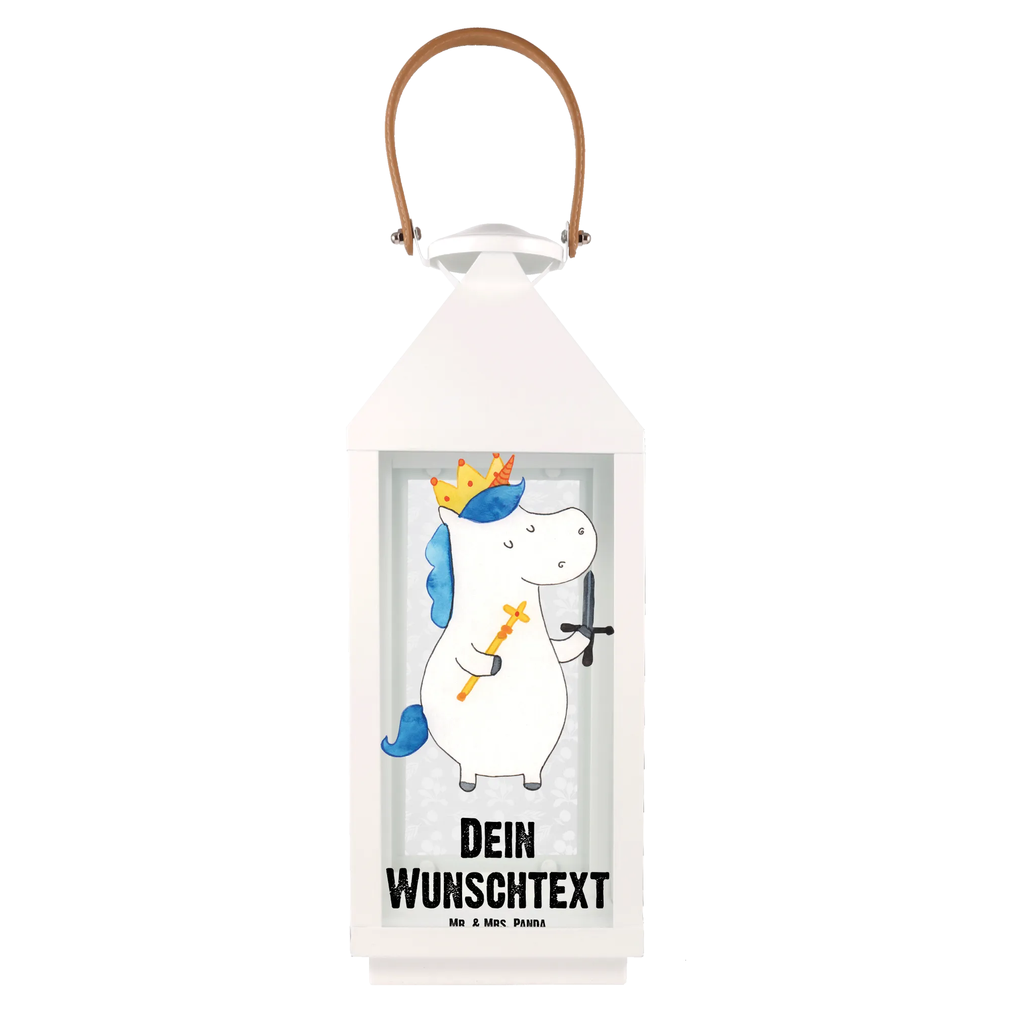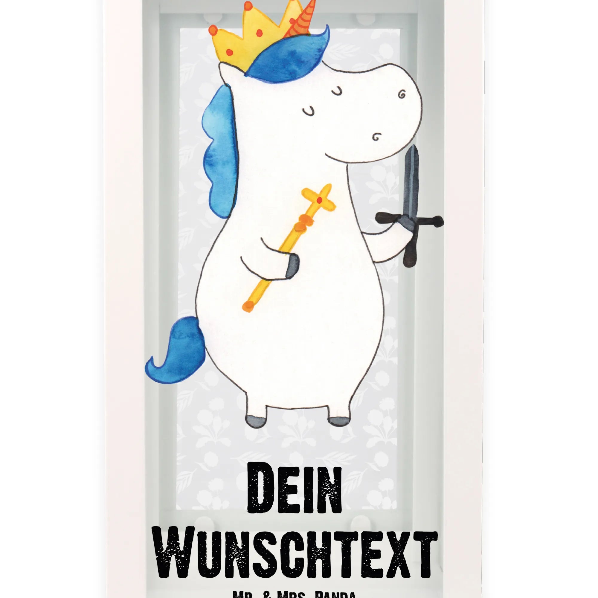 Die personalisierte Deko Laterne "Einhorn König mit Schwert" aus der bezaubernden Einhorn Kollektion von Mr. & Mrs. Panda ist das perfekte Geschenk für alle kleinen und großen Einhornfans! Diese Laterne bringt einen Hauch Magie in jeden Garten, auf jede Terrasse oder in jedes Kinderzimmer. Mit ihrem süßen Motiv, einem Einhorn mit einer Krone und einem Schwert, und dem liebevoll handgezeichneten Design wird diese Laterne zum absoluten Hingucker.