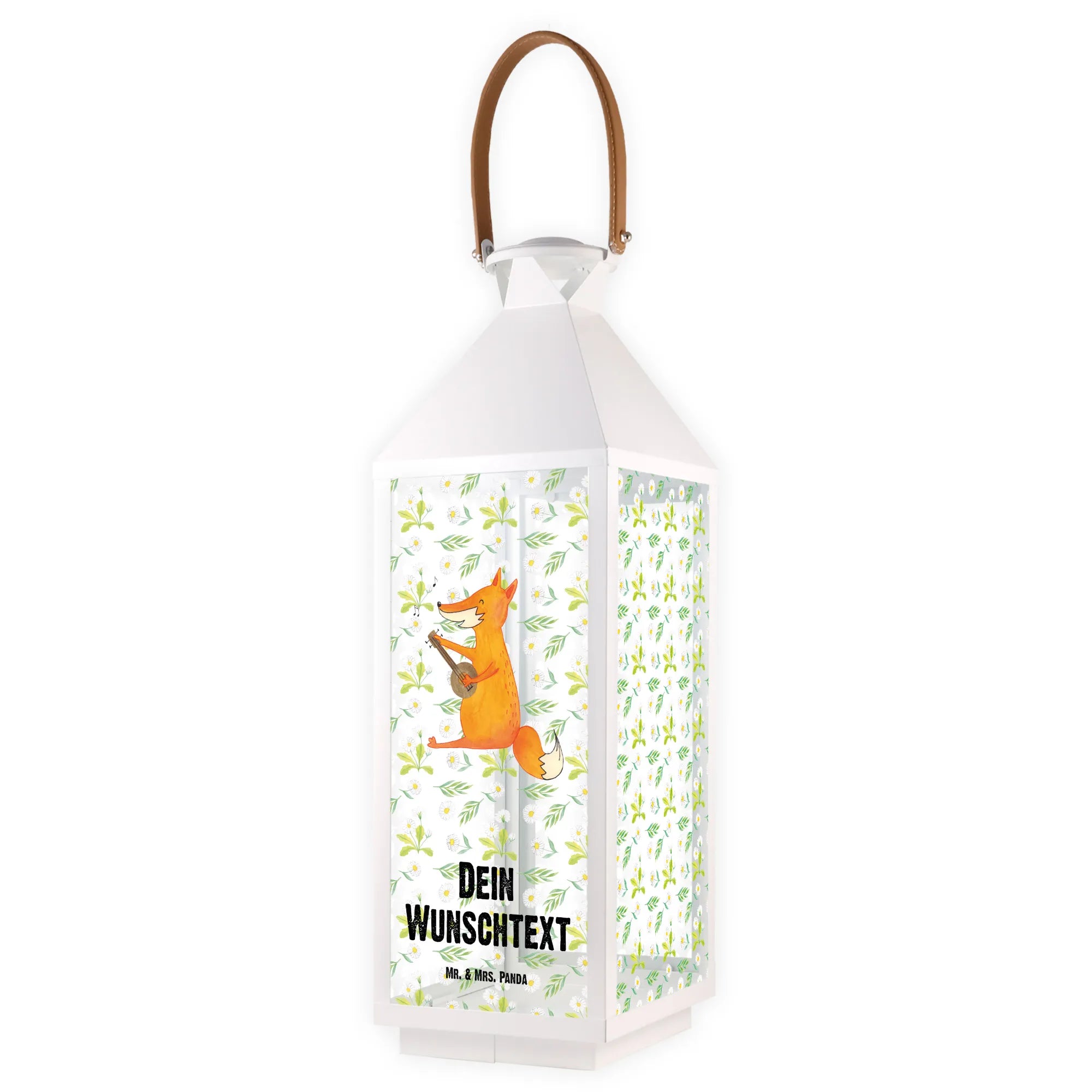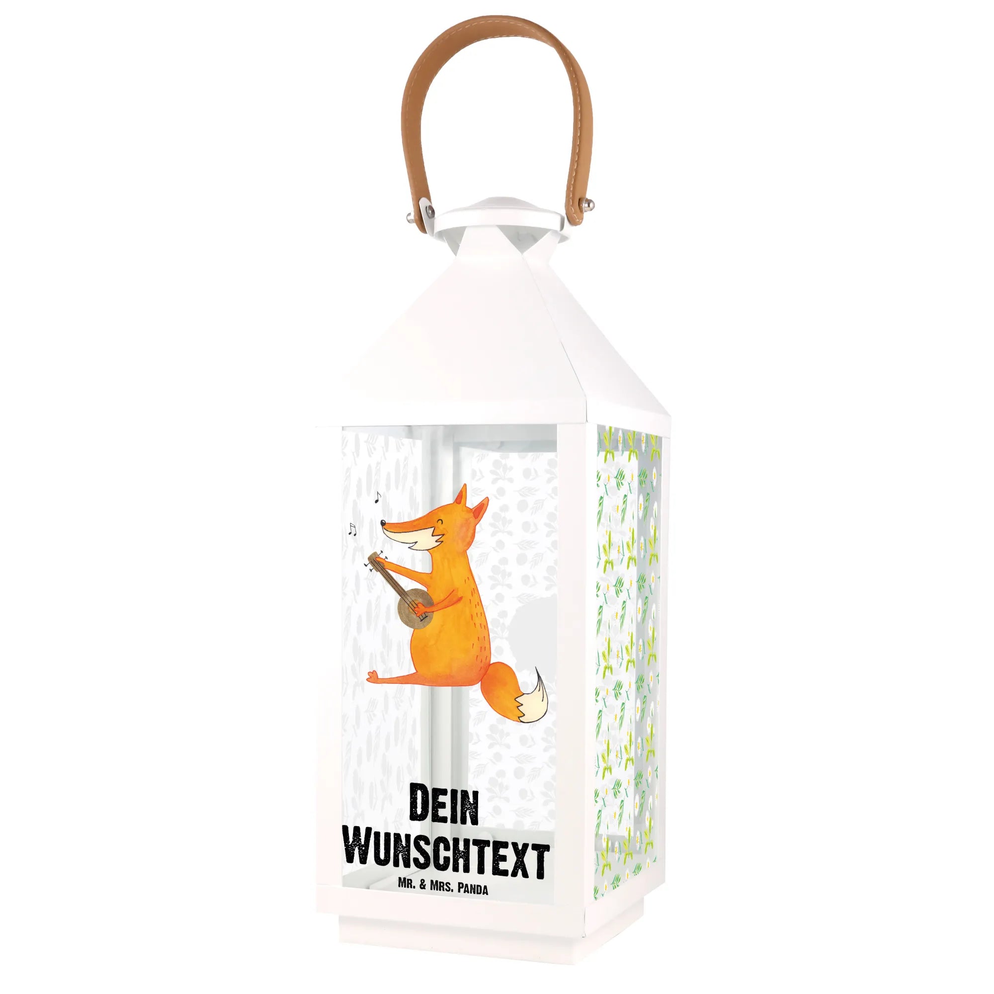 Die personalisierte Deko Laterne mit dem zauberhaften Fuchs-Gitarre-Motiv von Mr. & Mrs. Panda ist das perfekte Geschenk für Musikliebhaber und Tierfreunde.
