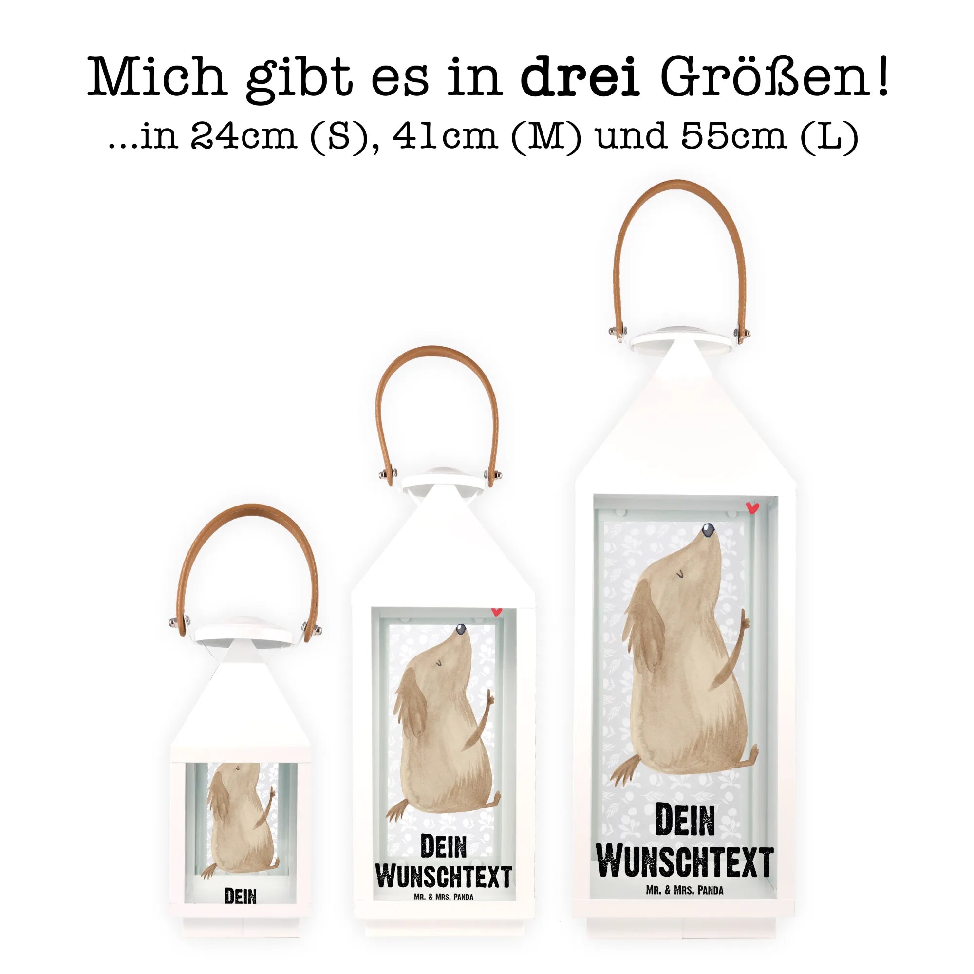 Entdecke die zauberhafte Personalisierte Deko Laterne mit dem süßen Motiv "Hund Liebe" aus der Hunde Kollektion von Mr. & Mrs. Panda. Diese Laterne ist nicht nur eine wunderschöne Gartendekoration, sondern auch ein herzlicher Ausdruck deiner Liebe zu deinem vierbeinigen Freund.