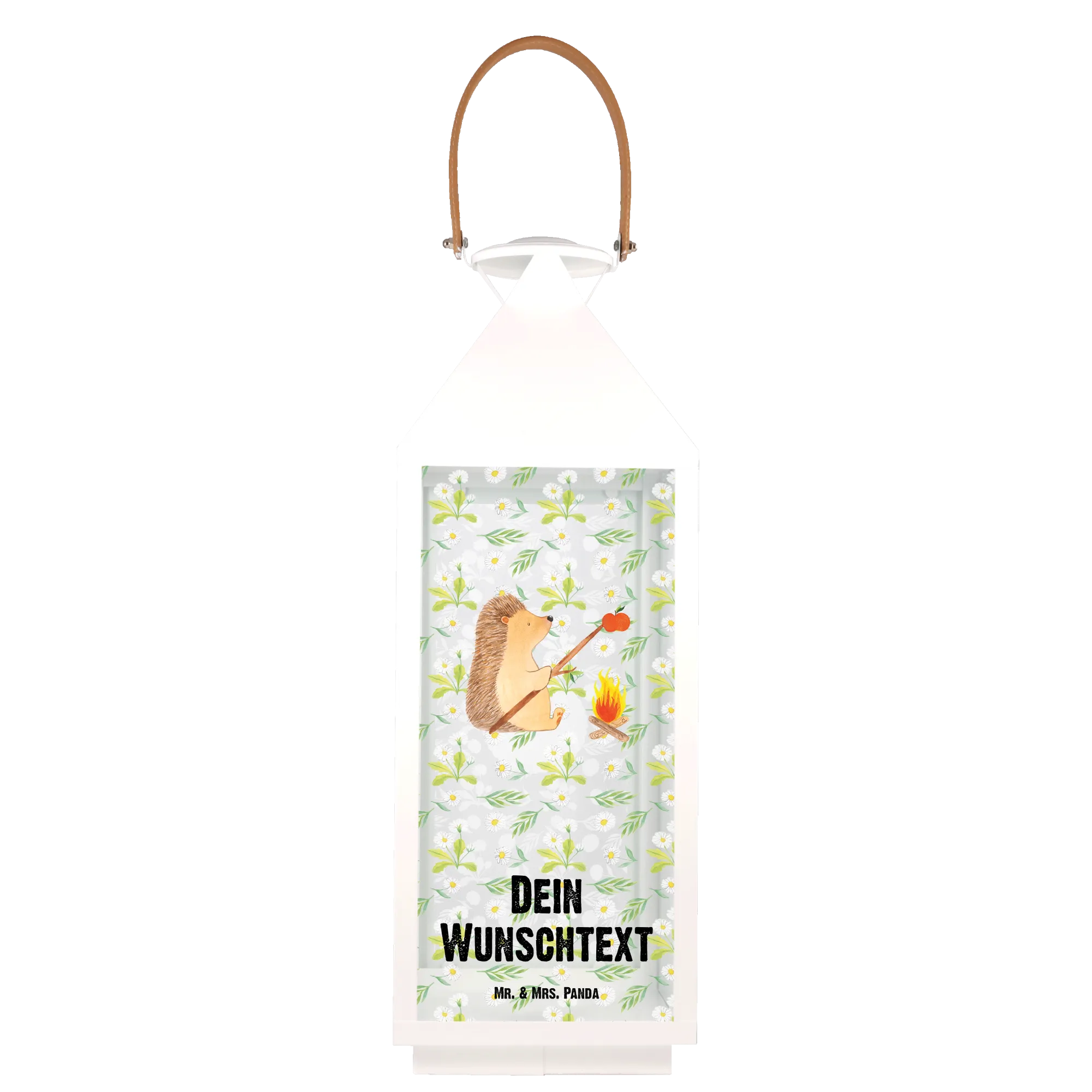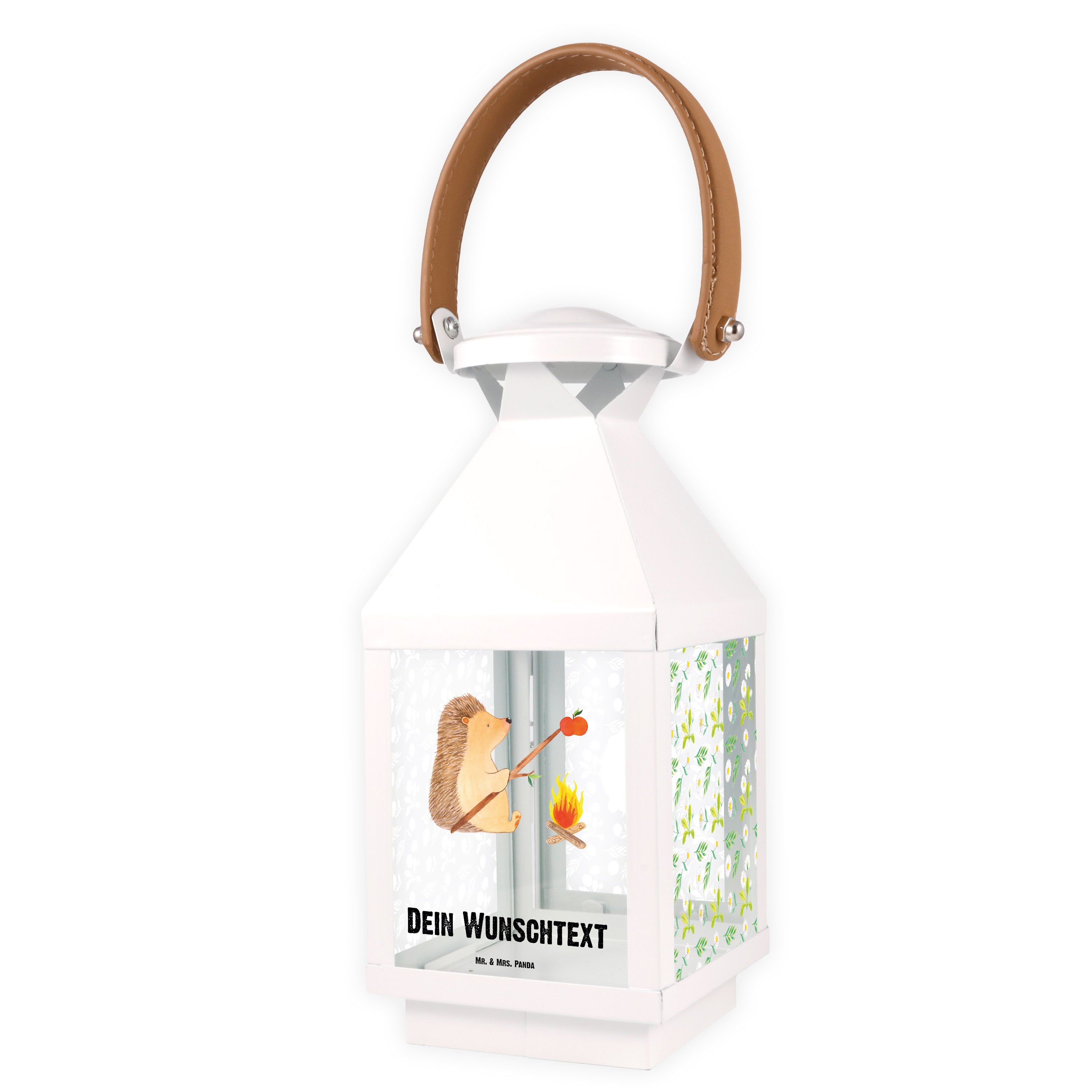 Die personalisierte Deko Laterne "Igel grillt" aus der Small World Kollektion von Mr. & Mrs. Panda ist das perfekte Geschenk für all jene, die eine Vorliebe für Gartenleuchten und hübsche Gartendekoration haben.