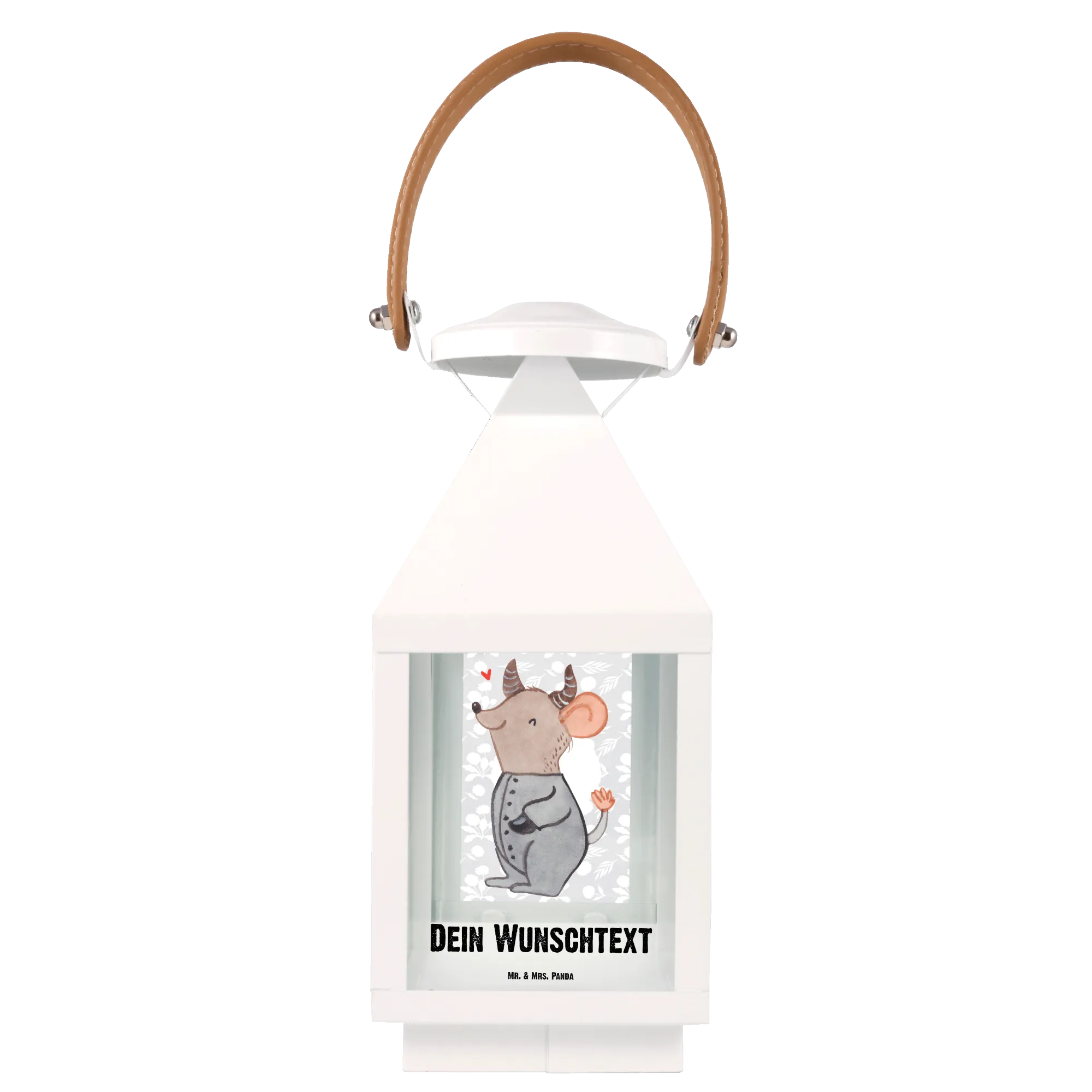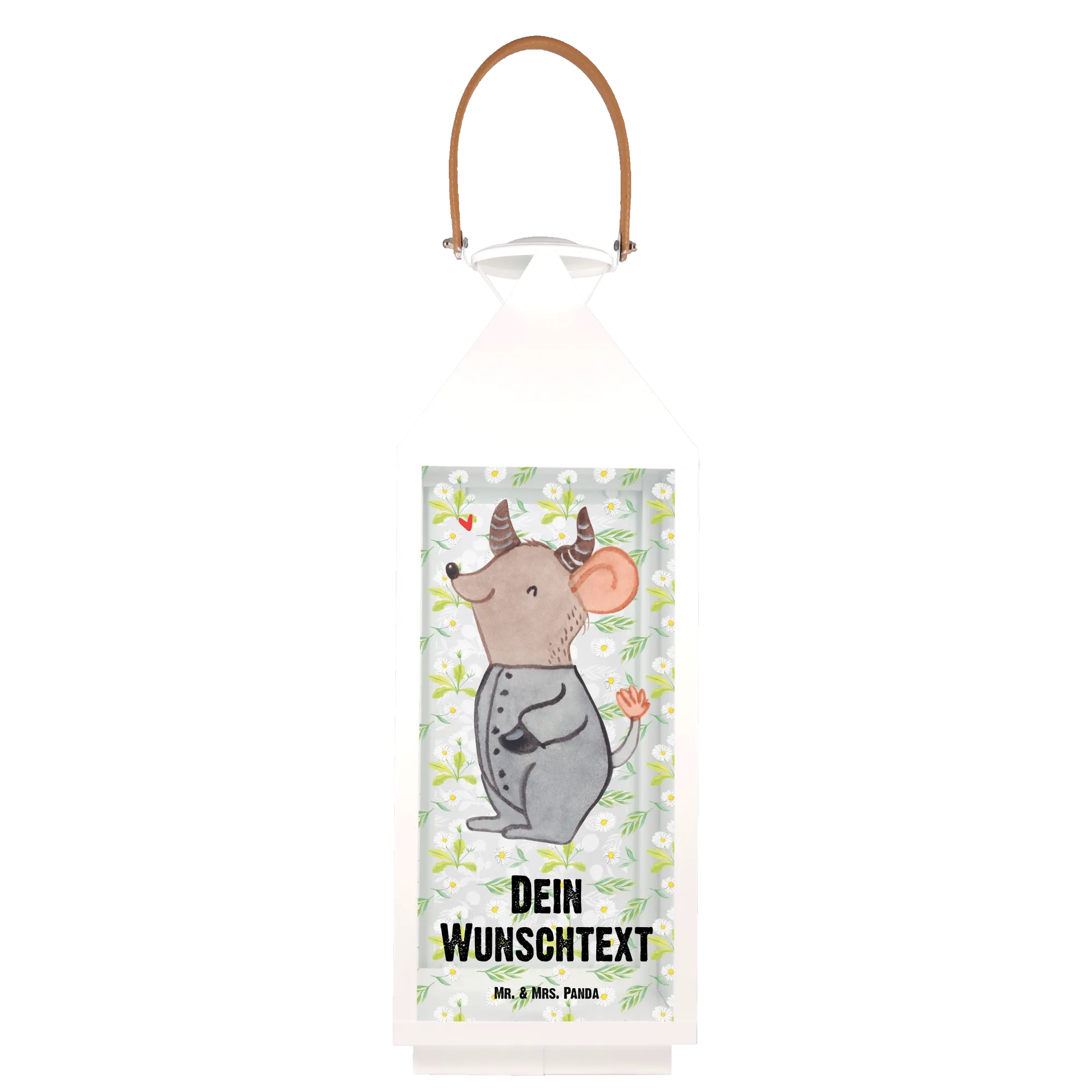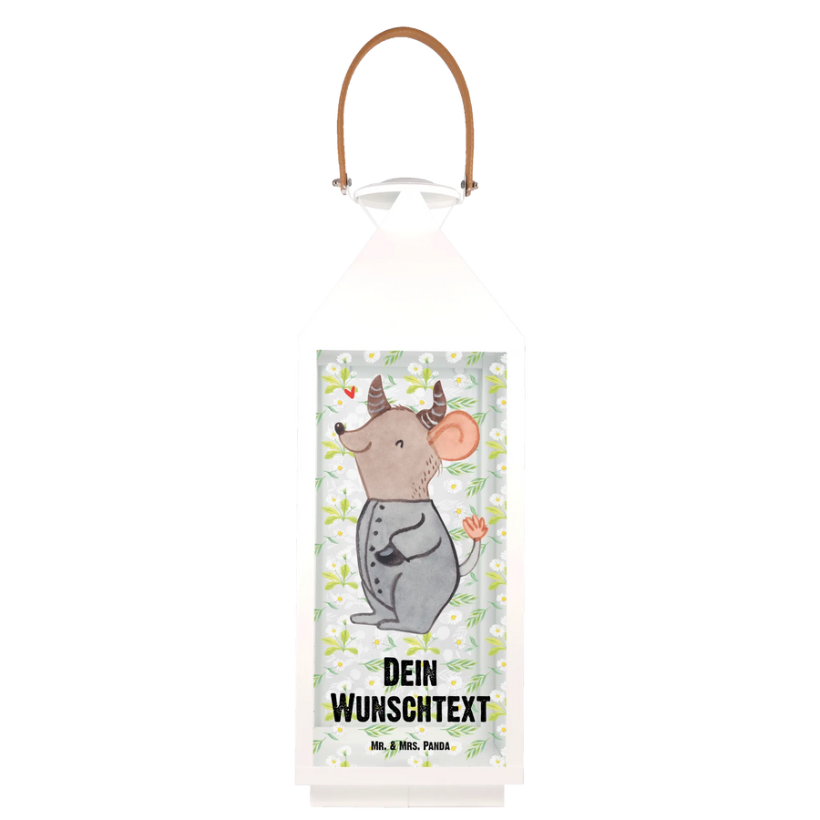 Die personalisierte Deko Laterne mit dem einzigartigen Motiv Stier aus der Sternzeichen-Kollektion von Mr. & Mrs. Panda ist der perfekte Begleiter für alle, die das Besondere lieben. Mit ihrem niedlichen Design und der liebevollen Darstellung einer fröhlich geschwungenen Maus, die die Eigenschaften des Tierkreiszeichens Stier verkörpert, bringt diese Laterne Charme und Gemütlichkeit in jeden Garten oder Balkon.