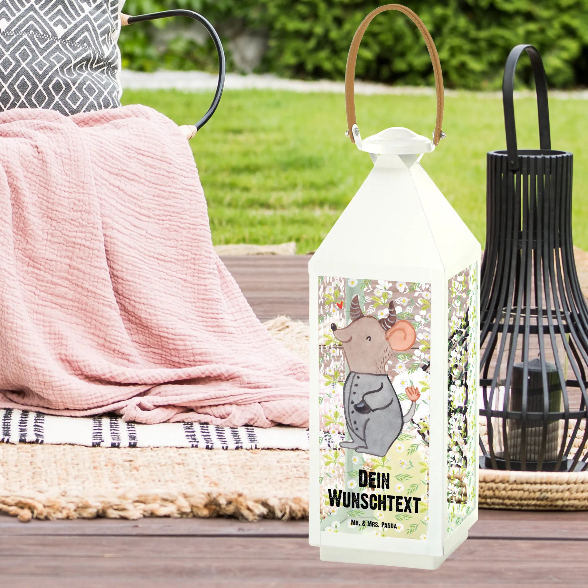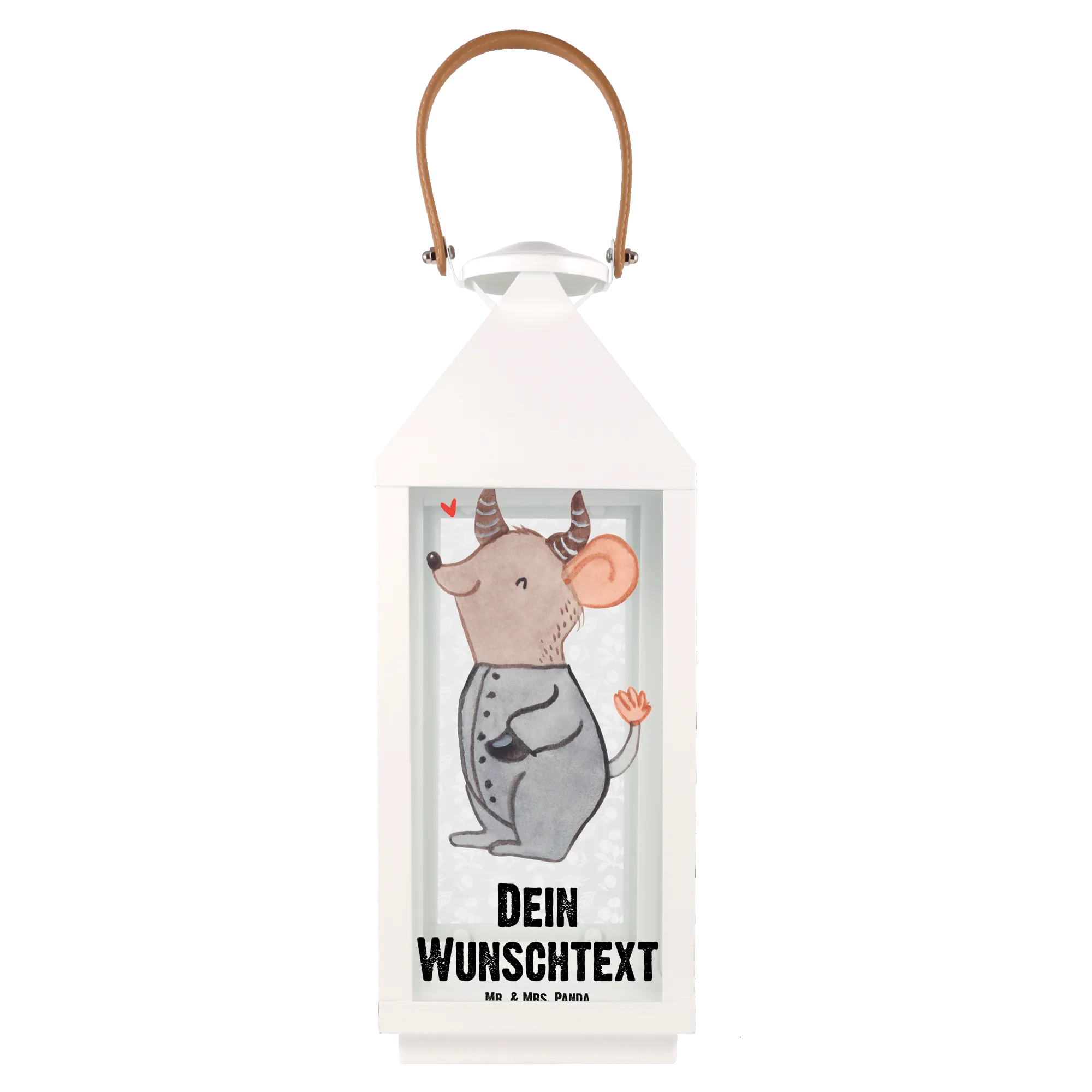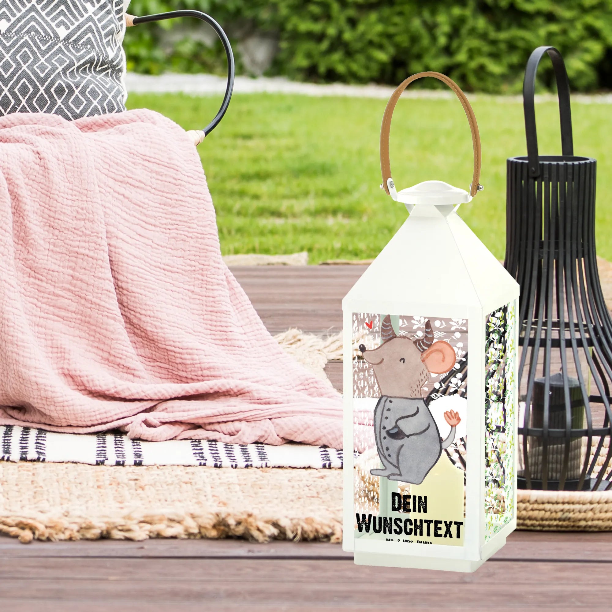 Die personalisierte Deko Laterne mit dem einzigartigen Motiv Stier aus der Sternzeichen-Kollektion von Mr. & Mrs. Panda ist der perfekte Begleiter für alle, die das Besondere lieben. Mit ihrem niedlichen Design und der liebevollen Darstellung einer fröhlich geschwungenen Maus, die die Eigenschaften des Tierkreiszeichens Stier verkörpert, bringt diese Laterne Charme und Gemütlichkeit in jeden Garten oder Balkon.