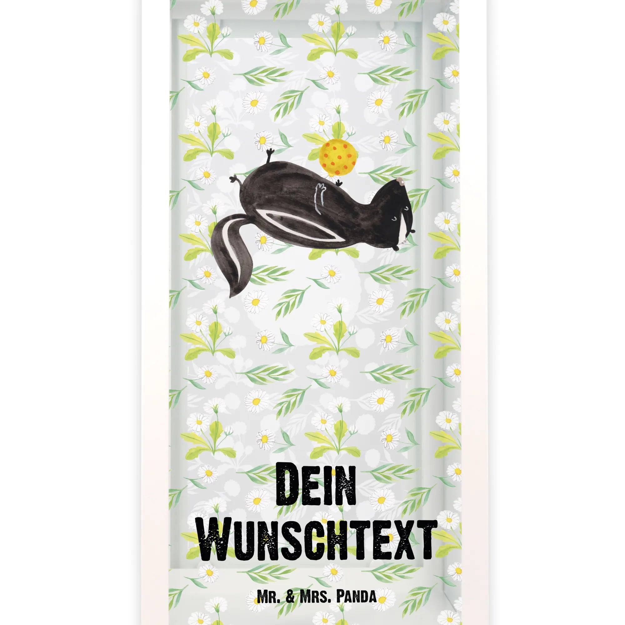 Die personalisierte Deko Laterne Stinktier Ball von Mr. & Mrs. Panda ist das perfekte Geschenk für all jene, die ihren Garten, Balkon oder die Terrasse liebevoll dekorieren möchten.
