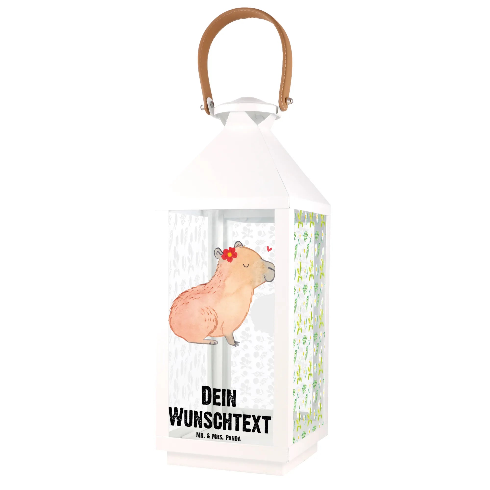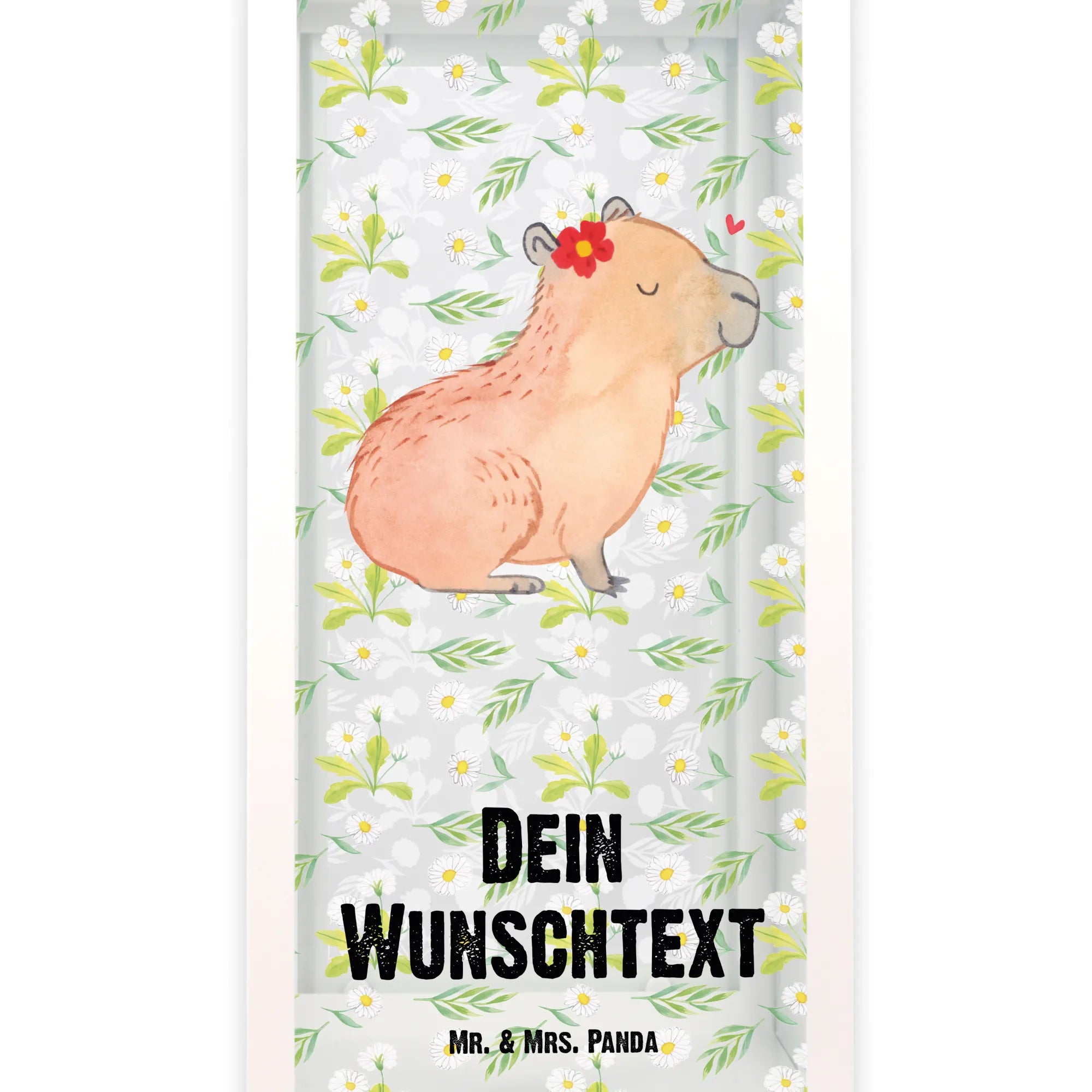 Deine Vorteile auf einen Blick: personalisierte Deko Laterne, bedruckte Glasscheiben mit Capybara Blume, Tür zum Einlegen von Kerzen oder Lichterketten, vielseitig einsetzbar als Tischlaterne oder Hängelaterne und ideal als Geschenkidee. Schaffe gemütliche Lichtmomente – mit der Capybara Blume Laterne von Mr. & Mrs. Panda. 🕯️✨