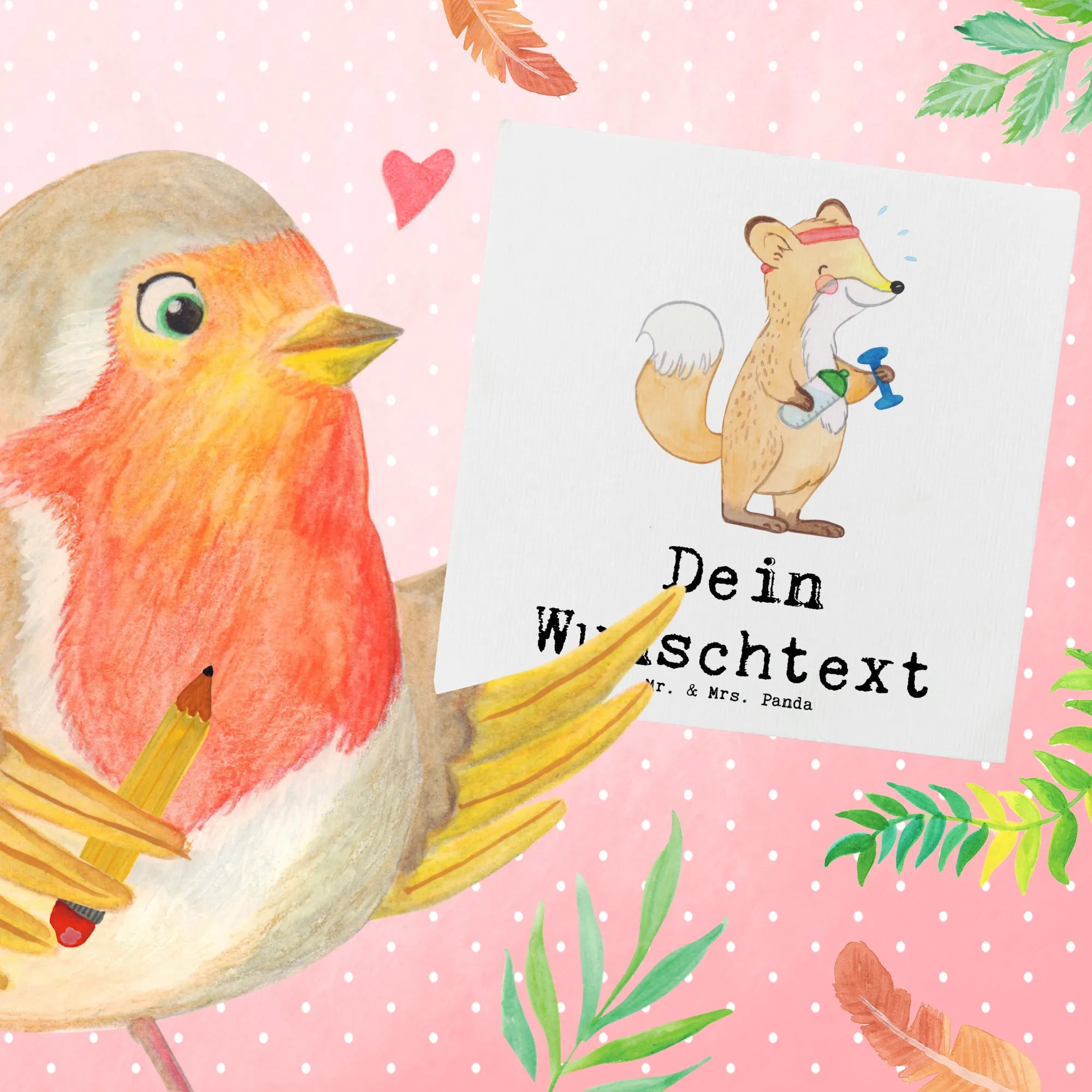 Personalized Deluxe Card Fox fitness - Grey Pastel