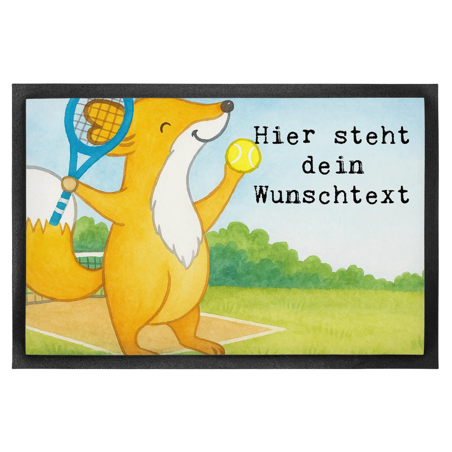 Personalisierte Fußmatte Fuchs Tennis spielen Design Türvorleger personalisiert, Wunschnamen, Namensfussmatte, Bedrucken, Personalisieruung, Personalisiert, Fußmatte bedrucken, Fußmatte mit Namen, Türvorleger mit Namen, Haustürmatte personalisiert, Personalisierte Fußmatte, Geschenk, Sport, Sportart, Hobby, Schenken, Danke, Dankeschön, Auszeichnung, Gewinn, Sportler, Ballsportart, Tennisverein, Tennisclub, Tennis spielen, Tennis Turnier