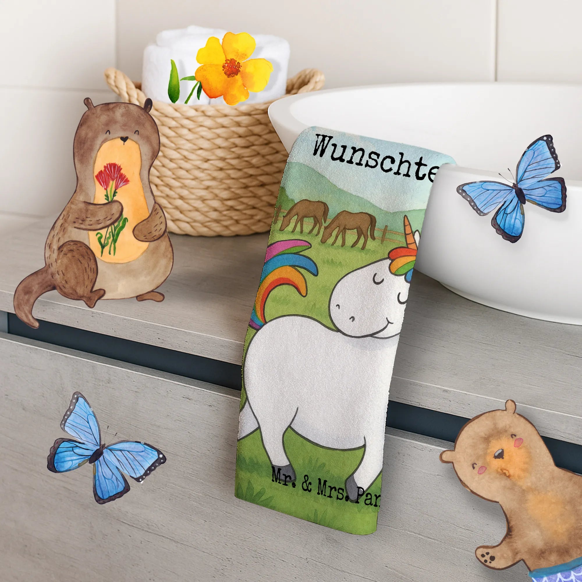 Personalisiertes Gästehandtuch Einhorn Stolzieren Design