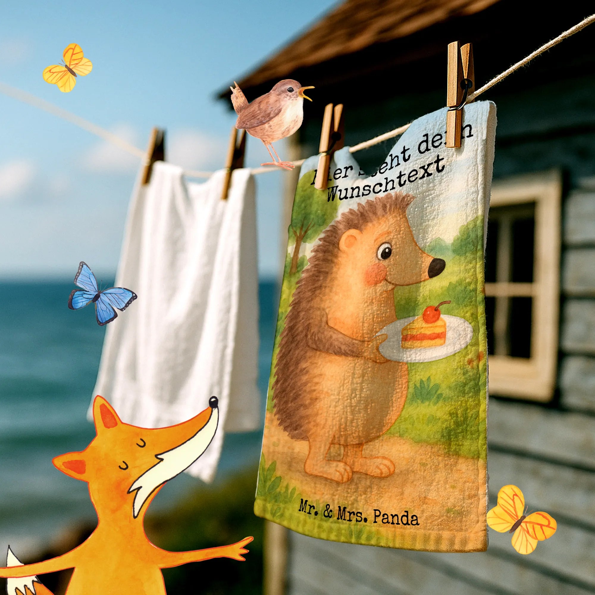 Personalisiertes Gästehandtuch Igel Kuchenstück Design – Mr. & Mrs. Panda