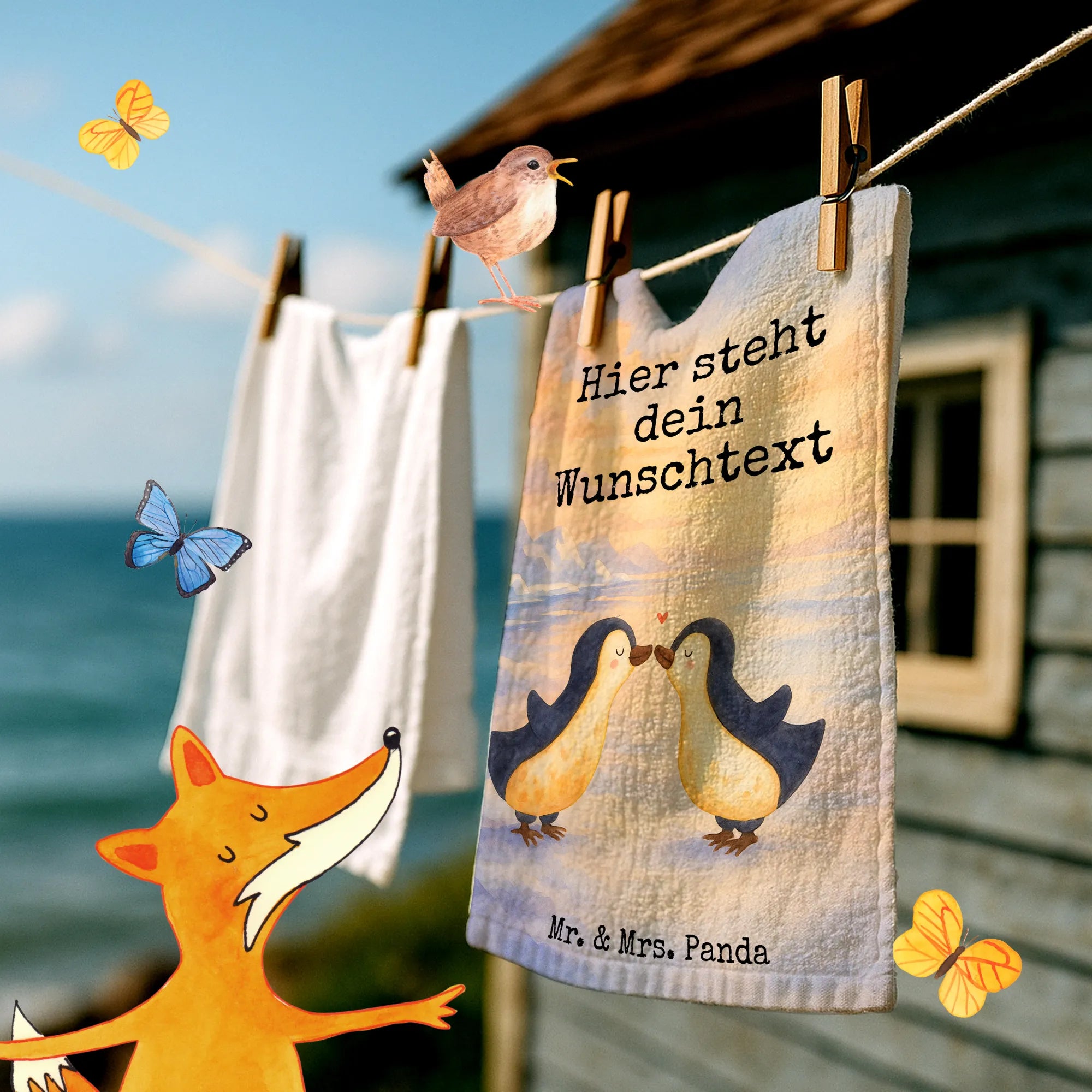 Personalisiertes Gästehandtuch Pinguin Liebe Design – Mr. & Mrs. Panda