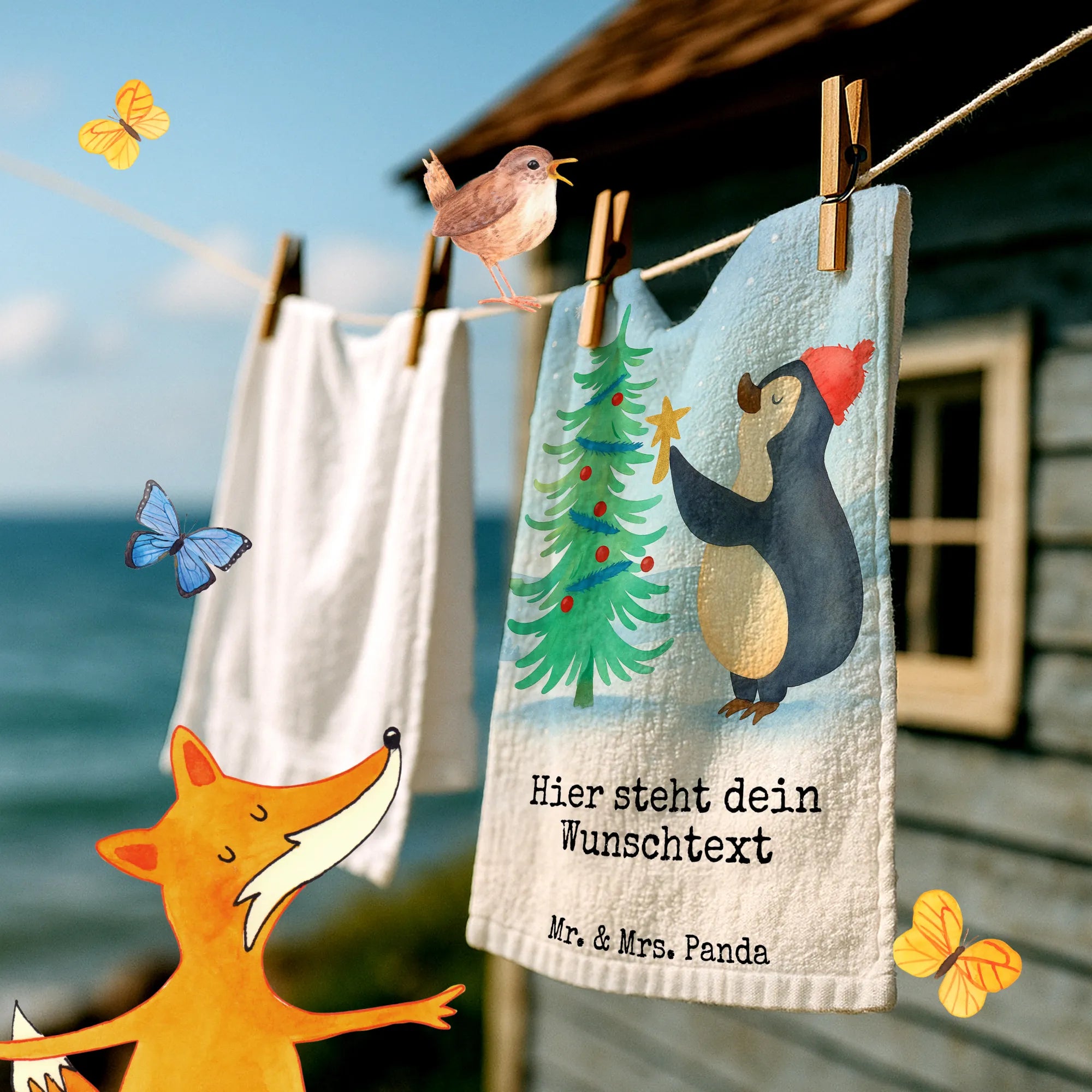 Personalisiertes Gästehandtuch Pinguin Weihnachtsbaum Design