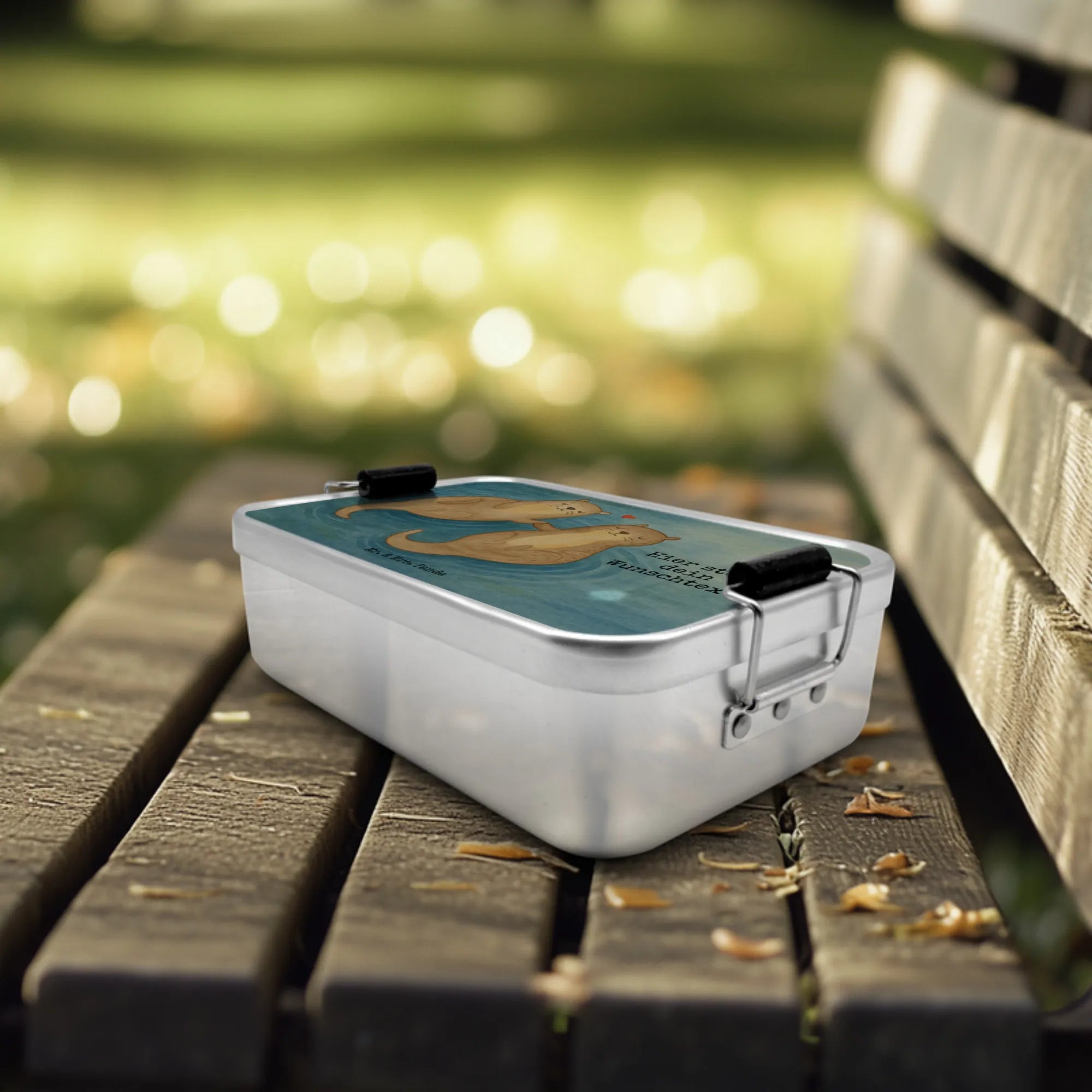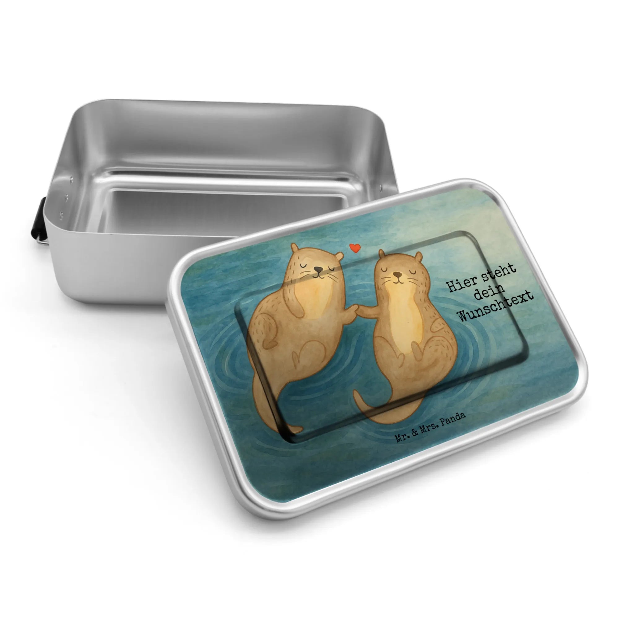 Personalized Metal Lunch Box otter holding hands Design Geschenk mit Namen, Brotdose, Brotbox, Kindergarten, Uni, Brotbox mit Namen, Schule, Brotdose mit Namen, Otter, Fischotter, Seeotter, Otter Seeotter See Otter