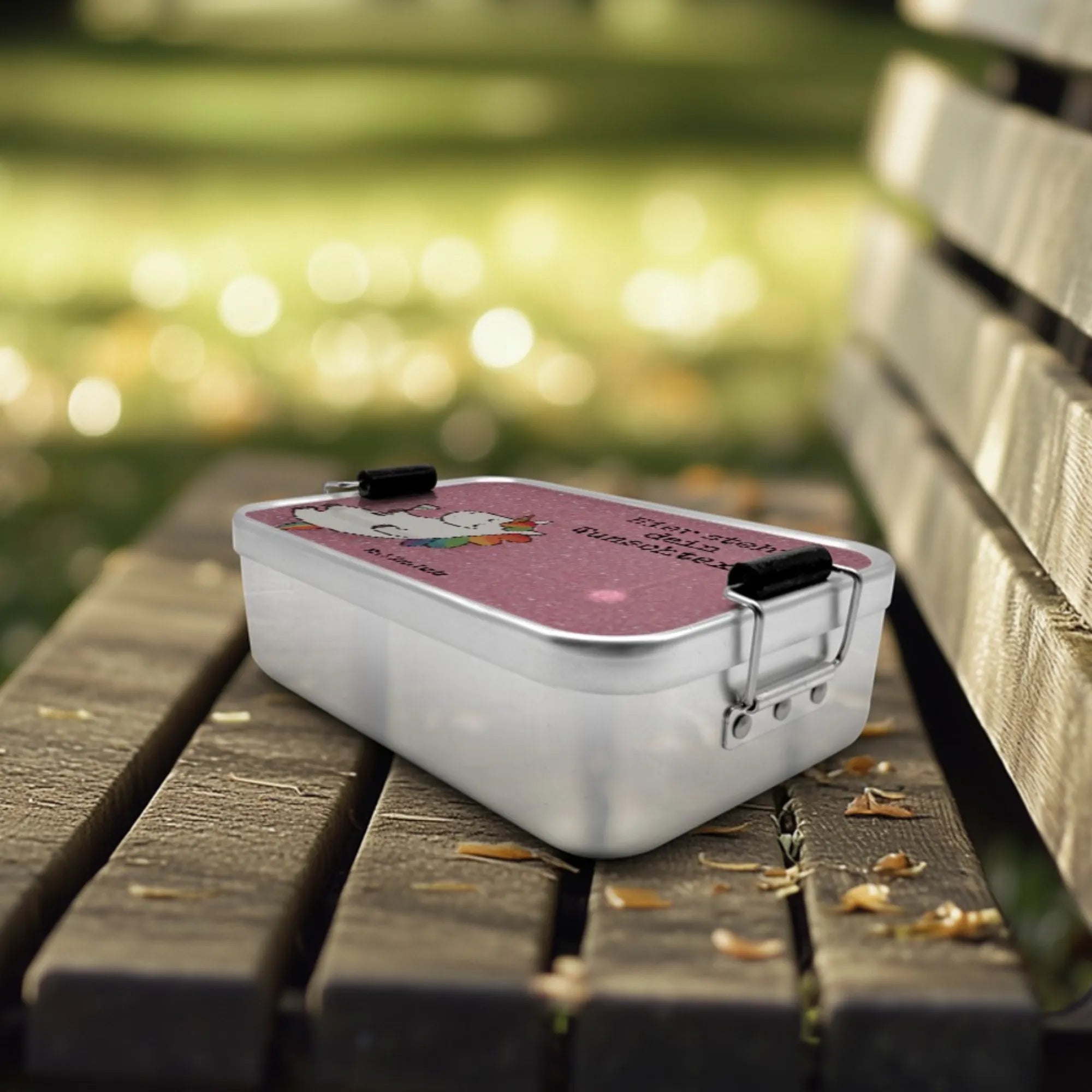 🐼 Personalised Metal Lunch Box, aluminium, food-contact approved, retro prints.