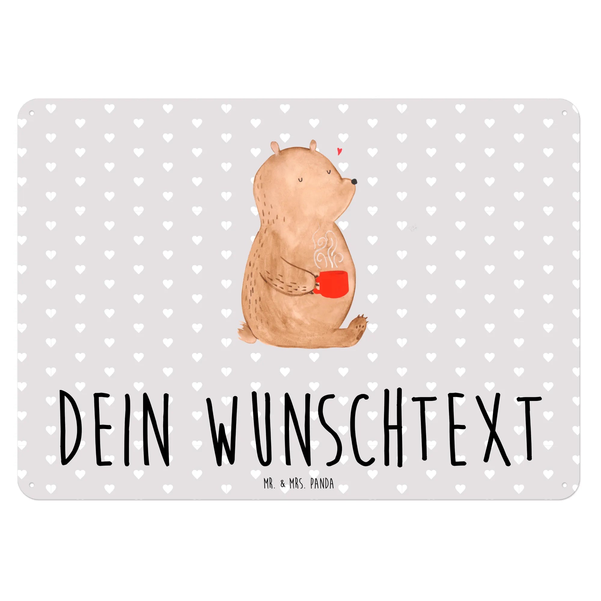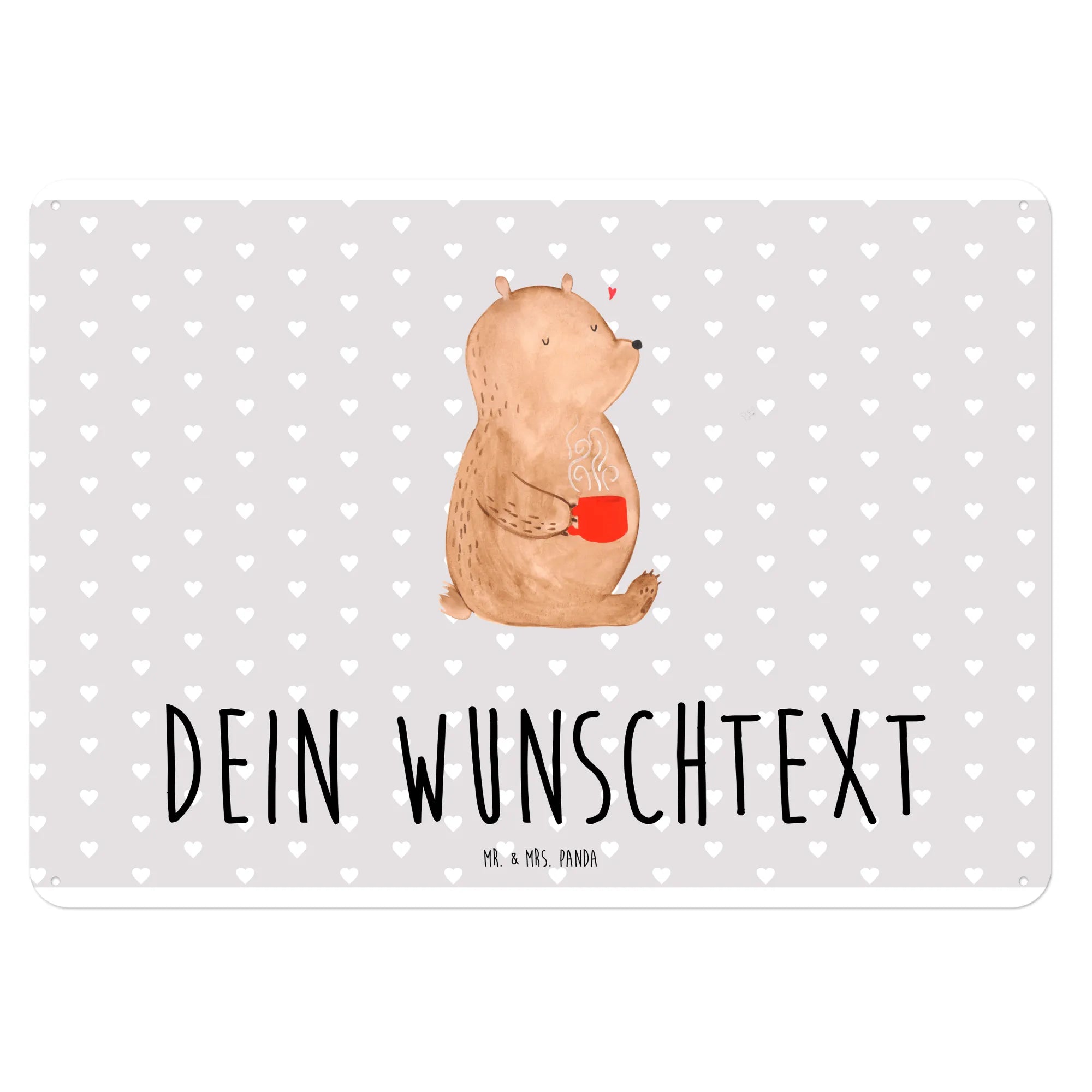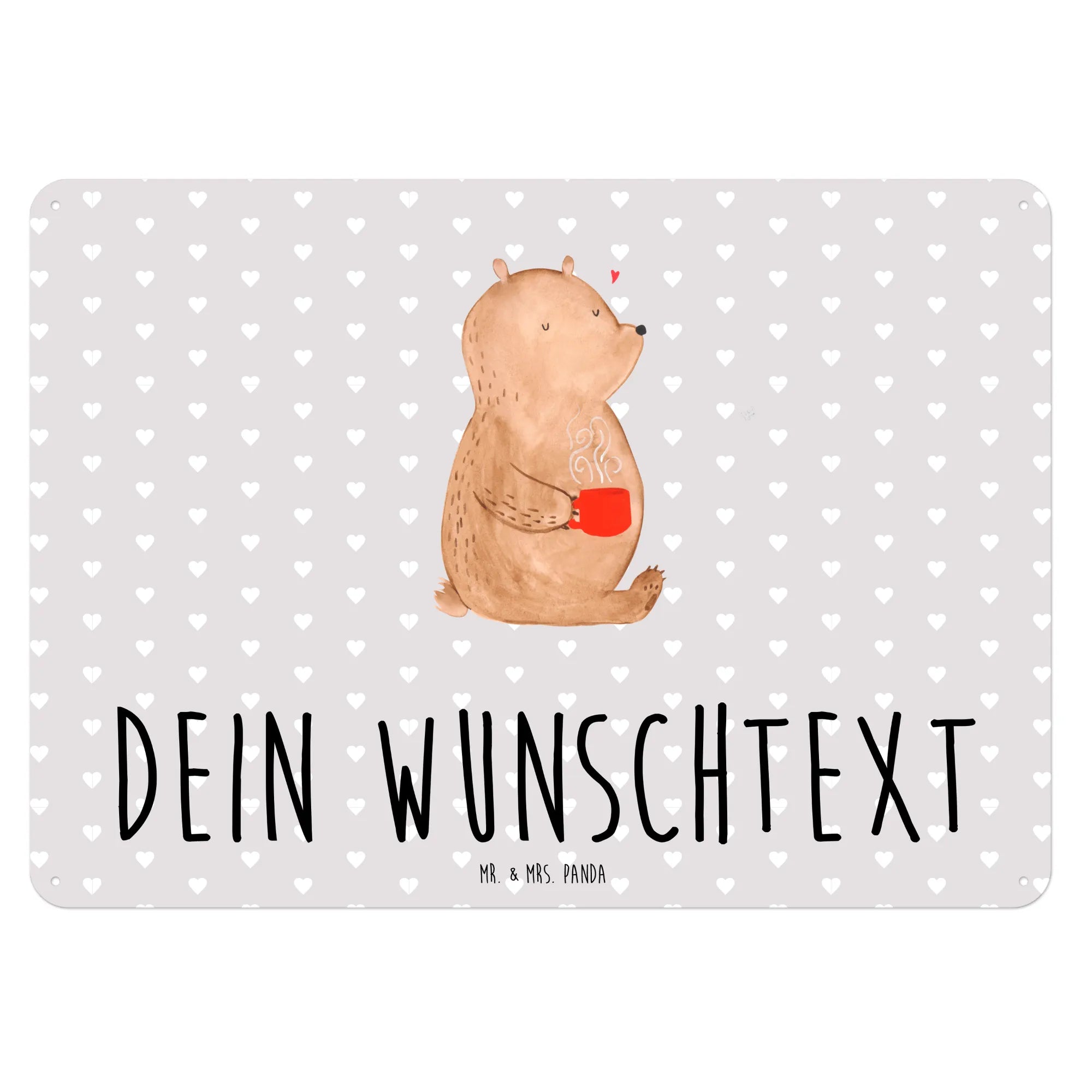 Das personalisierte Blechschild mit dem süßen Motiv des Bären Morgenkaffee von Mr. & Mrs. Panda ist das perfekte Geschenk für verliebte Paare. Ob zum Valentinstag, Jahrestag oder Hochzeitstag, dieses Schild zaubert jedem ein Lächeln ins Gesicht.