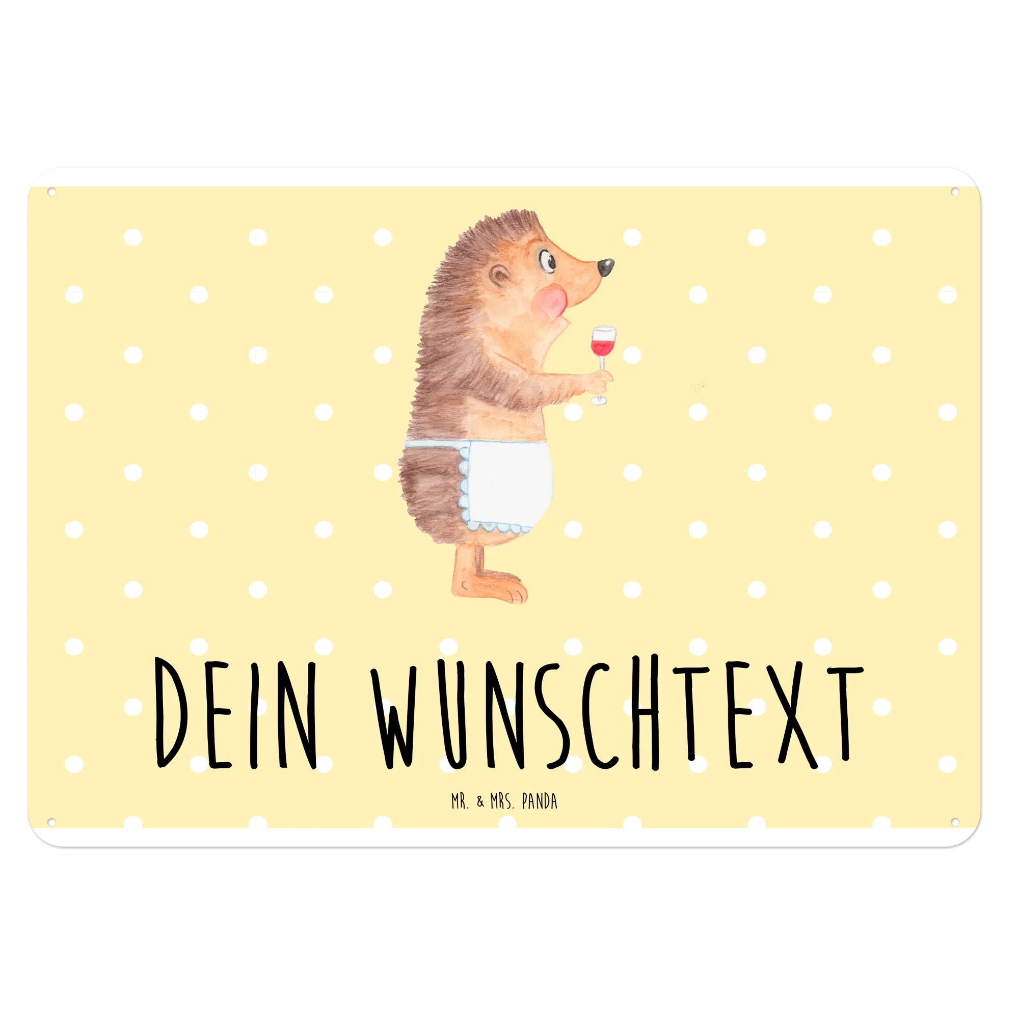 Das personalisierte Blechschild "Igel mit Wein" von Mr. & Mrs. Panda ist das perfekte Geschenk für Weinliebhaber und Freunde von lustigen Dekorationen. Ob als Wandschild oder Türschild, es bringt Freude und eine Portion Humor in jedes Zuhause.