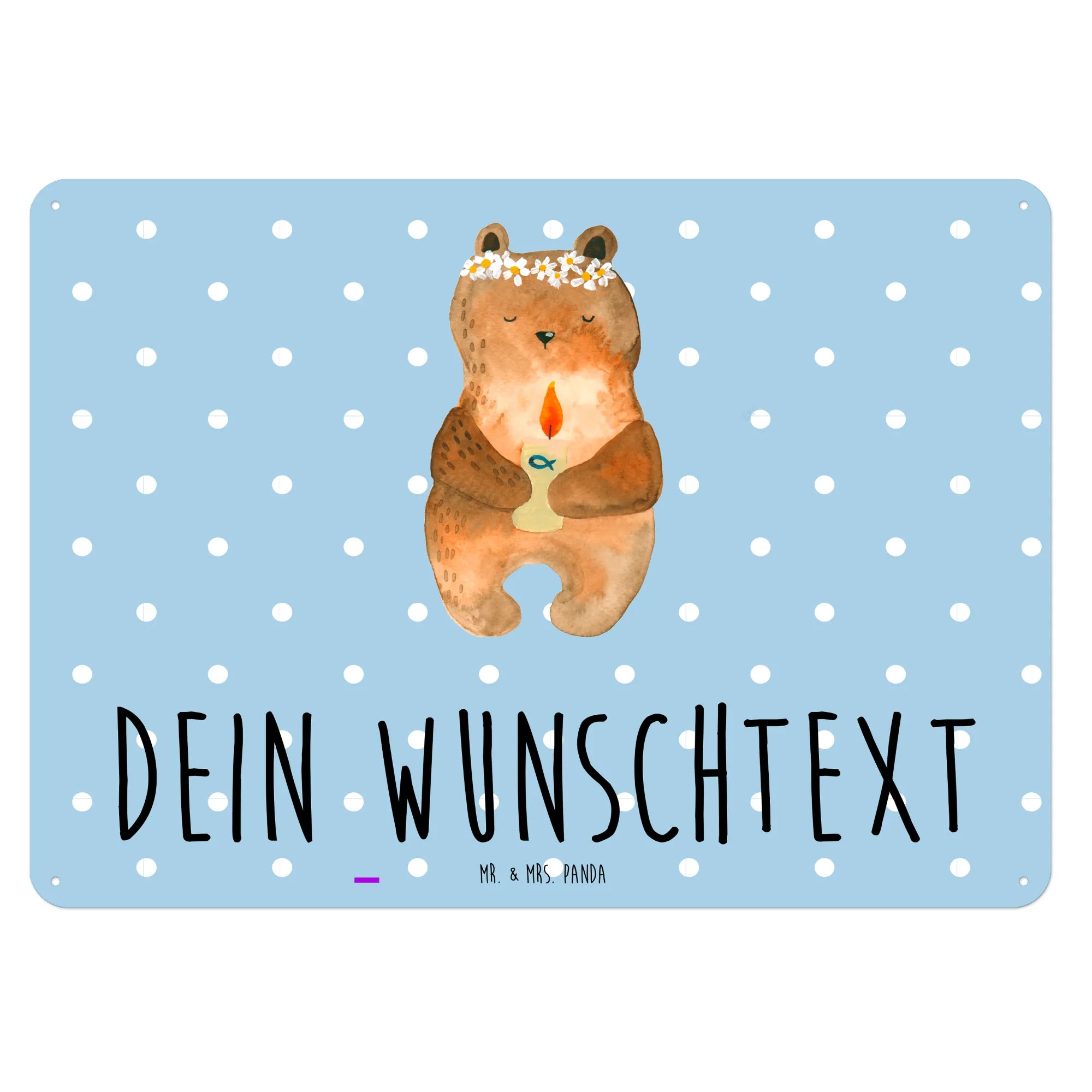 Das personalisierte Blechschild "Kommunion-Bär" von Mr. & Mrs. Panda ist das perfekte Geschenk für den besonderen Tag der Kommunion. Ob für einen geliebten Menschen oder als schicke Dekoration für dein Zuhause, dieses Schild bringt Freude und liebevolle Erinnerungen.