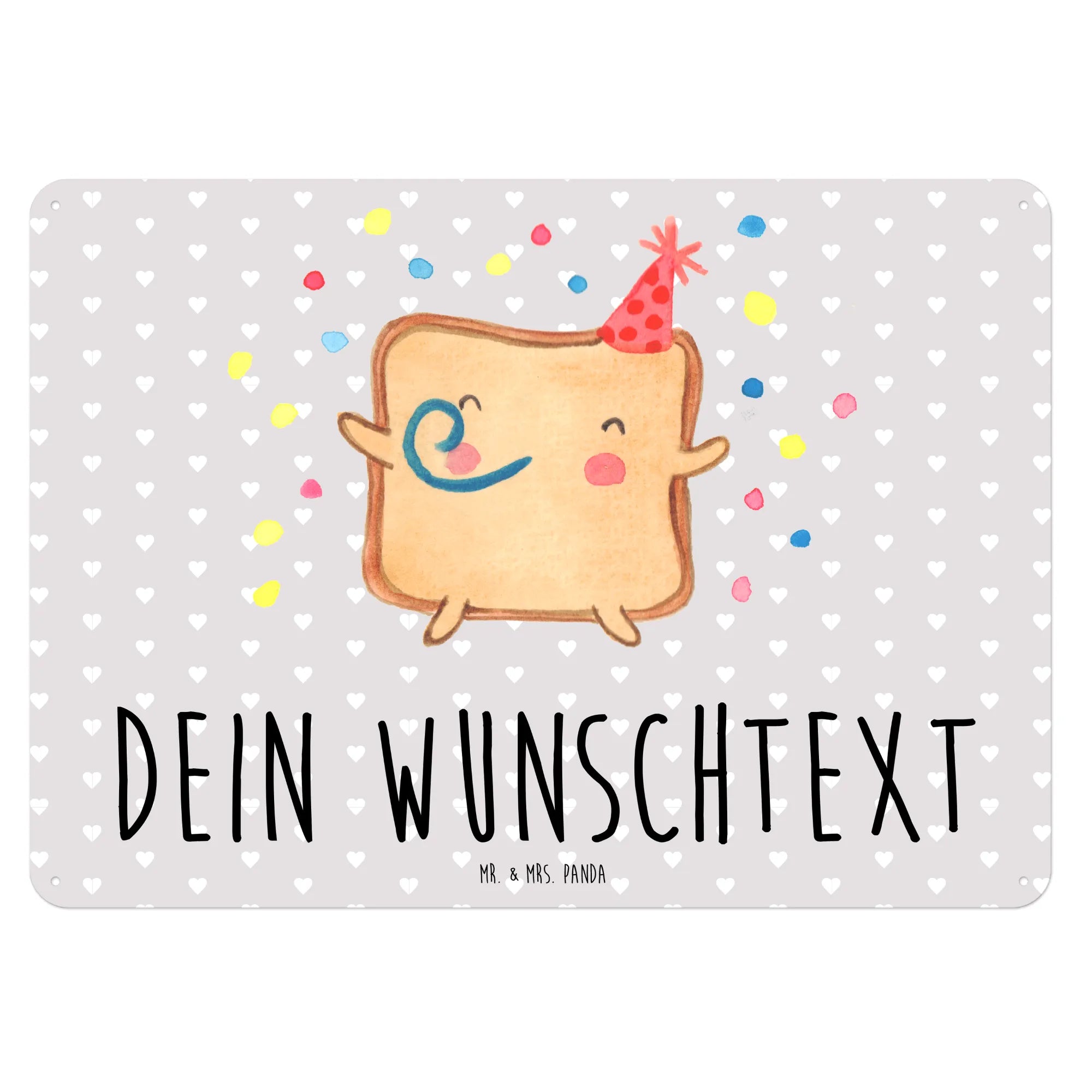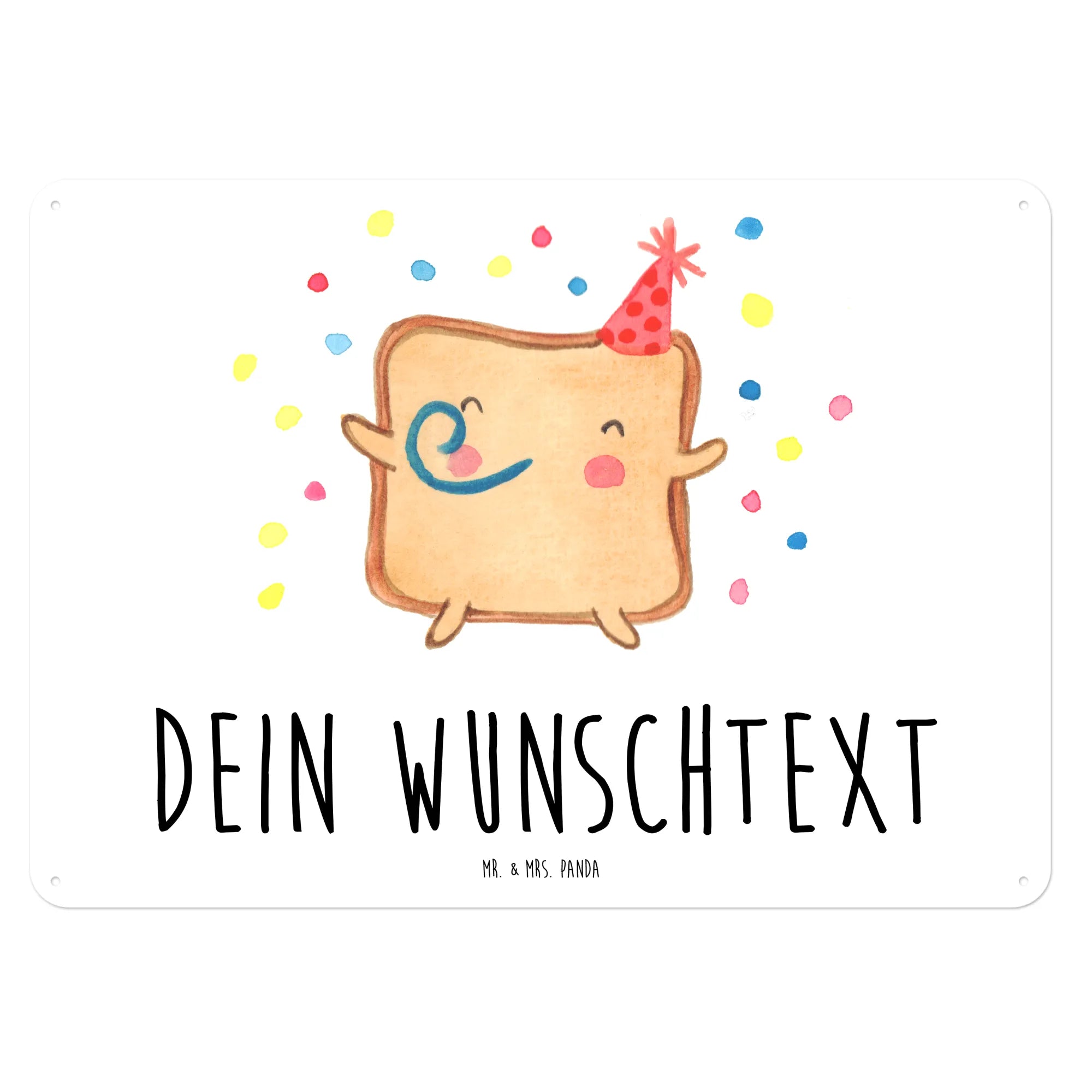 Das personalisierte Blechschild "Toast Party" von Mr. & Mrs. Panda ist die perfekte Geschenkidee für all jene, die ihren Liebsten eine Freude machen möchten. Mit dem witzigen Motiv, auf dem ein fröhlicher Toast mit einem Partyhut abgebildet ist, sorgt dieses Schild für gute Laune und ein Lächeln im Alltag. Der Slogan "Einen Toast auf dich!" macht das Schild zu einem einzigartigen Liebesbeweis, ideal als Geschenk zum Valentinstag, Jahrestag oder Hochzeitstag.