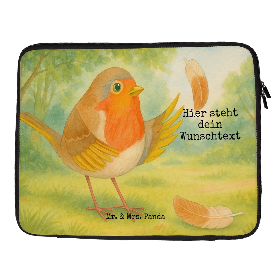 Personalisierte Notebook Tasche Rotkehlchen Federn Design - 20 x 28 cm