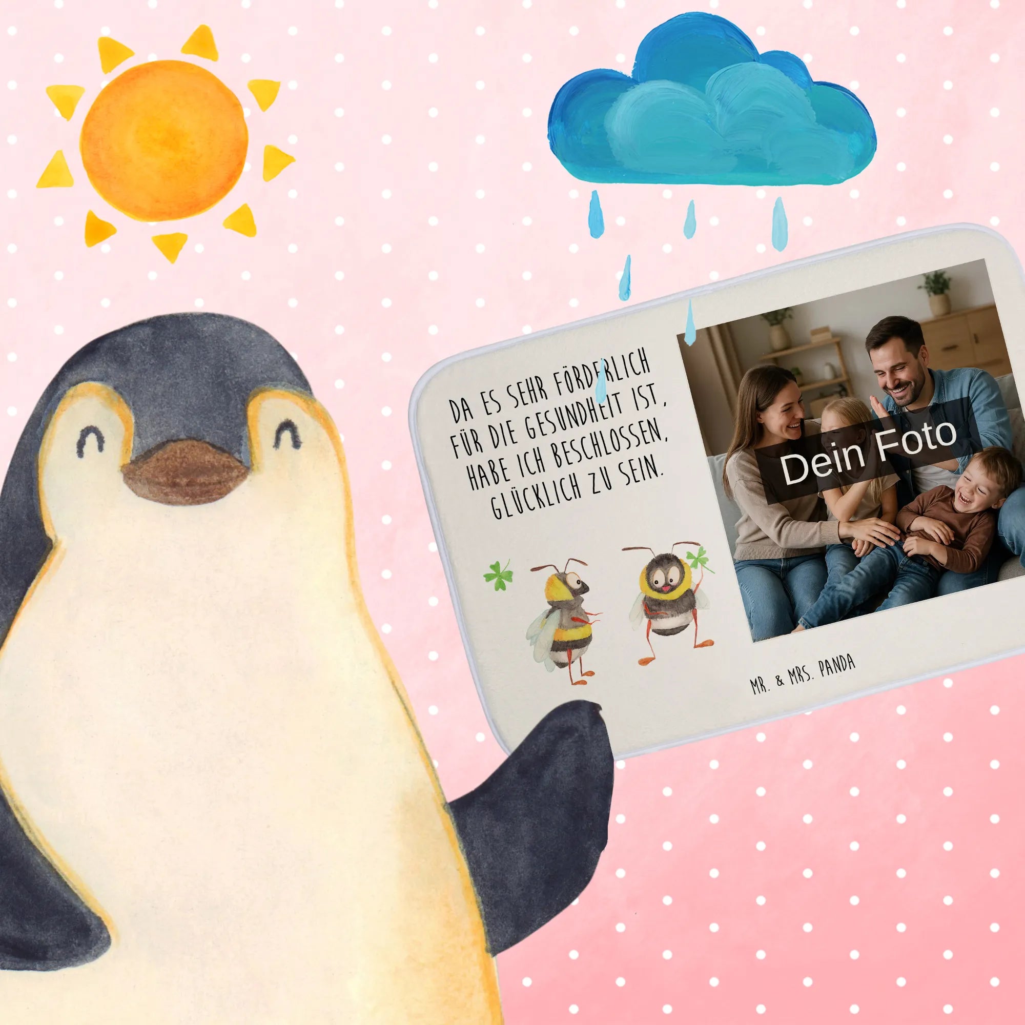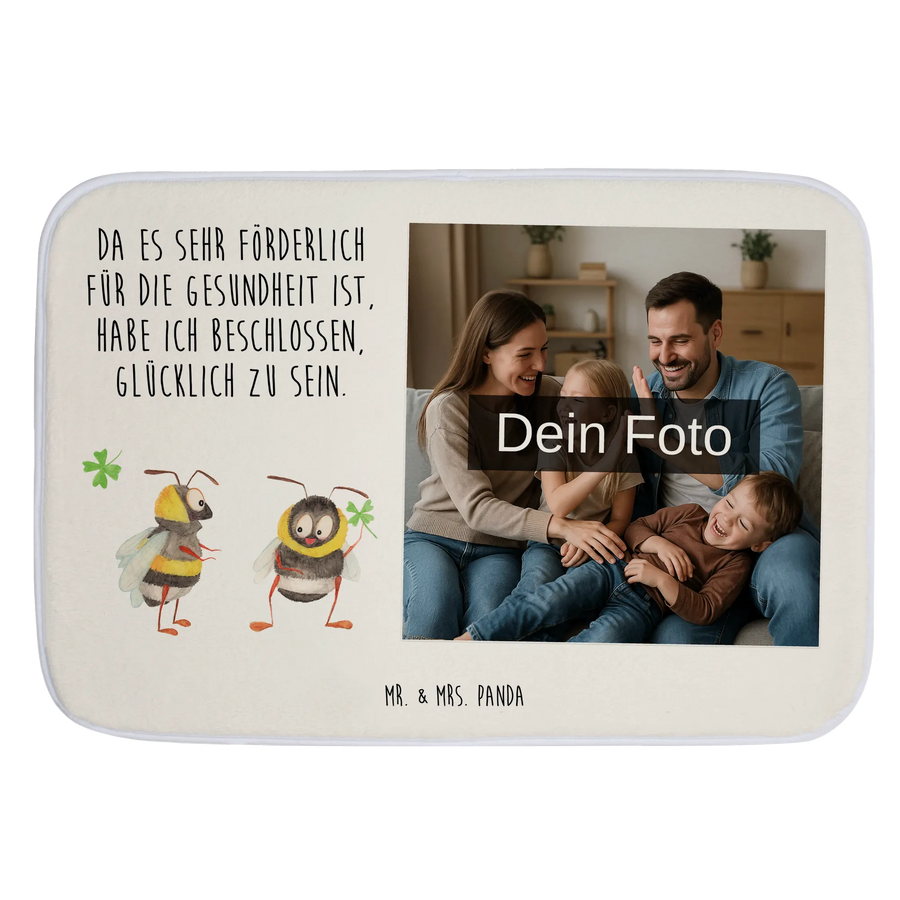 Personalisierte Foto Badematte Hummeln Kleeblatt – Mr. & Mrs. Panda