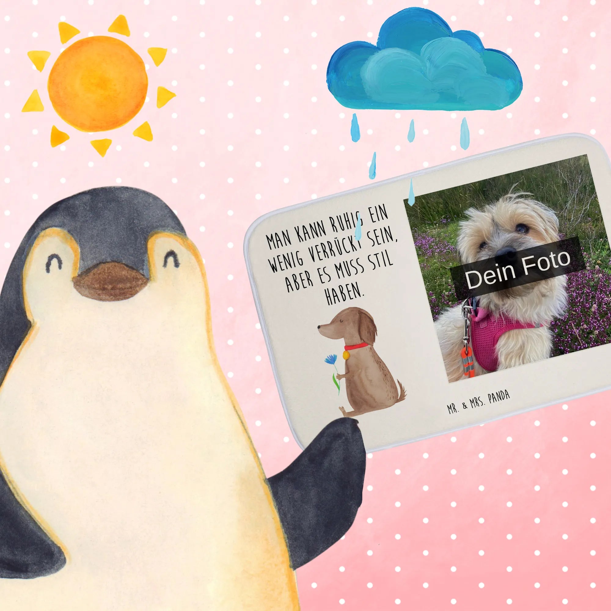 Die Hunde Kollektion von Mr. & Mrs. Panda zelebriert die tiefe Verbundenheit zwischen Hunden und ihren Besitzern. Jedes Produkt dieser Linie spricht die unendliche Liebe und Loyalität aus, die diese wunderbaren Tiere uns entgegenbringen. Die kunstvollen Aquarellmotive von Mrs. Panda bringen die Persönlichkeit und den unverwechselbaren Charme verschiedenster Hunderassen zum Ausdruck. Begleitet von Sprüchen, die direkt ins Herz treffen, ist jedes Stück aus dieser Kollektion mehr als nur ein Gegenstand – es ist eine Erinnerung an die bedingungslose Liebe, die wir von unseren vierbeinigen Freunden erhalten. Ob du auf der Suche nach einem stilvollen Wohnaccessoire bist oder ein emotional berührendes Geschenk für einen Tierliebhaber benötigst, in der Hunde Kollektion von Mr. & Mrs. Panda wirst du fündig. Jedes Stück ist einzigartig und voller Persönlichkeit, genau wie die Hunde, die wir alle so lieben.