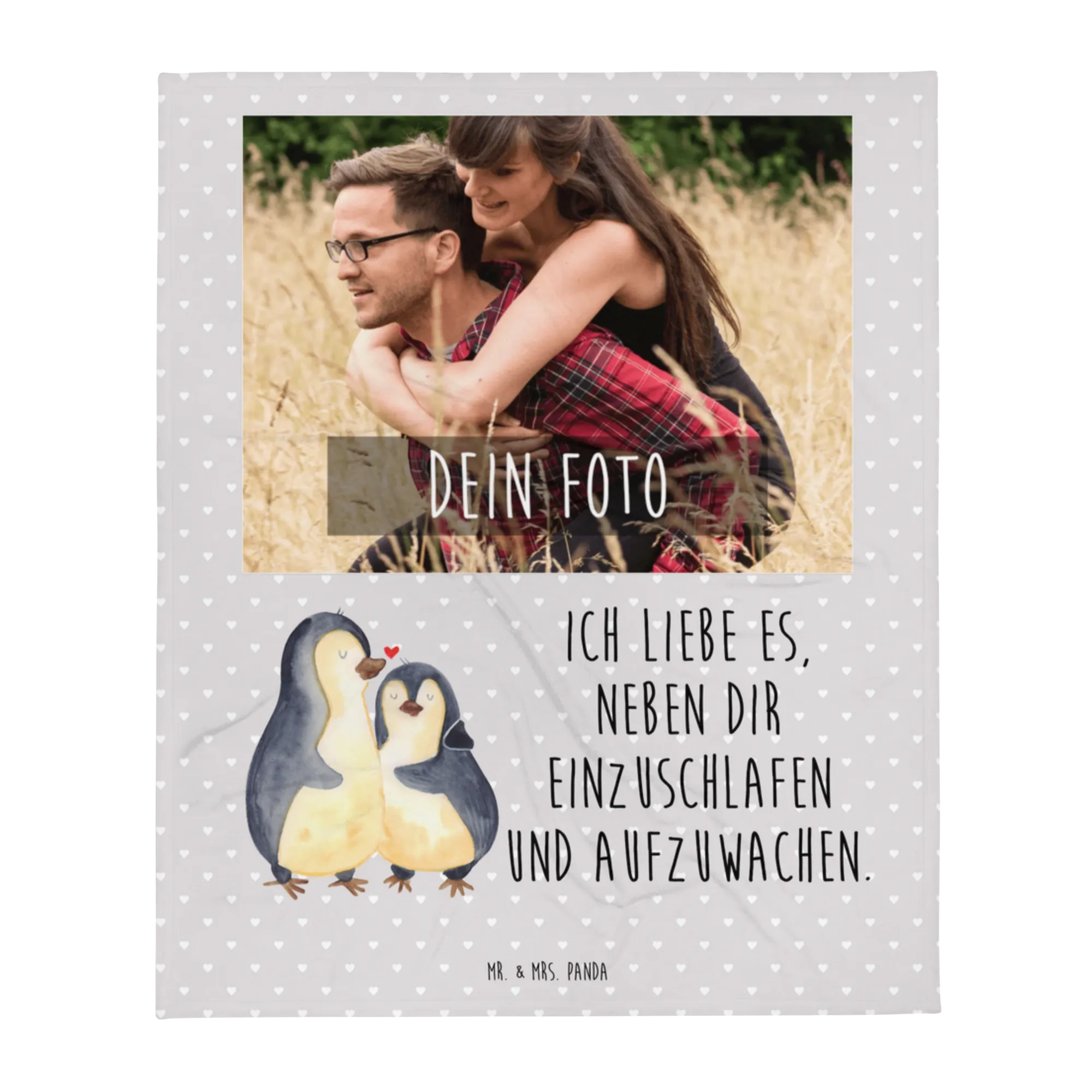 Personalized Photo Blanket penguins Fall asleep - Grey Pastel