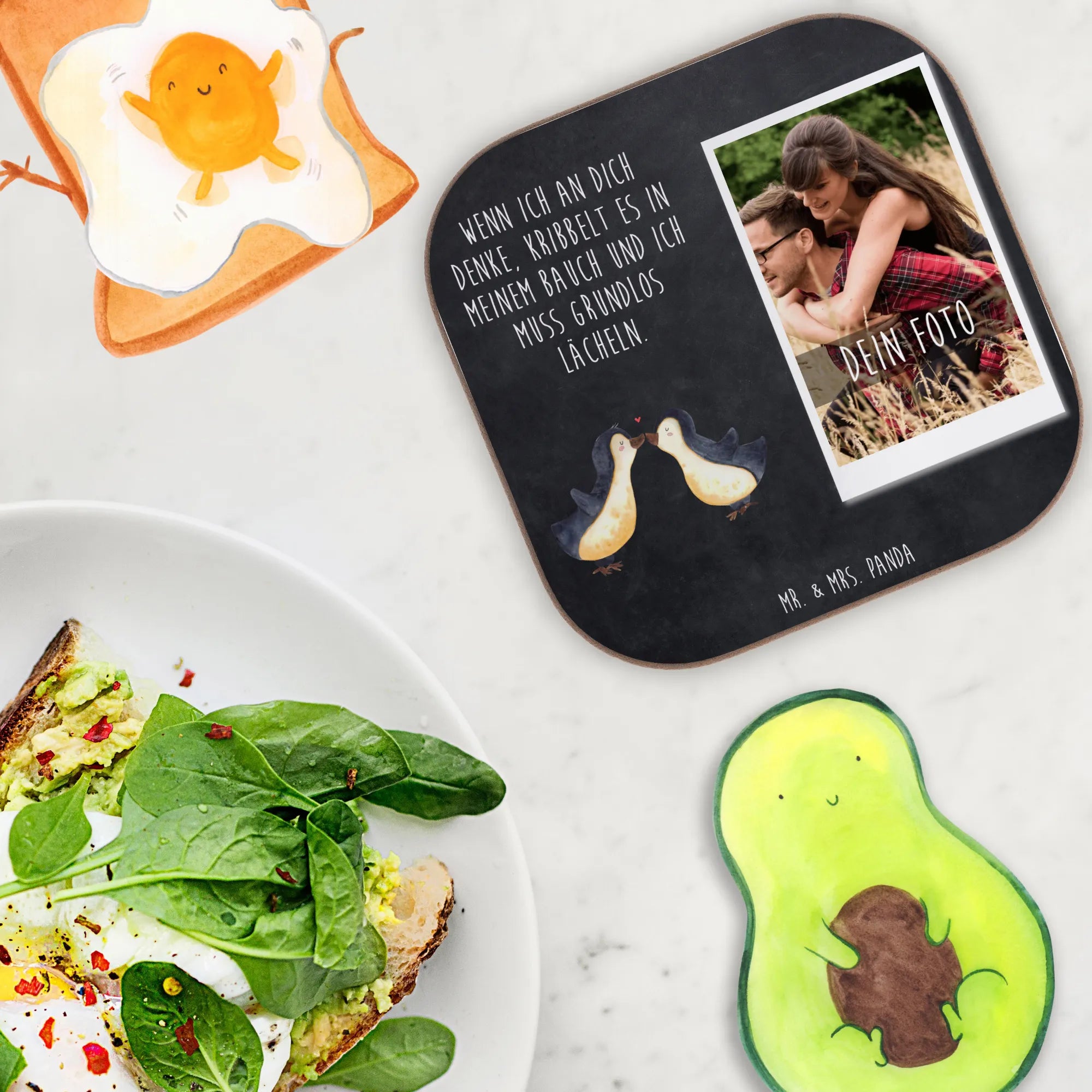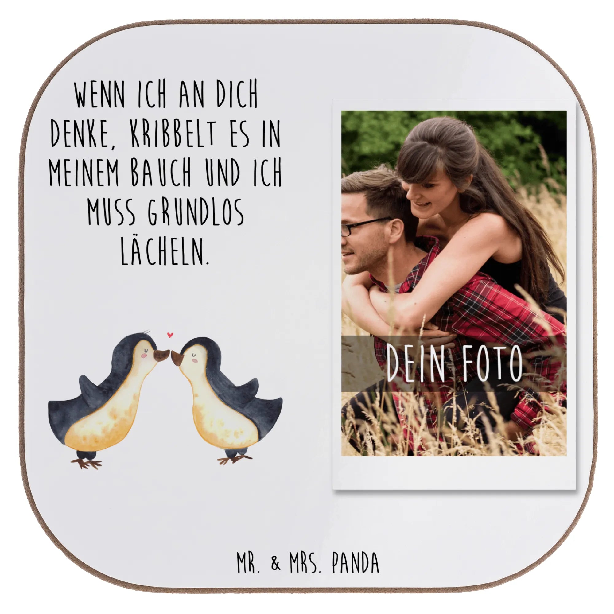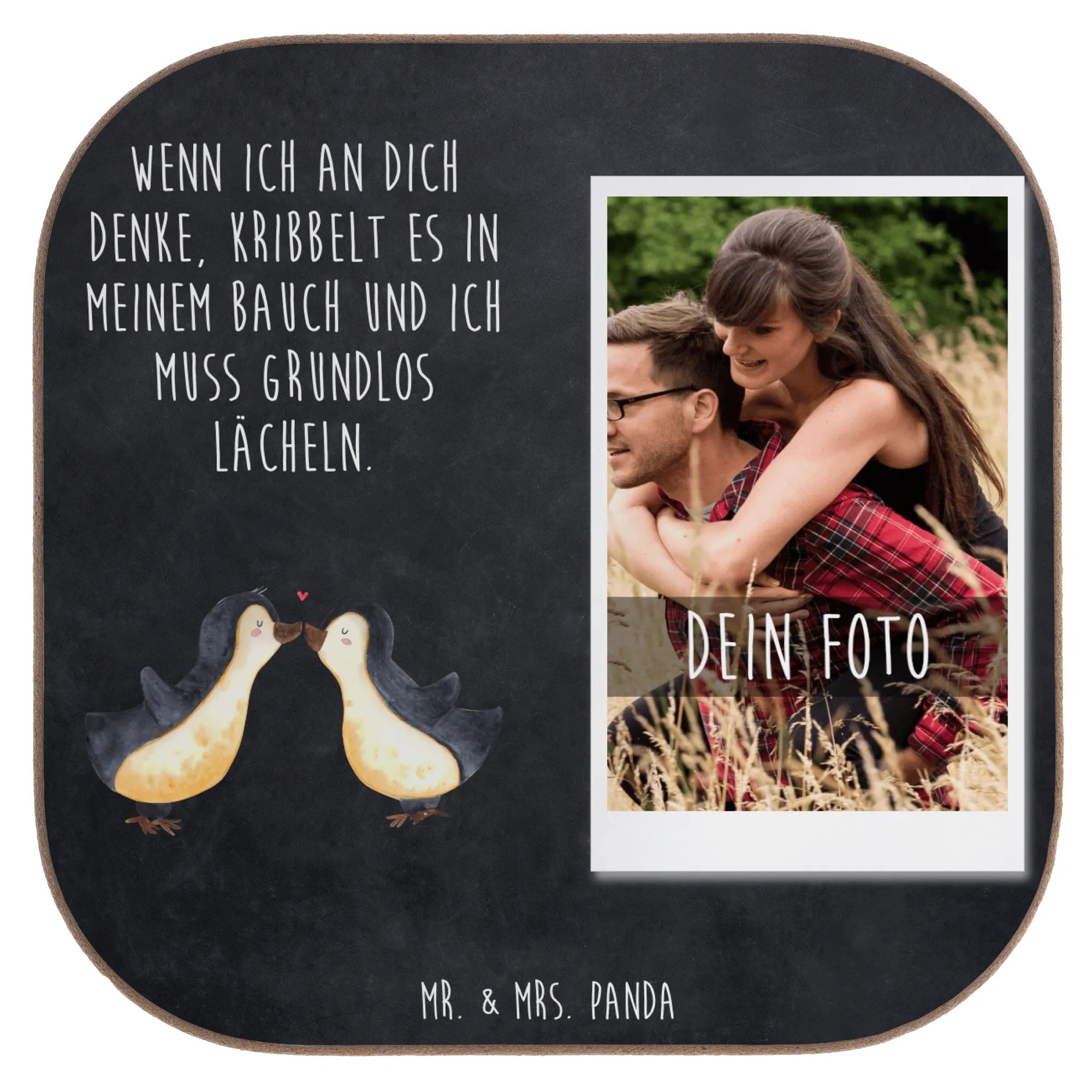 Personalized Photo Coaster penguins kiss - Chalkboard