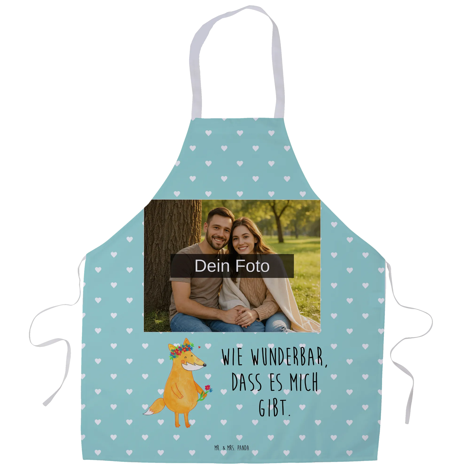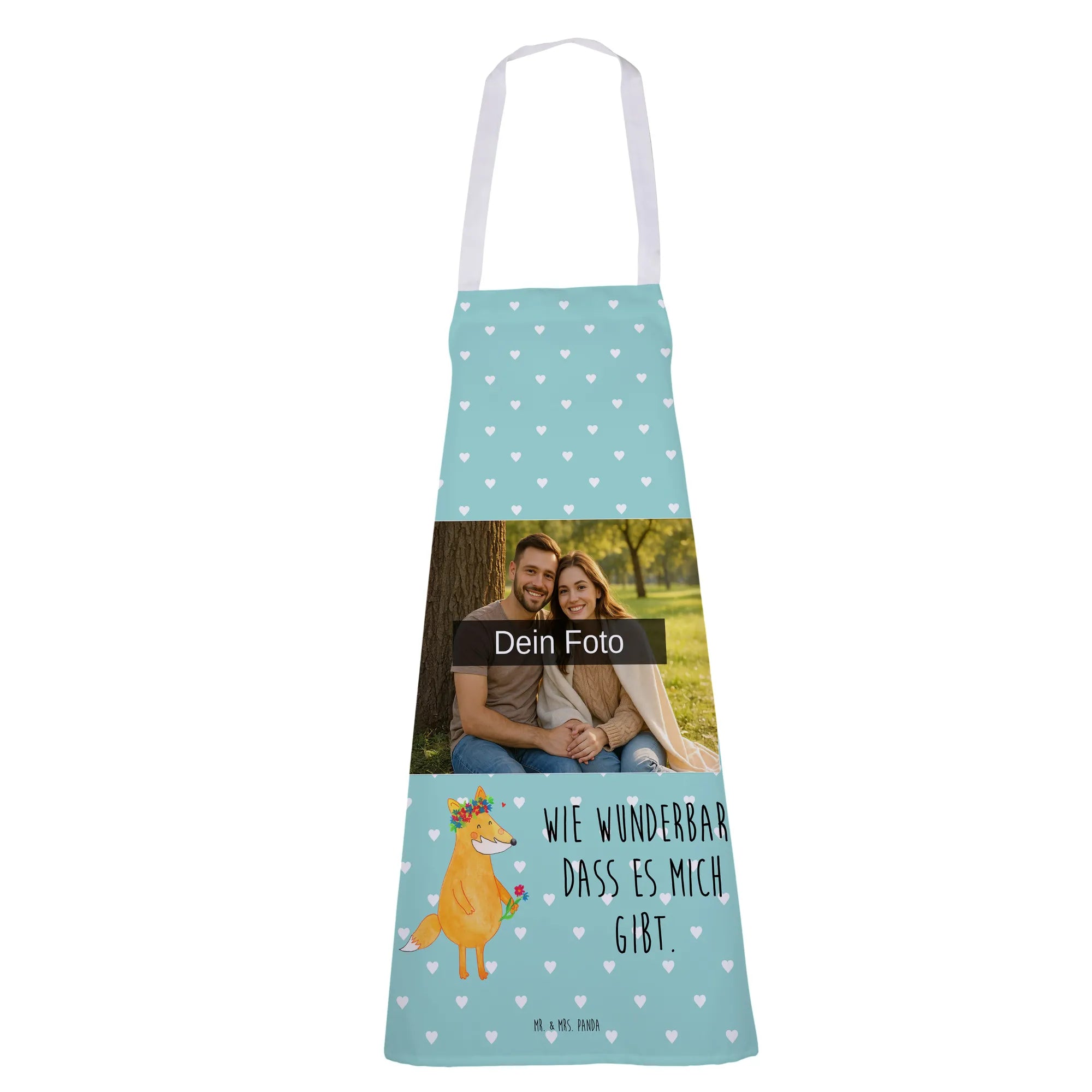 Entdecke die wunderschöne personalisierte Foto Kochschürze von Mr. & Mrs. Panda! Diese Schürze ist nicht nur praktisch, sondern auch ein echter Hingucker in deiner Küche. Hergestellt aus hochwertiger Premium Kunstfaser, misst sie 950 mm x 700 mm und hat zusätzlich eine 950 mm lange Nackenschlaufe. Sie ist mit süßen Motiven und Sprüchen bedruckt, die dein Kochen zu einem Erlebnis machen. Du kannst sie mit deinem ganz persönlichen Wunschfoto individuell gestalten. Achte darauf, dass das hochgeladene Bild in hoher Auflösung vorliegt, damit das Druckergebnis klar und wunderschön ist. Stelle sicher, dass der Bildausschnitt gut gewählt ist, damit alle wichtigen Details sichtbar bleiben. Wenn Personen auf dem Foto zu sehen sind, lade nur Bilder hoch, bei denen du die Rechte besitzt. Die Schürze verfügt über stabile Nackenschlaufen und Seitenbänder, um den perfekten Sitz zu gewährleisten. Sie ist samtweich, atmungsaktiv und hat eine praktische große Fronttasche. Nach dem Kochen kannst du sie einfach bei 30°C in der Maschine waschen. Verwöhne dich oder deine liebsten Menschen mit einem persönlich gestalteten Geschenk, das sowohl praktisch als auch einzigartig ist!