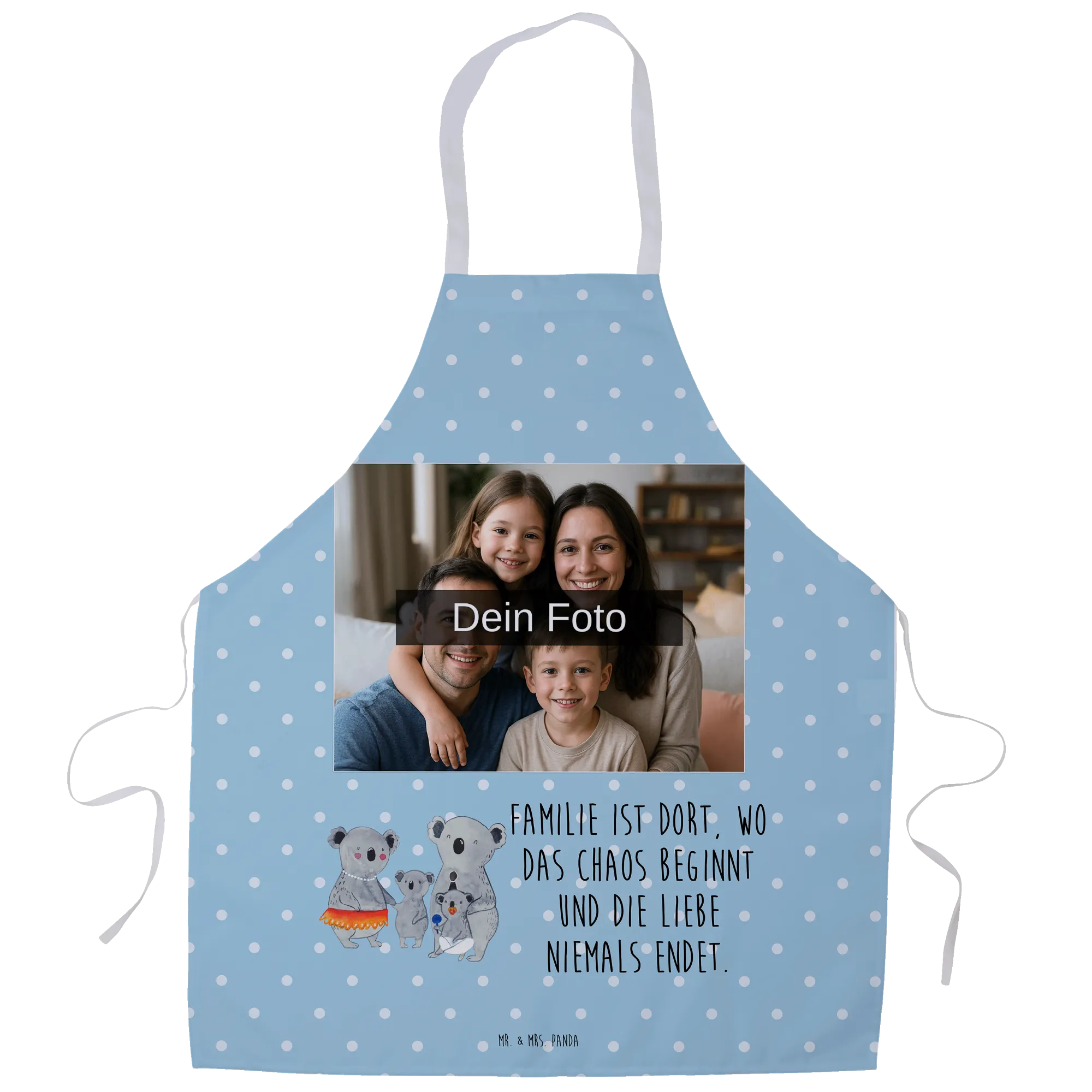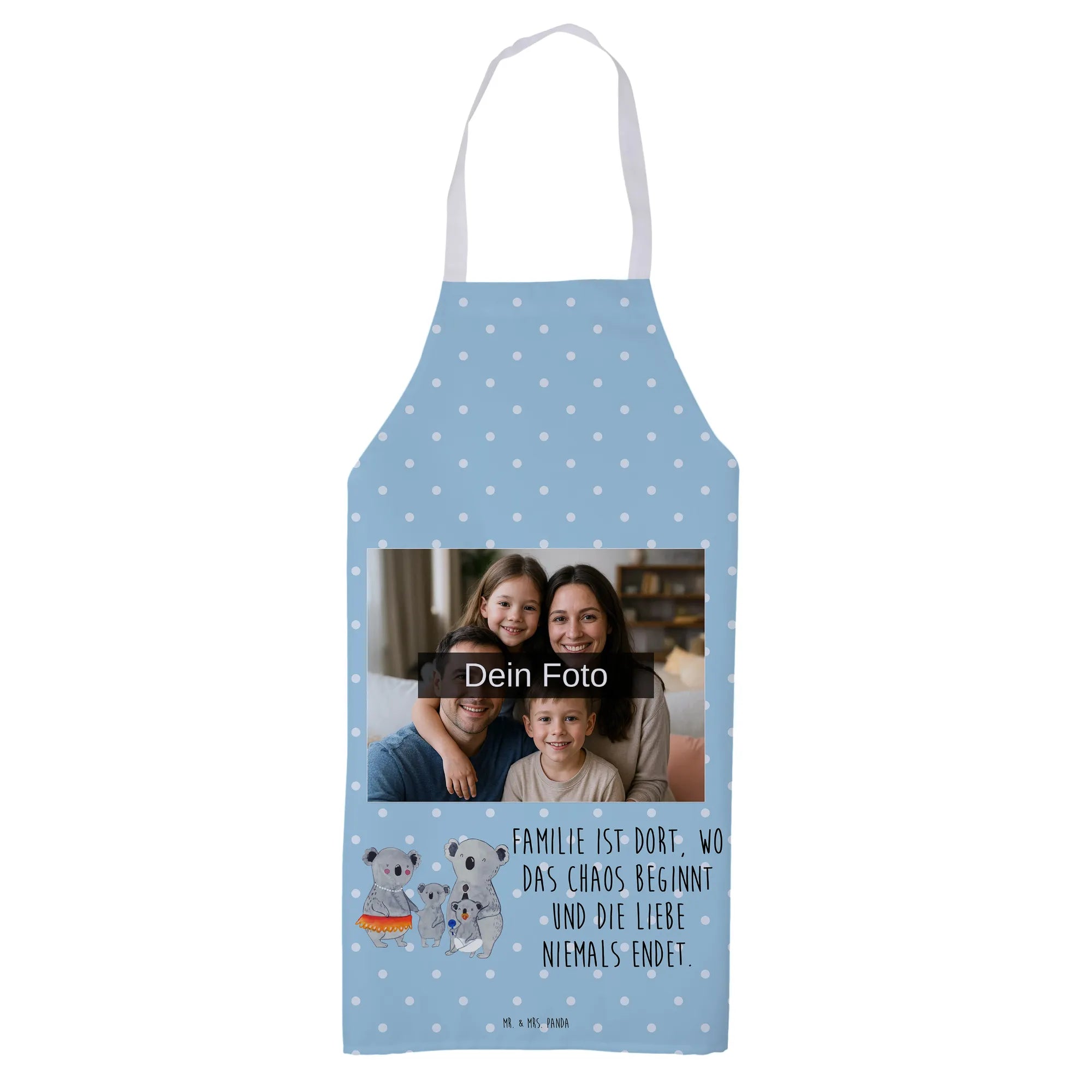Personalisierte Foto Kochschürze Koala Familie - Blau Pastell