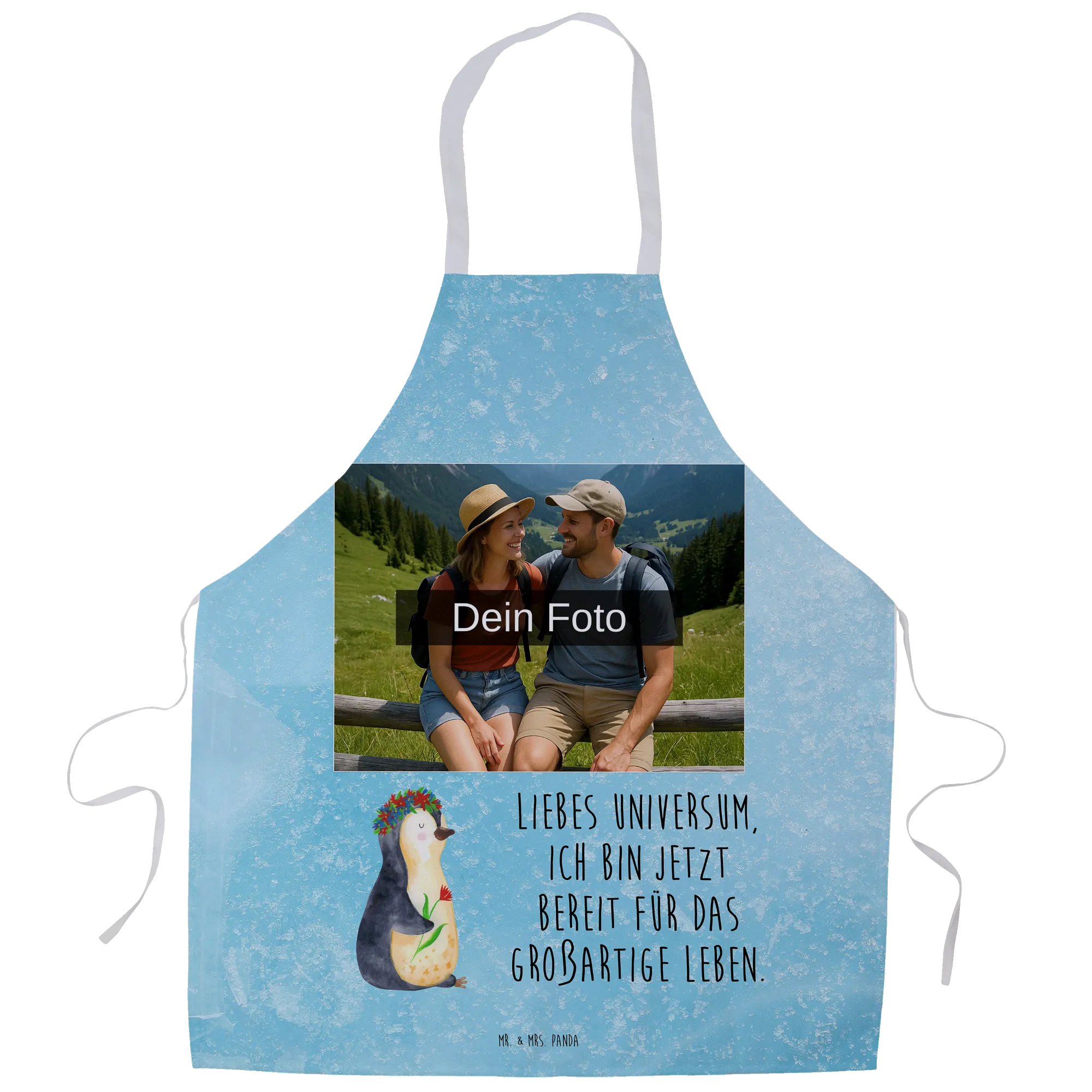 Personalisierte Foto Kochschürze Pinguin Blumen