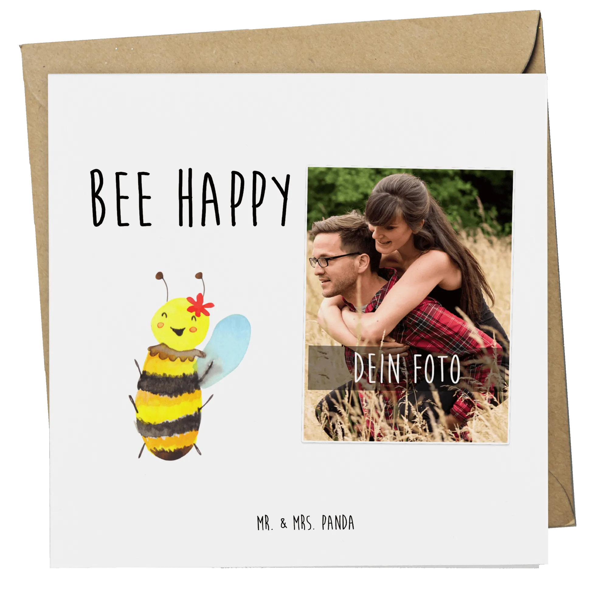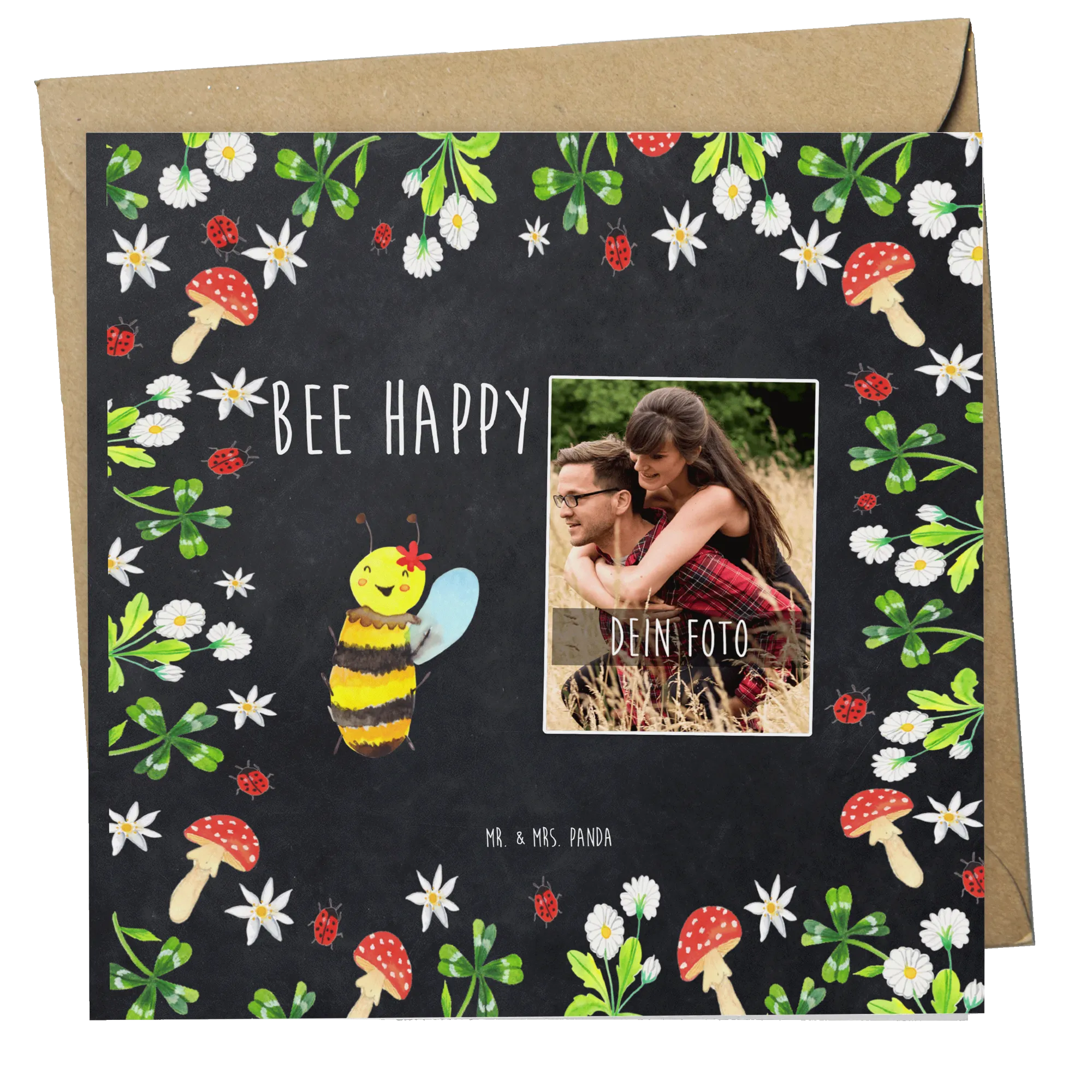 Personalized Photo Deluxe Card bee happy - Chalkboard