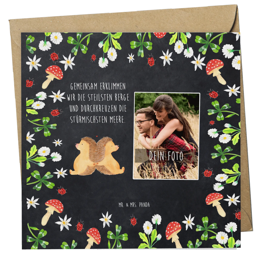 Personalized Photo Deluxe Card Hedgehogs holding hands - Chalkboard