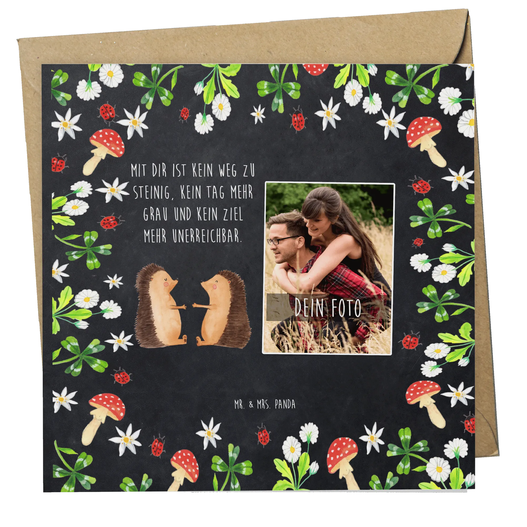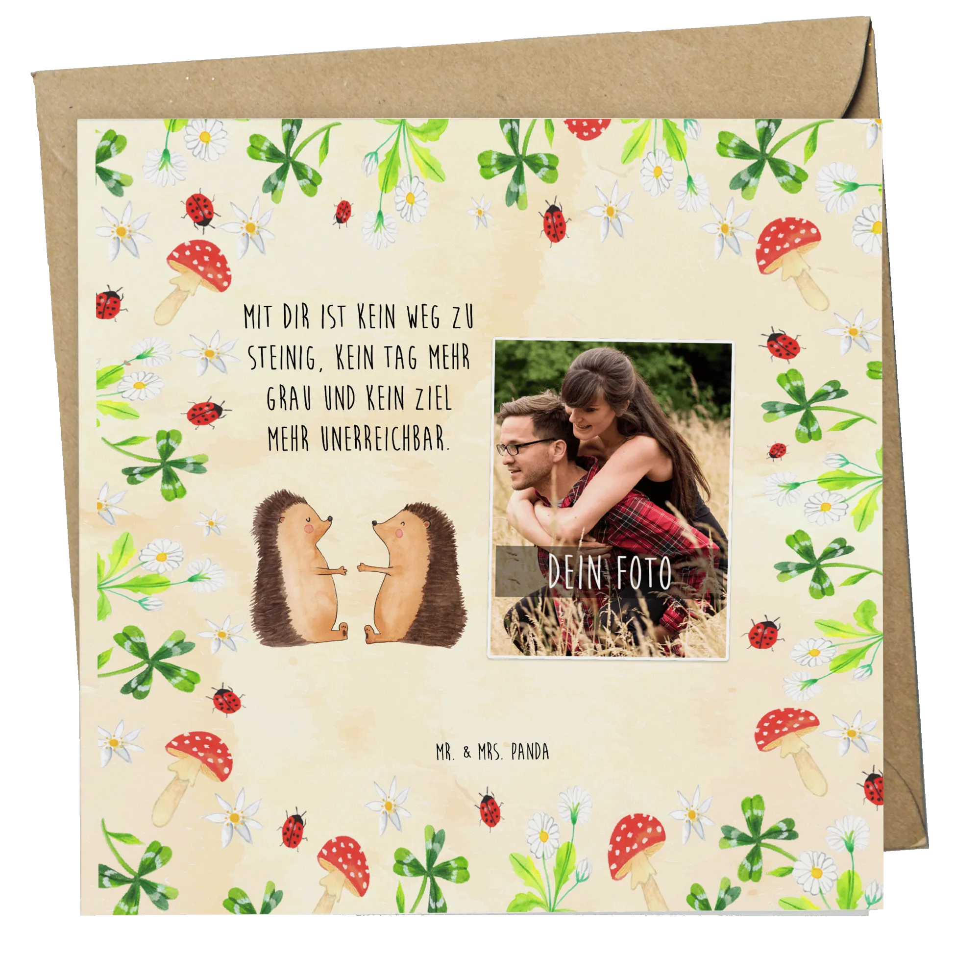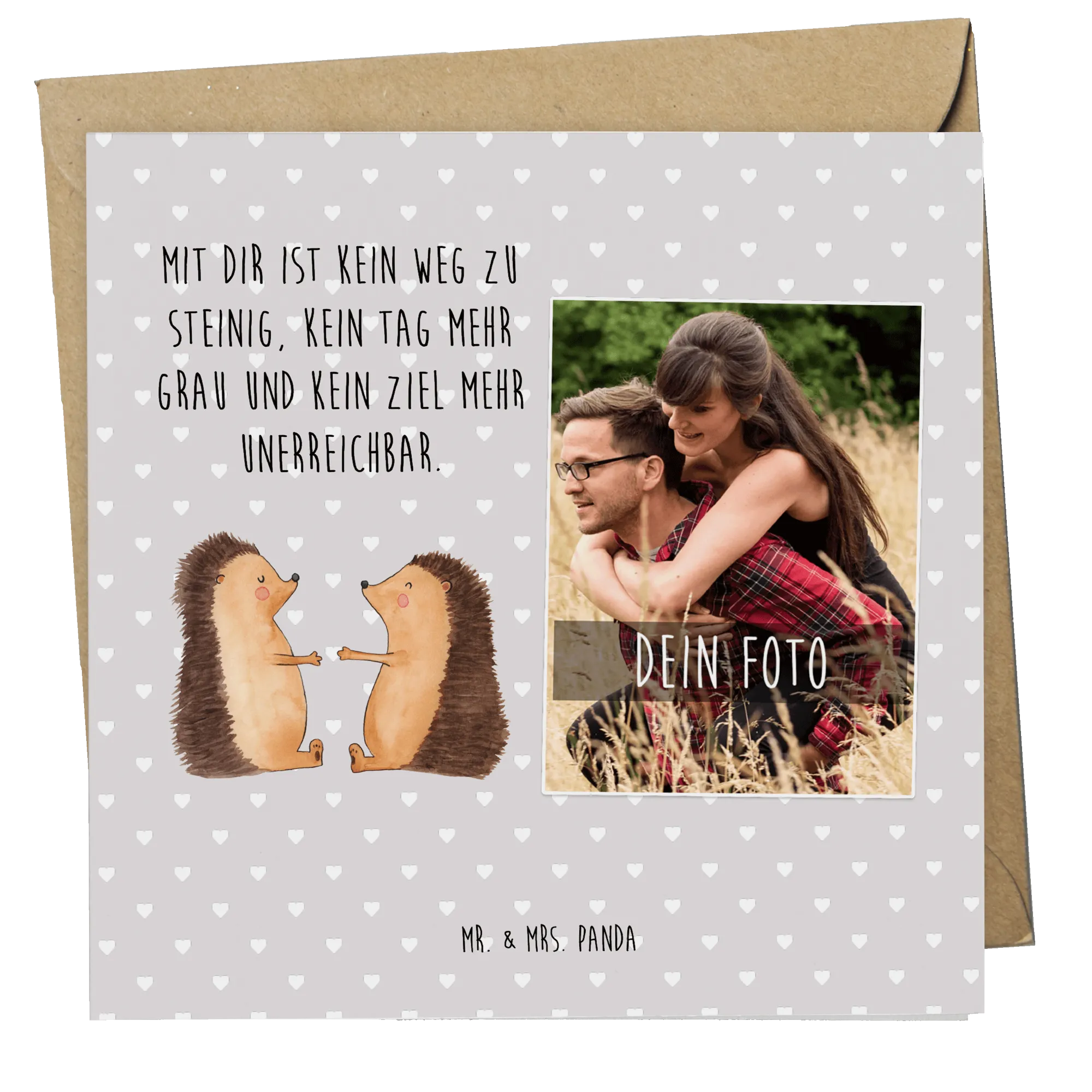 Personalized Photo Deluxe Card Hedgehogs in love - Grey Pastel