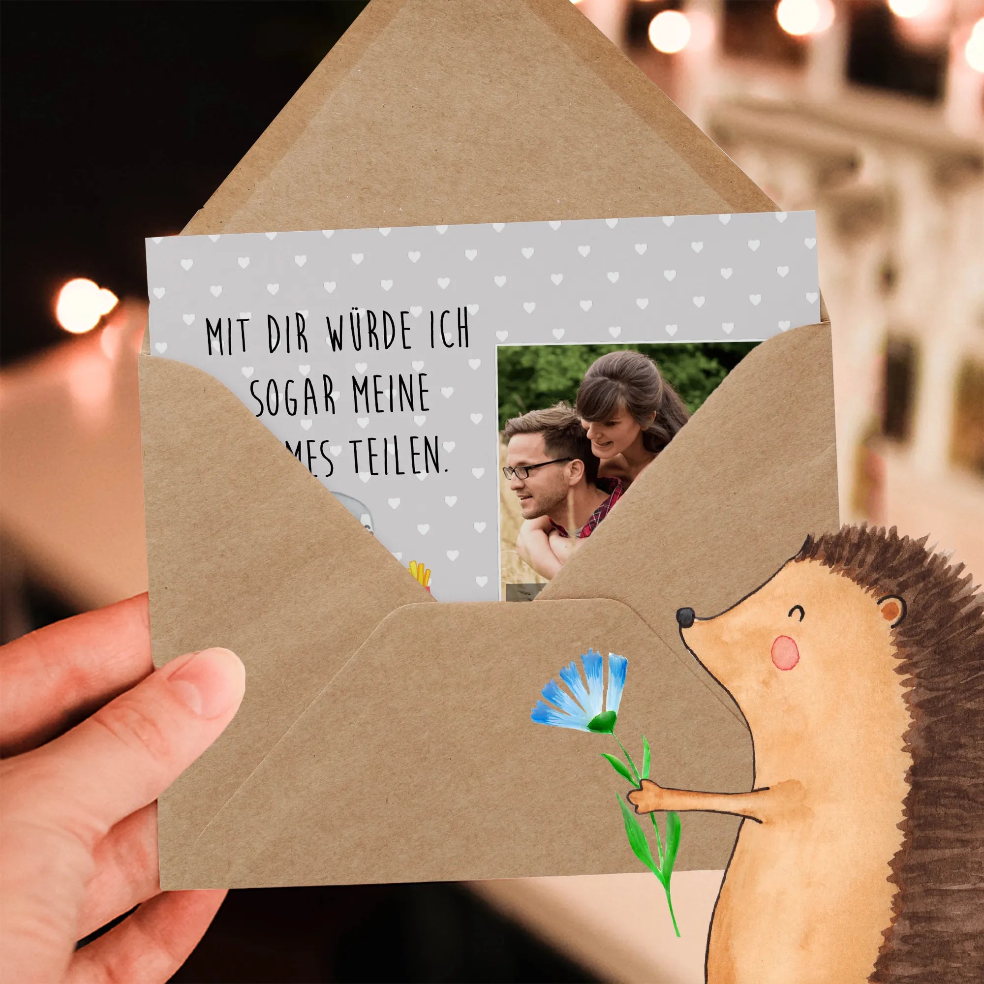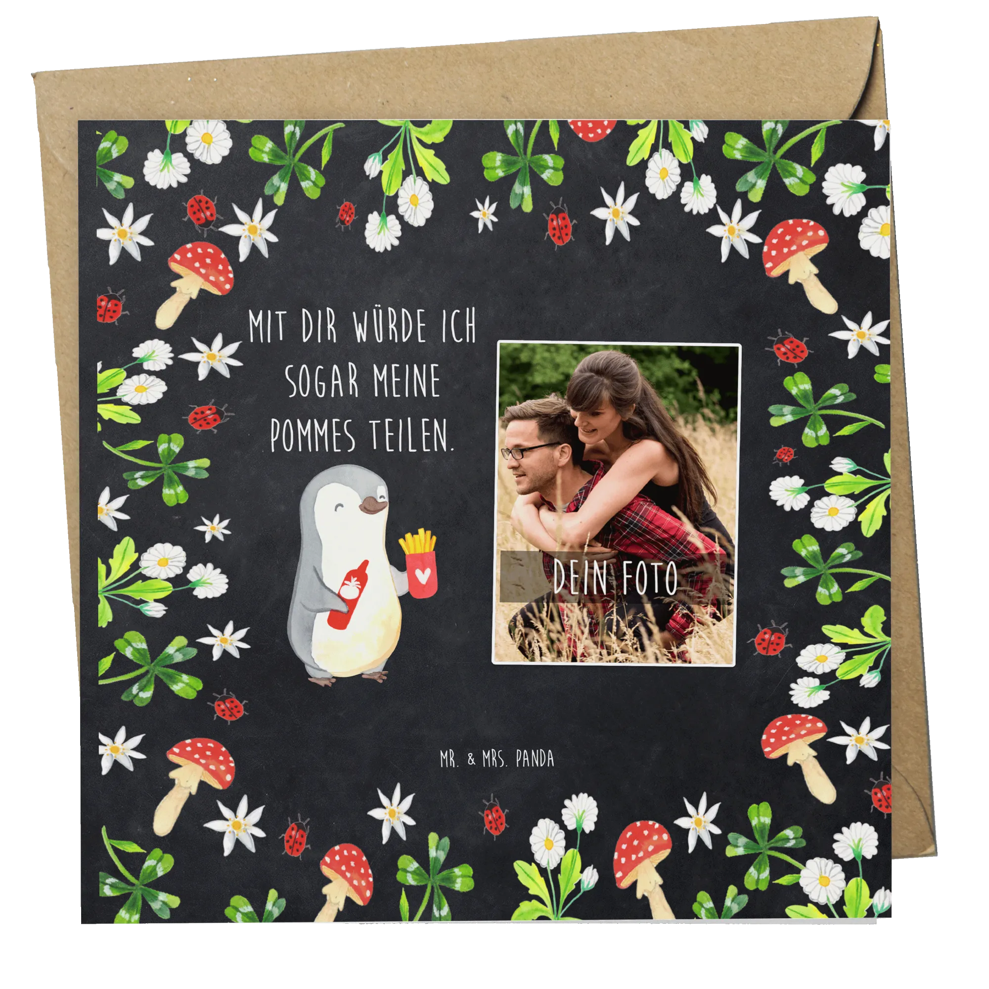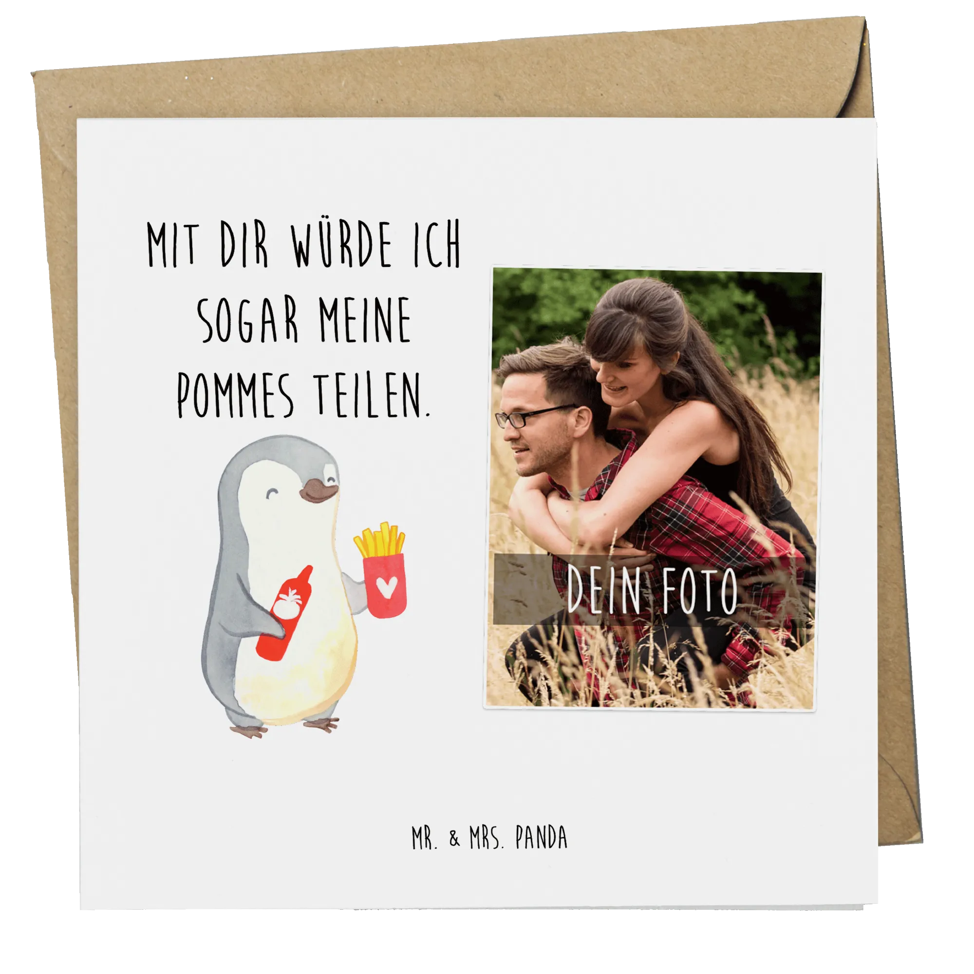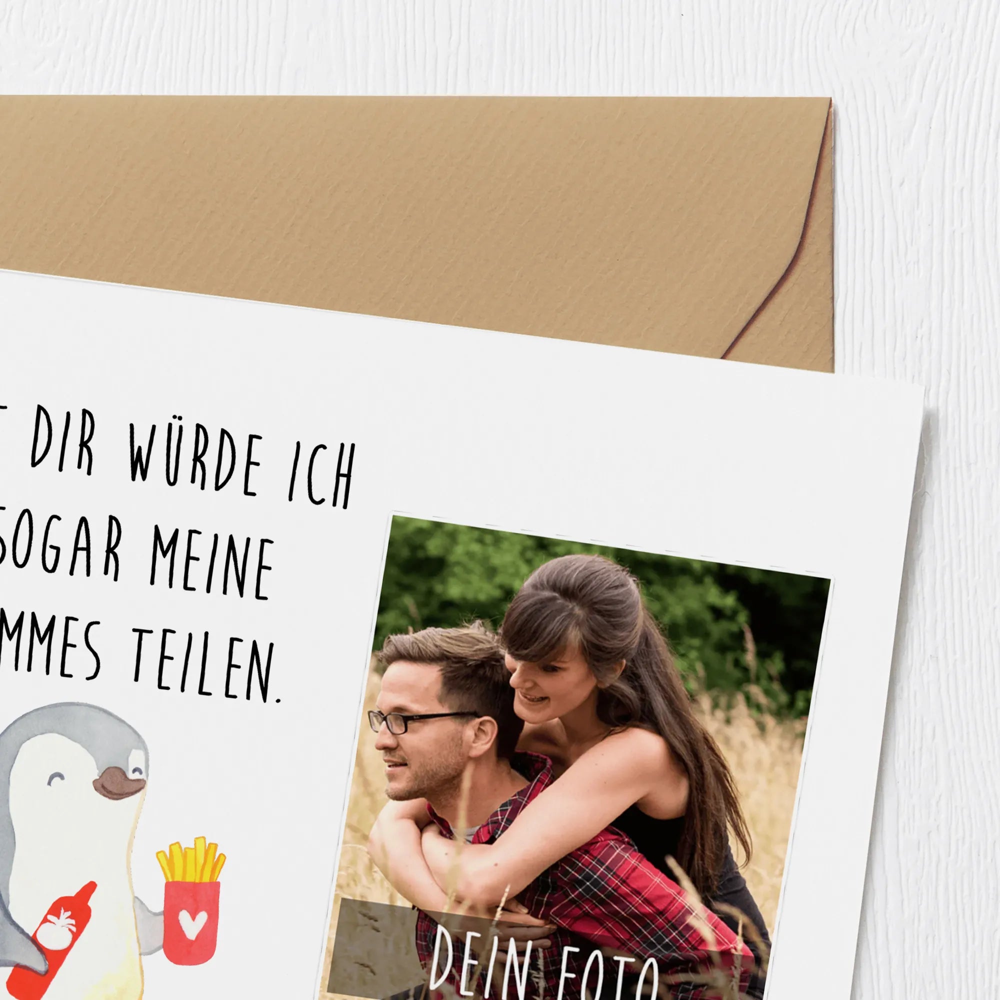 Personalized Photo Deluxe Card penguin French fries - Grey Pastel