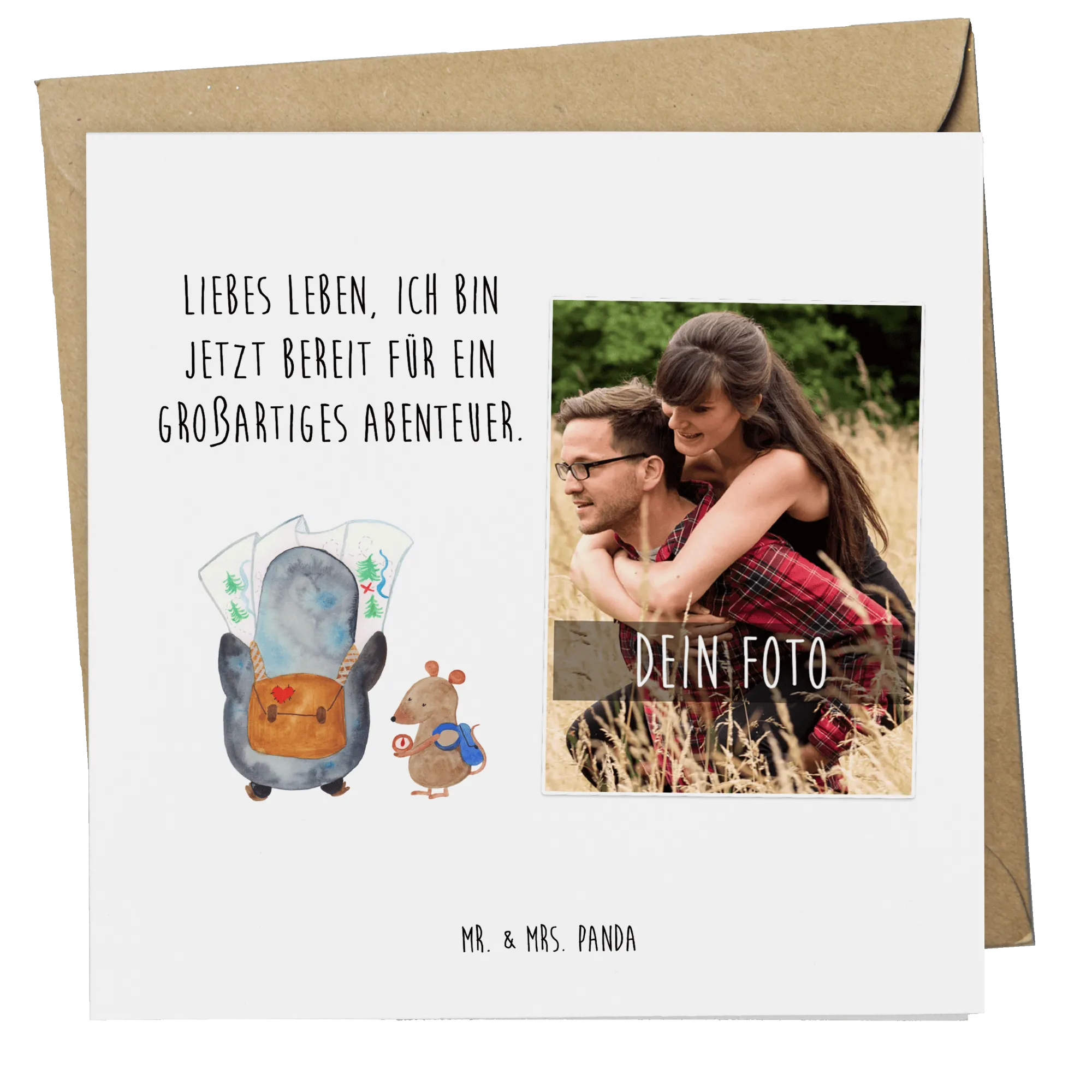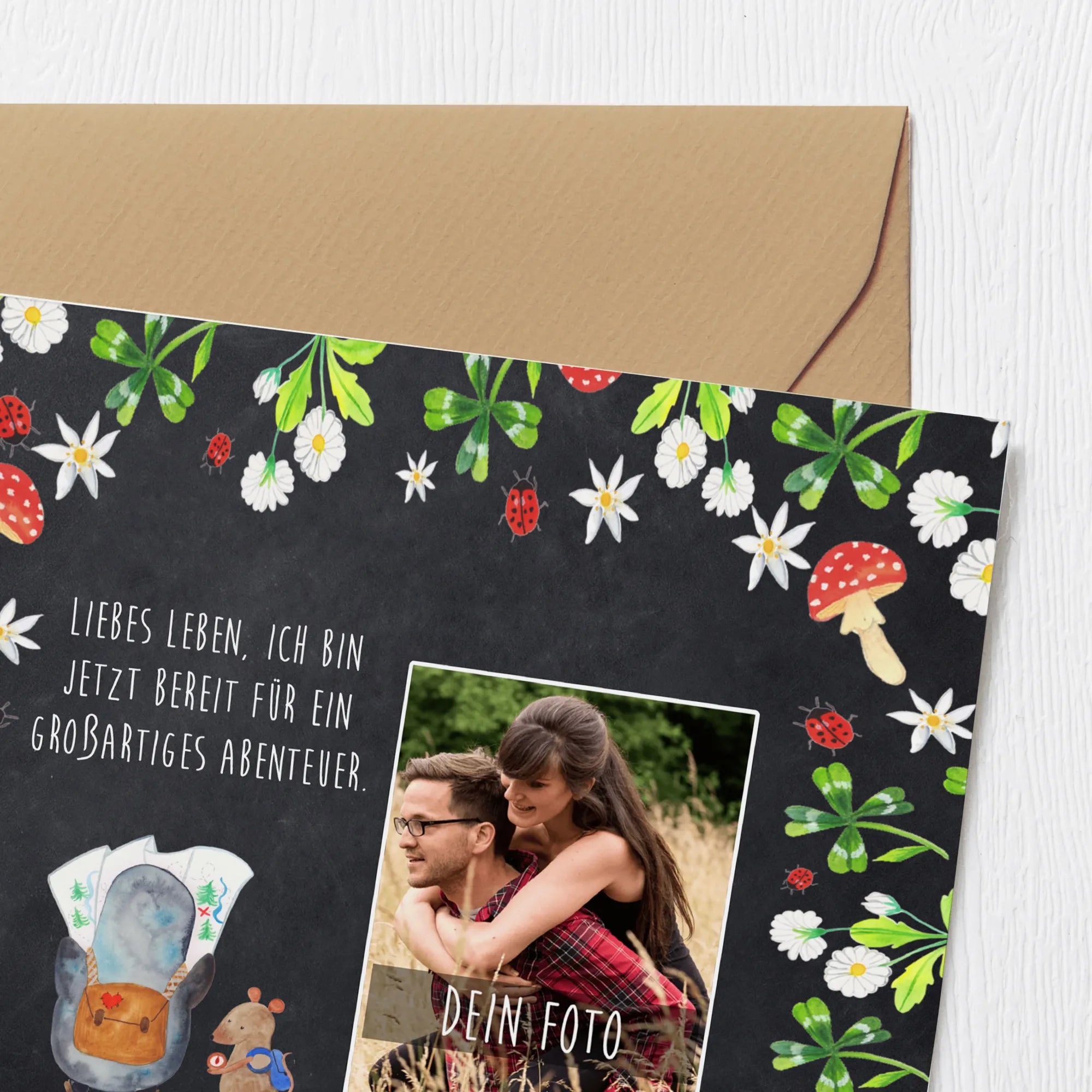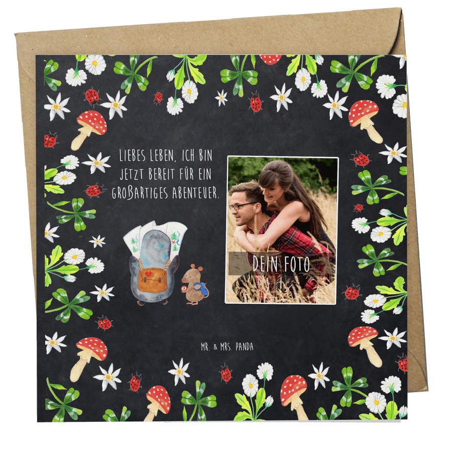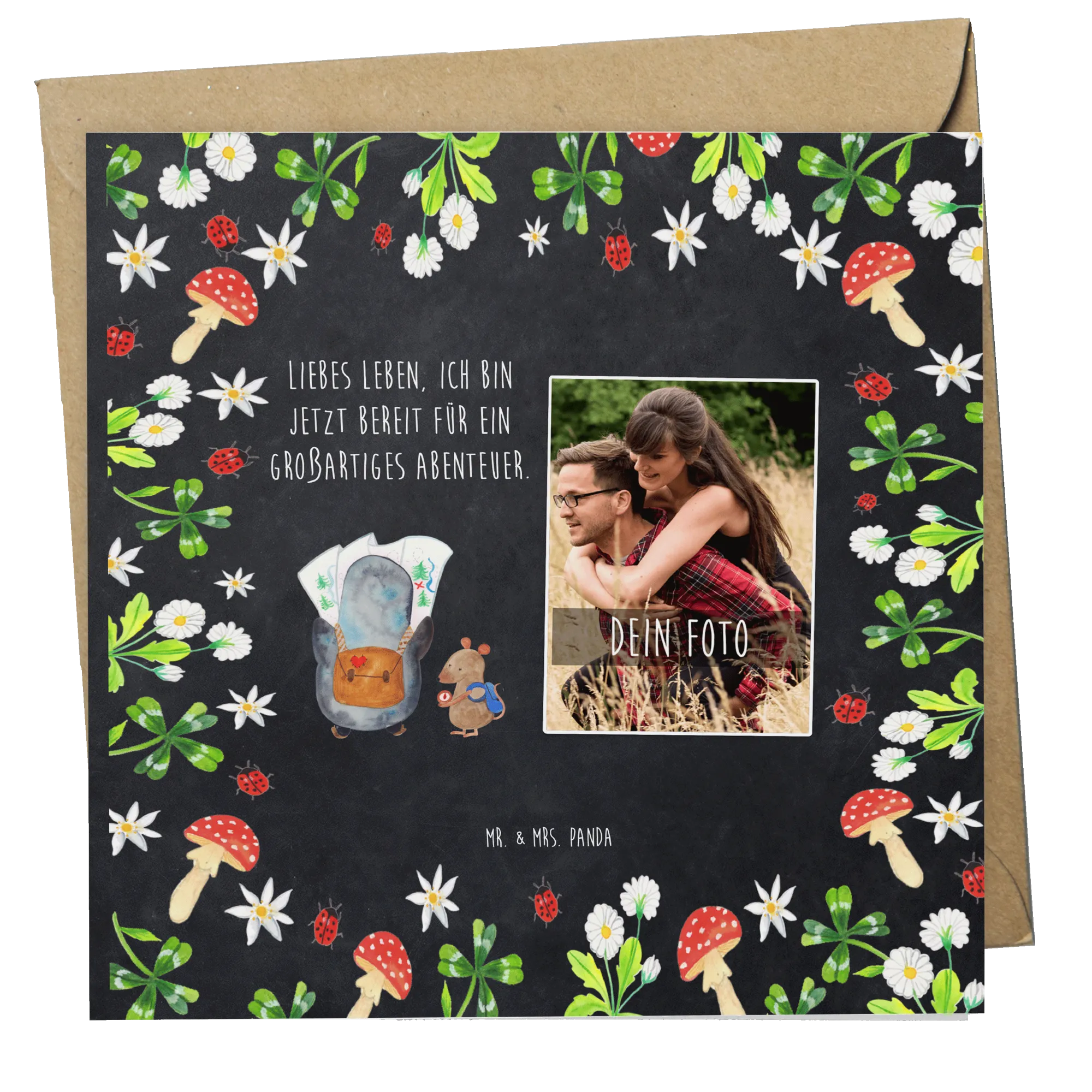 Personalized Photo Deluxe Card Penguin & Mouse Hiker - Chalkboard