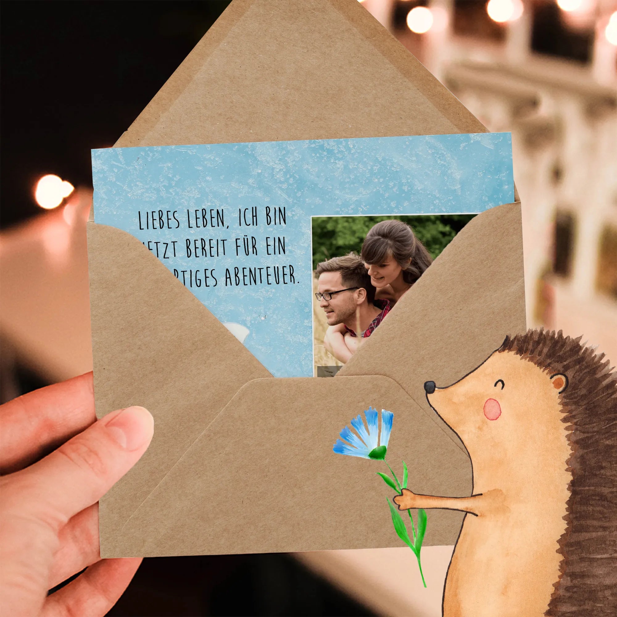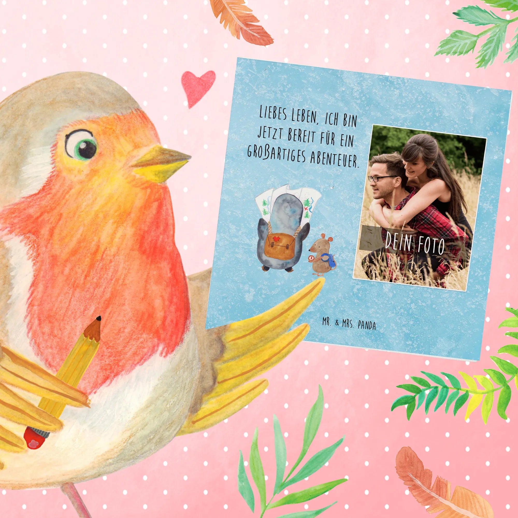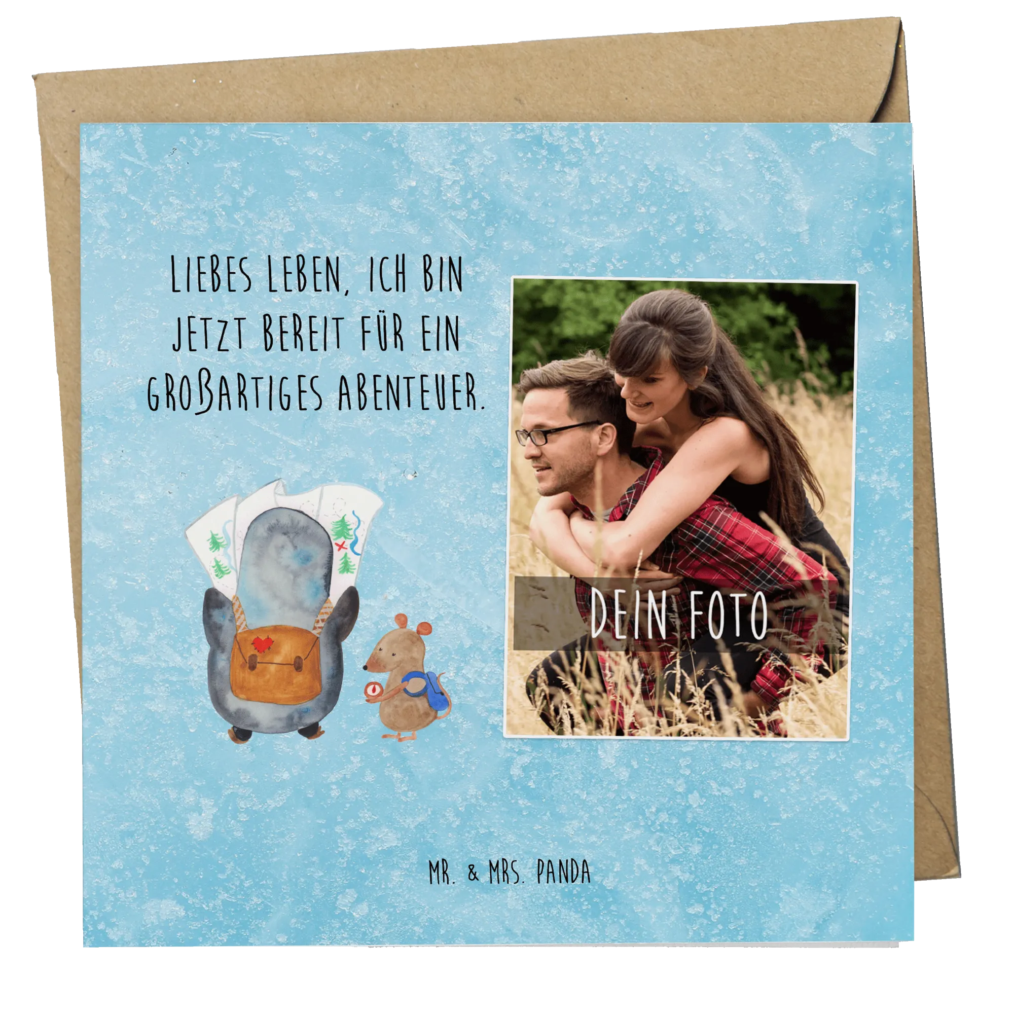 Personalized Photo Deluxe Card Penguin & Mouse Hiker - Chalkboard