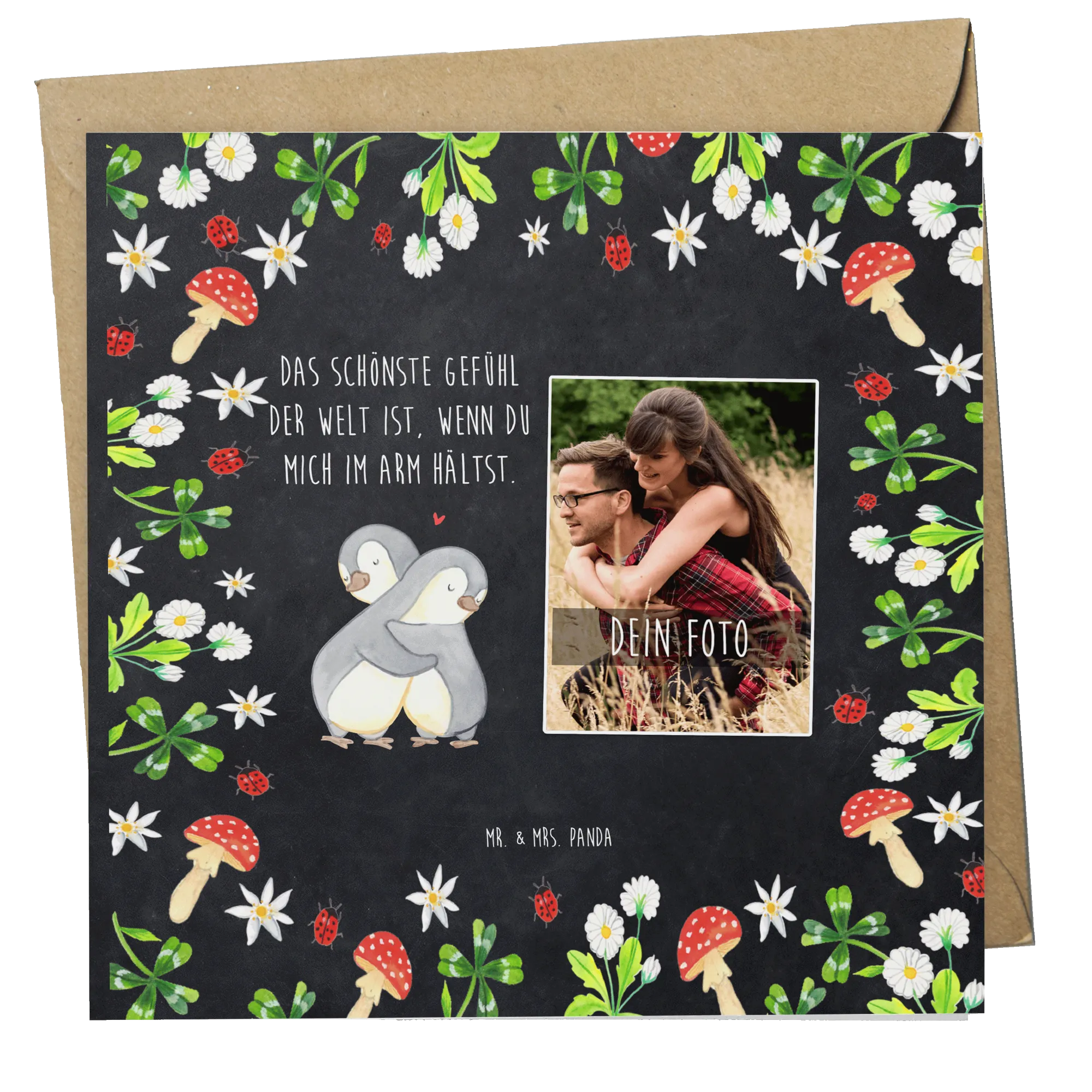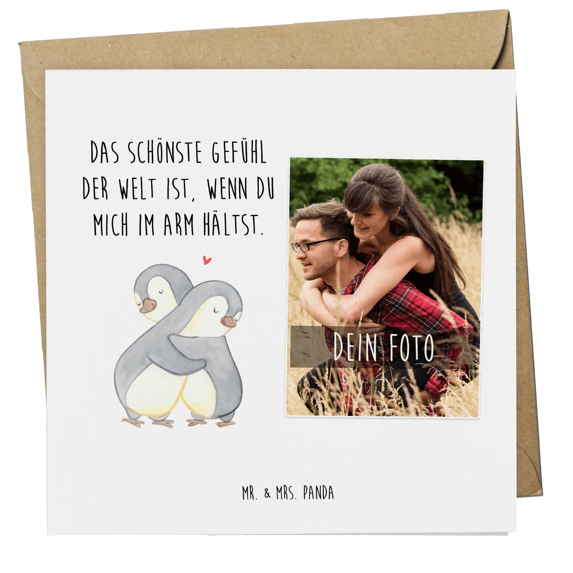 Personalized Photo Deluxe Card penguins Cuddle - Grey Pastel