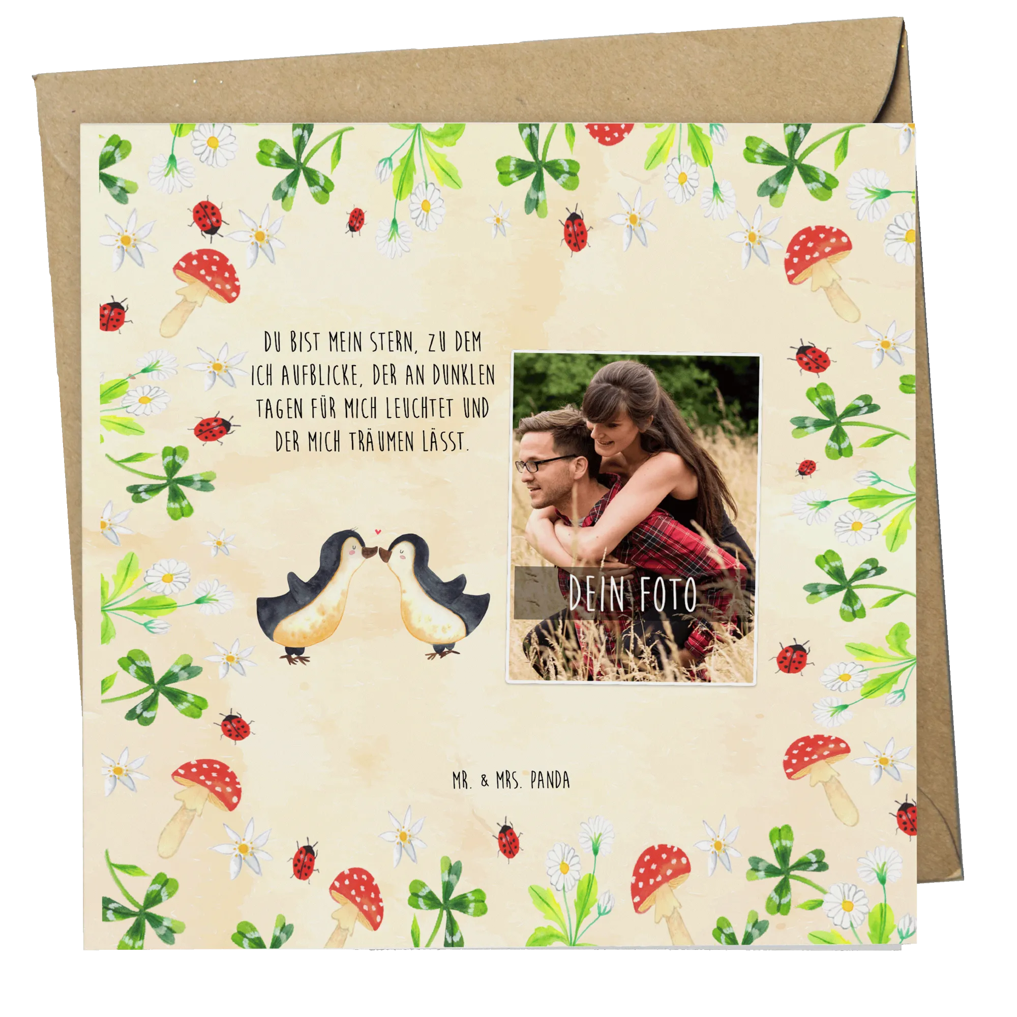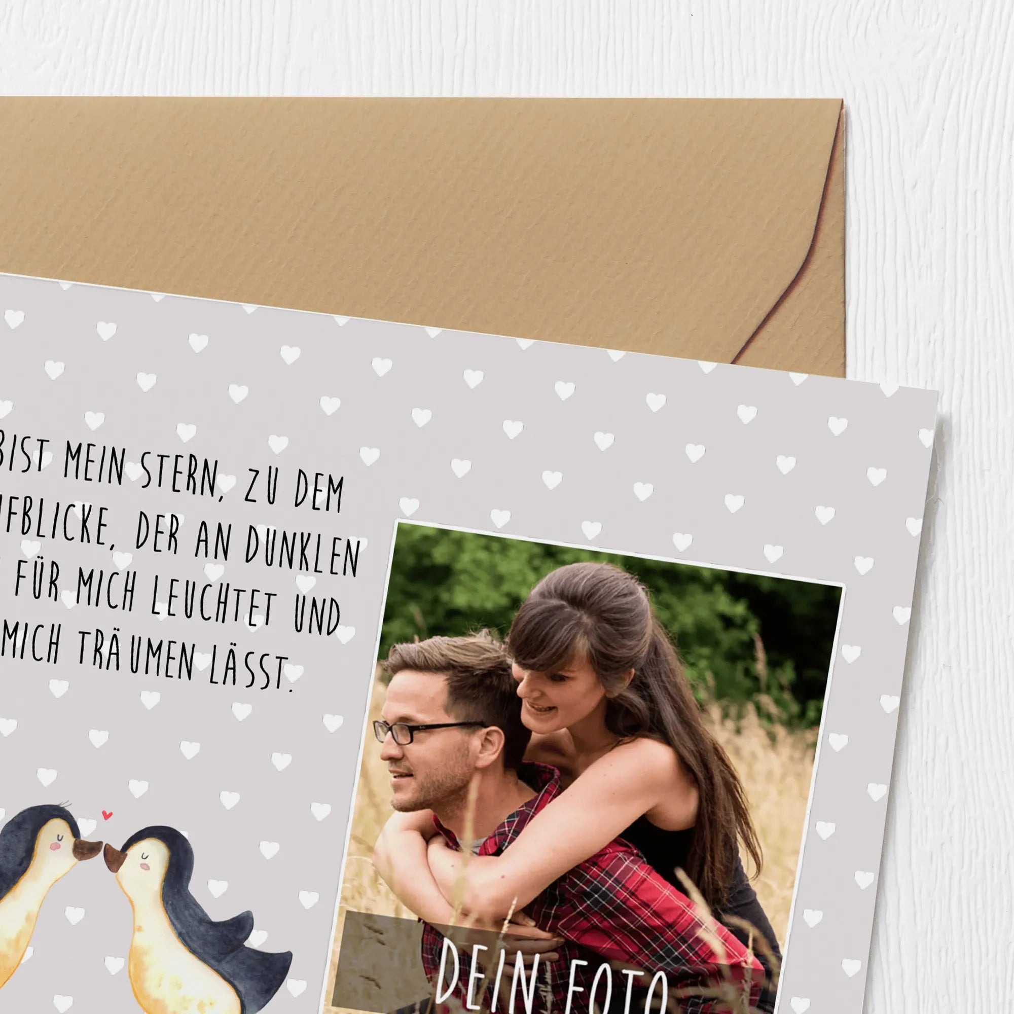 Personalized Photo Deluxe Card Penguins in love - Grey Pastel