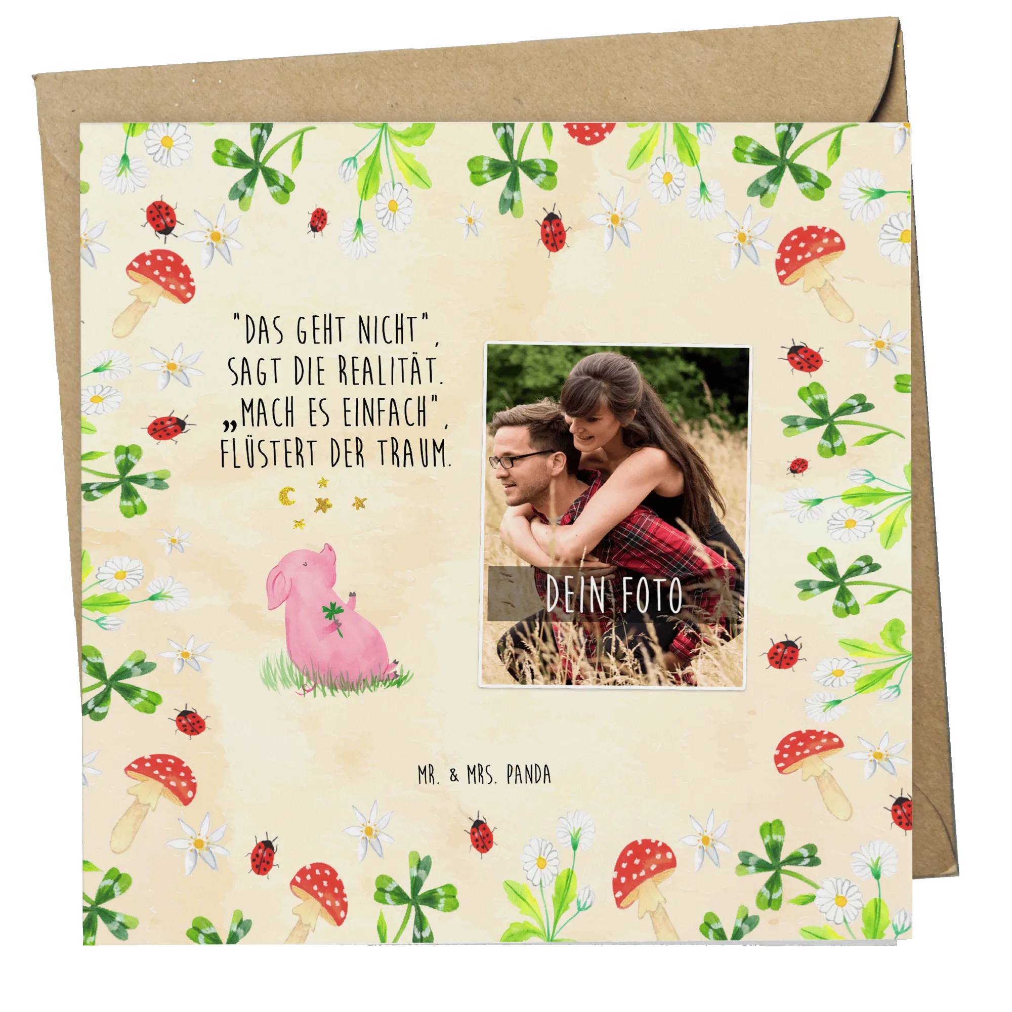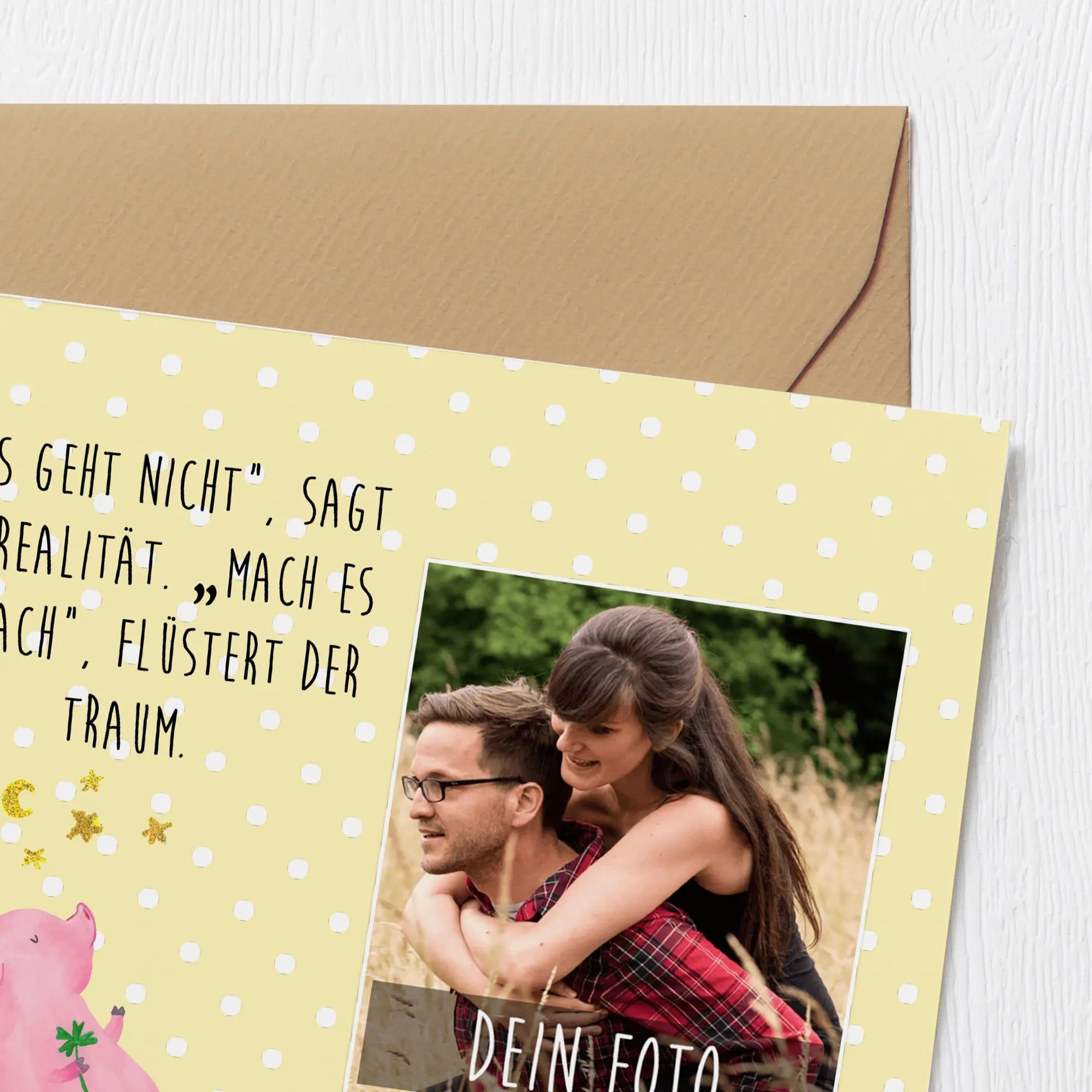 Personalized Photo Deluxe Card Pig Luck - White