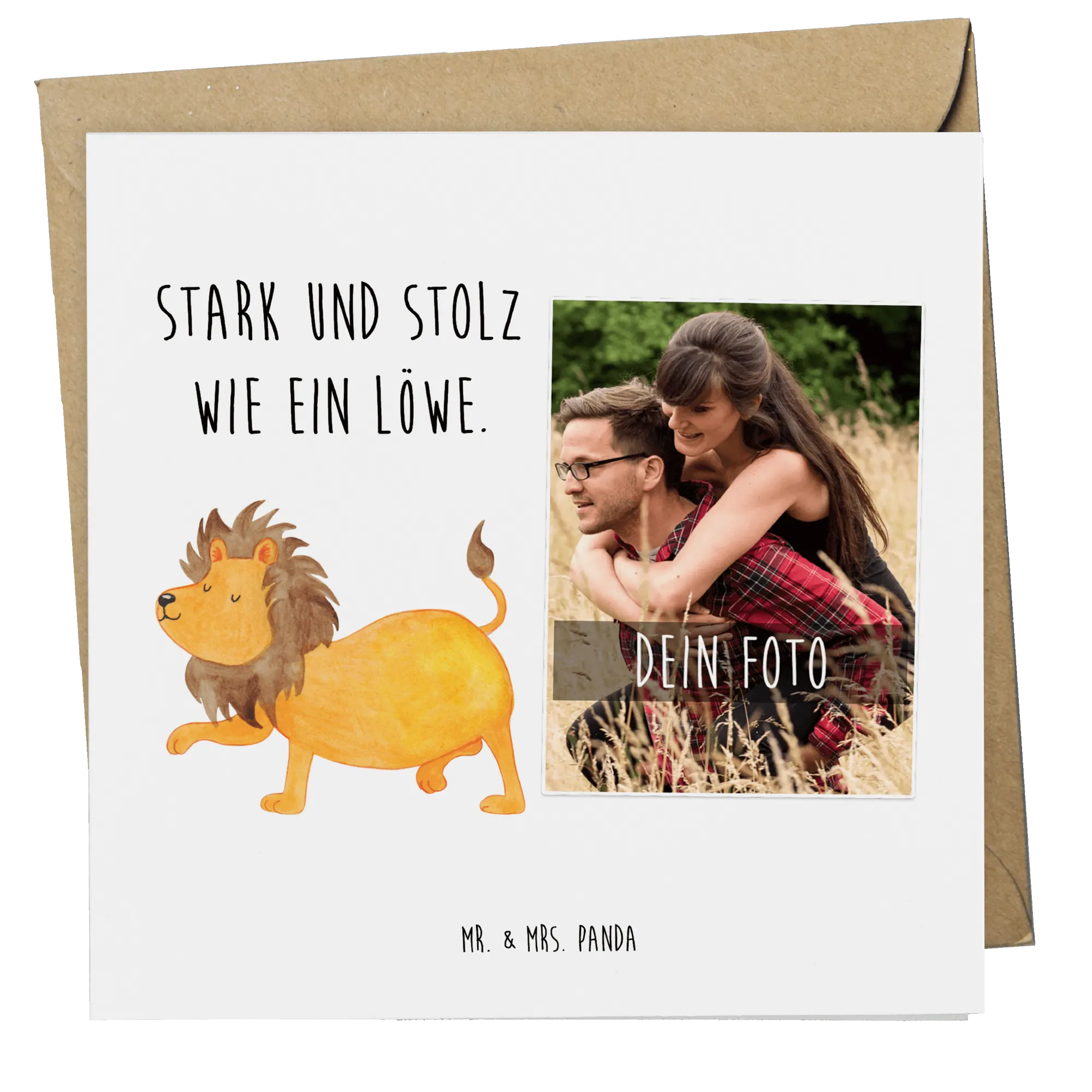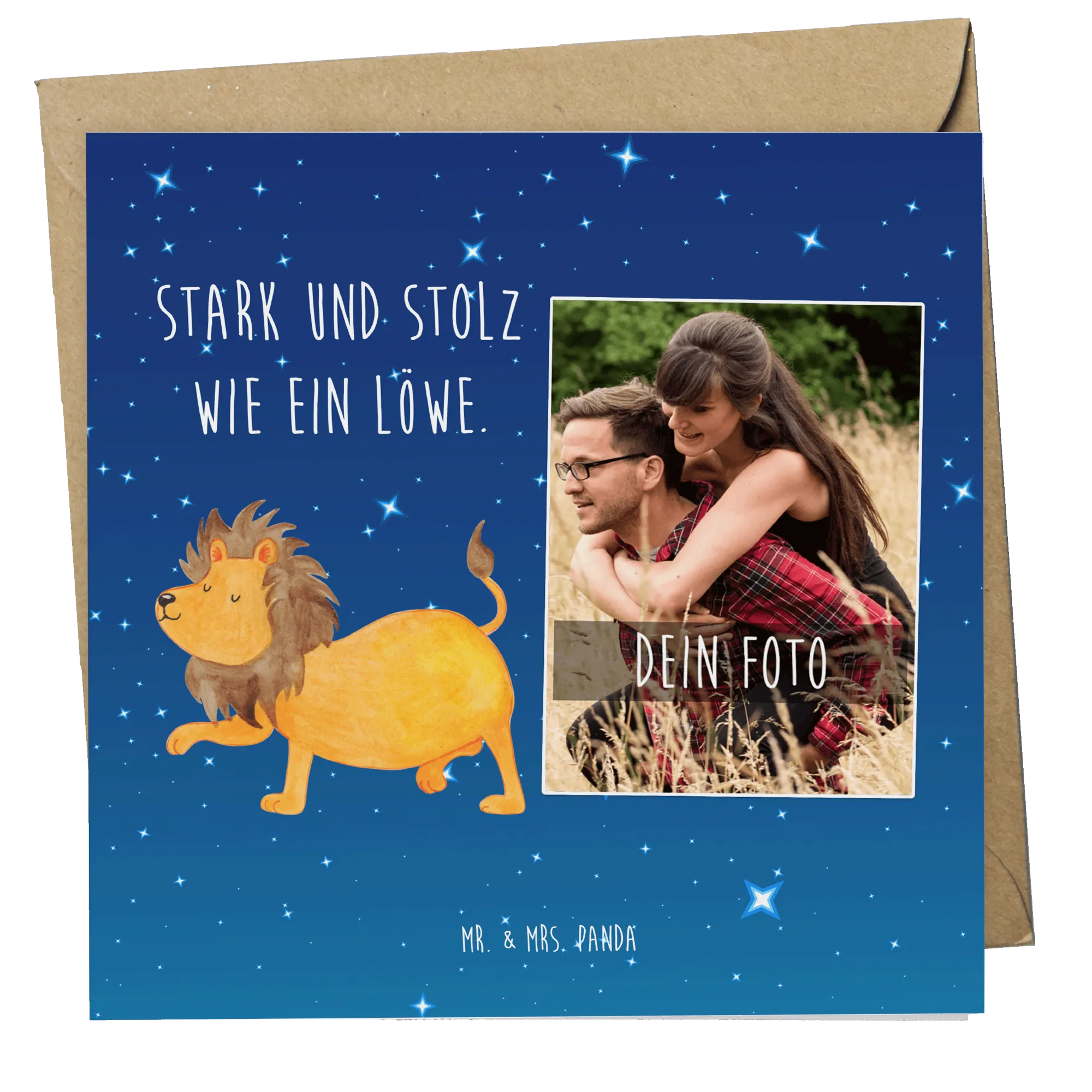 Personalized Photo Deluxe Card Star sign Lion - Starry sky blue