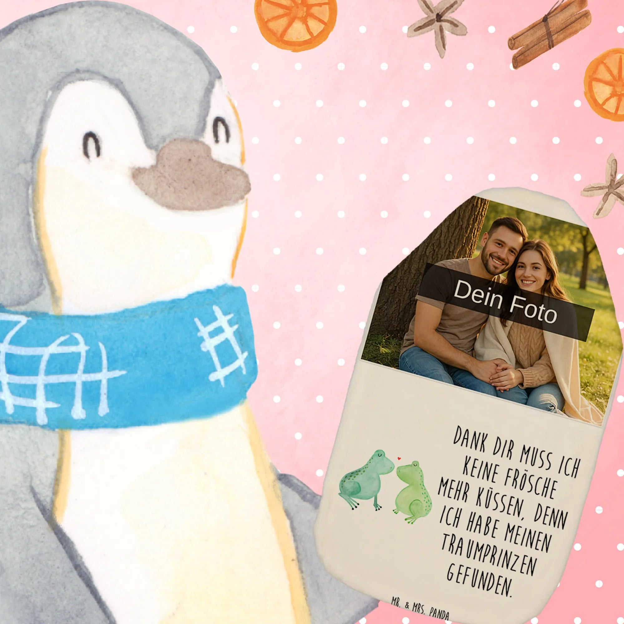 Personalized Photo Hot Water Bottle Frogs in love