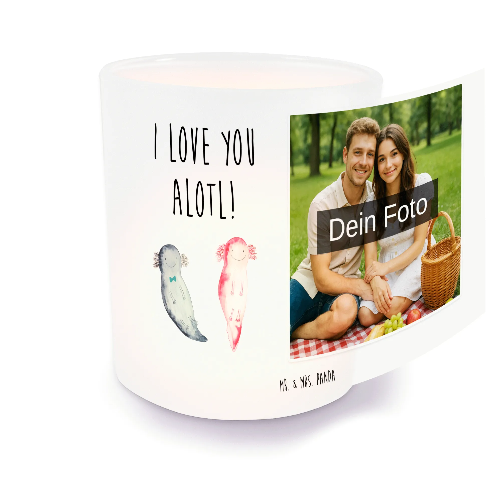 Personalisiertes Foto Windlicht Axolotl Liebe