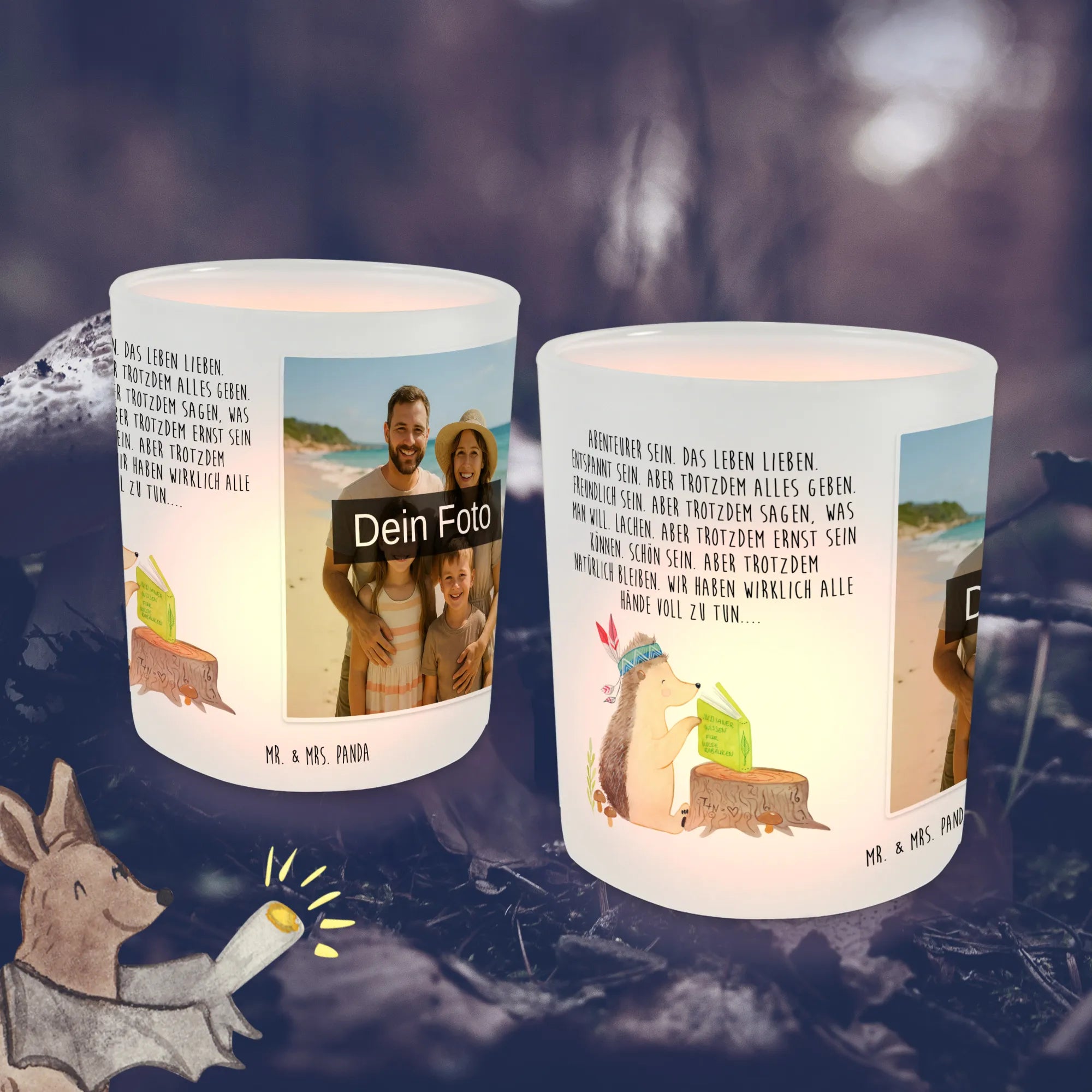 Personalisiertes Foto Windlicht Igel Federschmuck – Mr. & Mrs. Panda