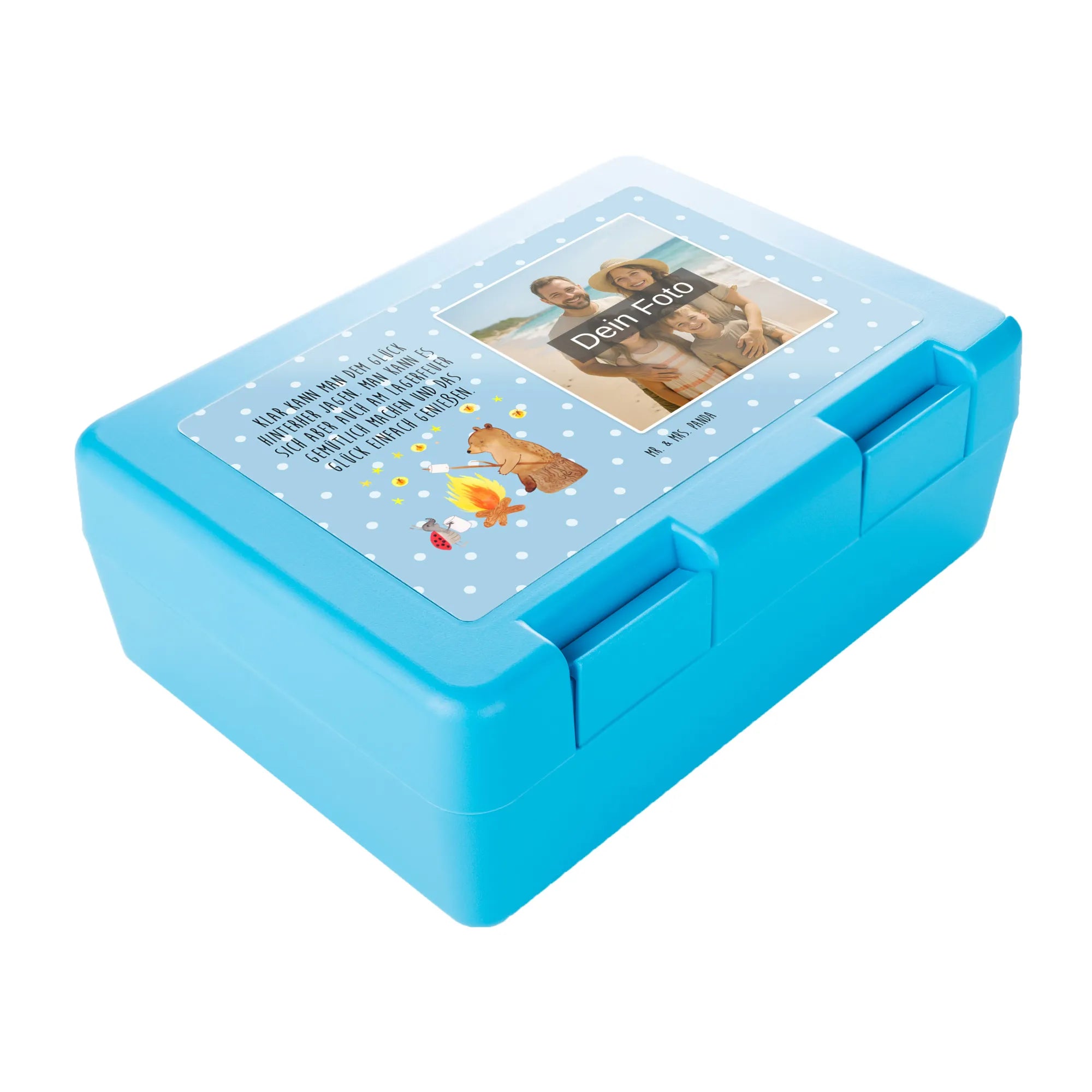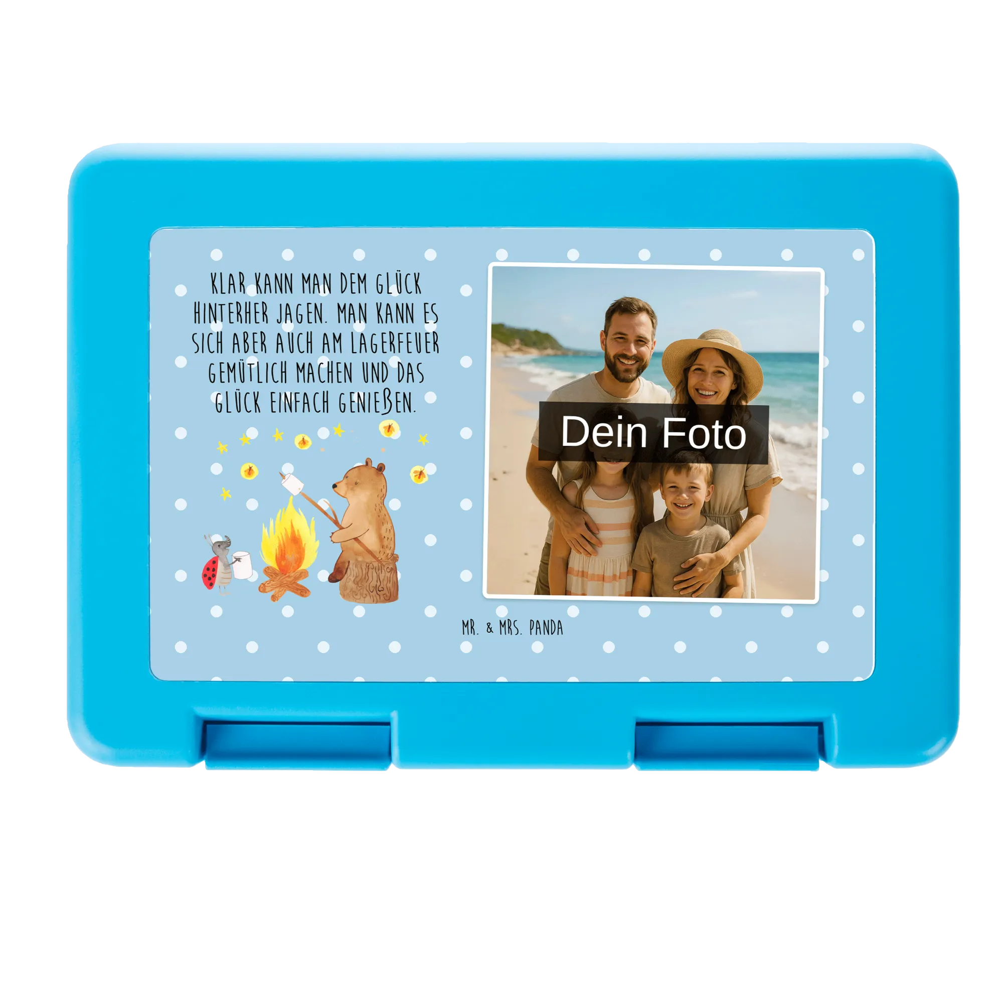 Personalisierte Foto Brotdose Bär & Marienkäfer Lagerfeuer – Mr. & Mrs. Panda